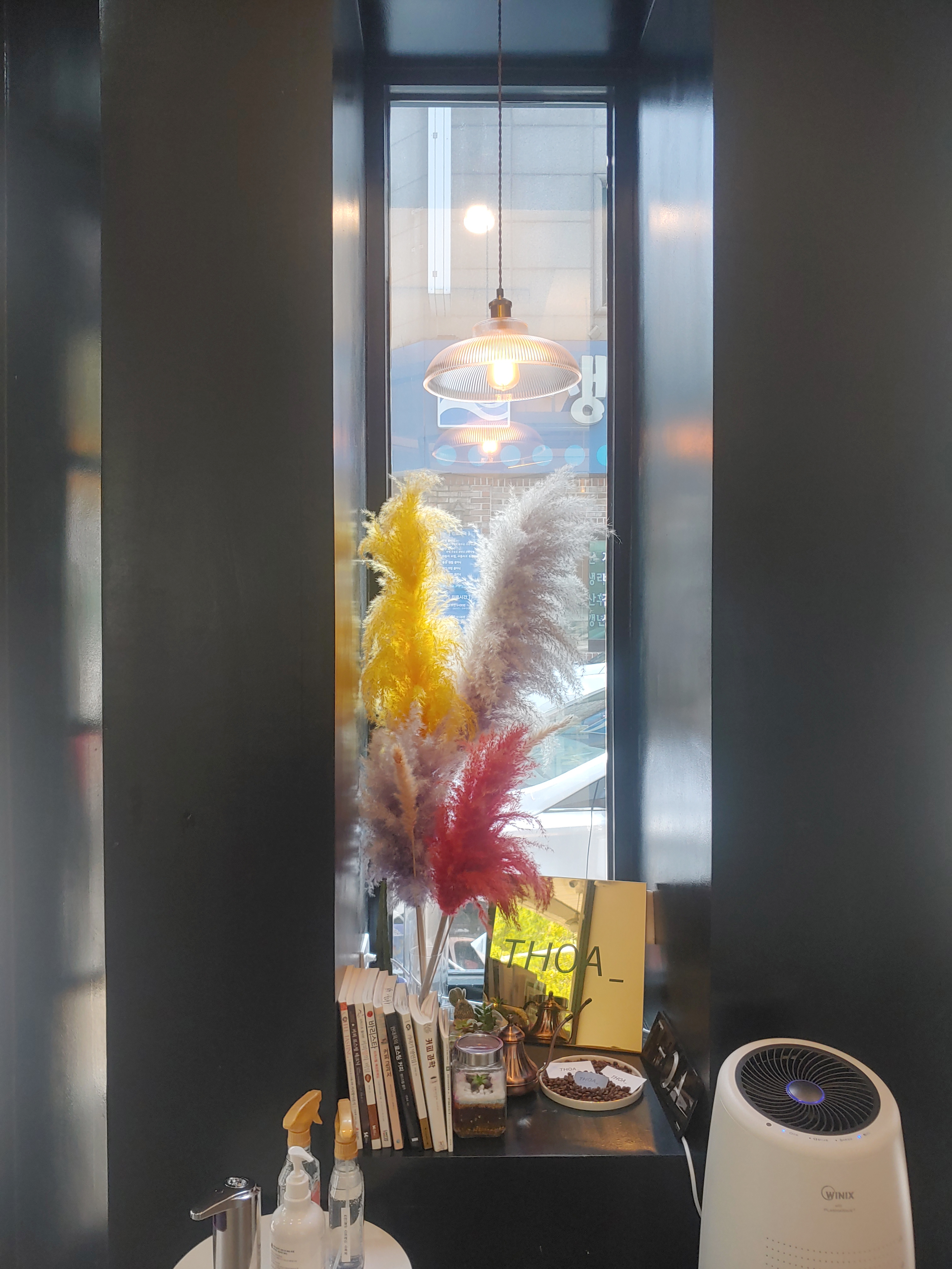 이런 생화도 카페를 좀 더 화사하게 밝혀 주는 것 같아요.