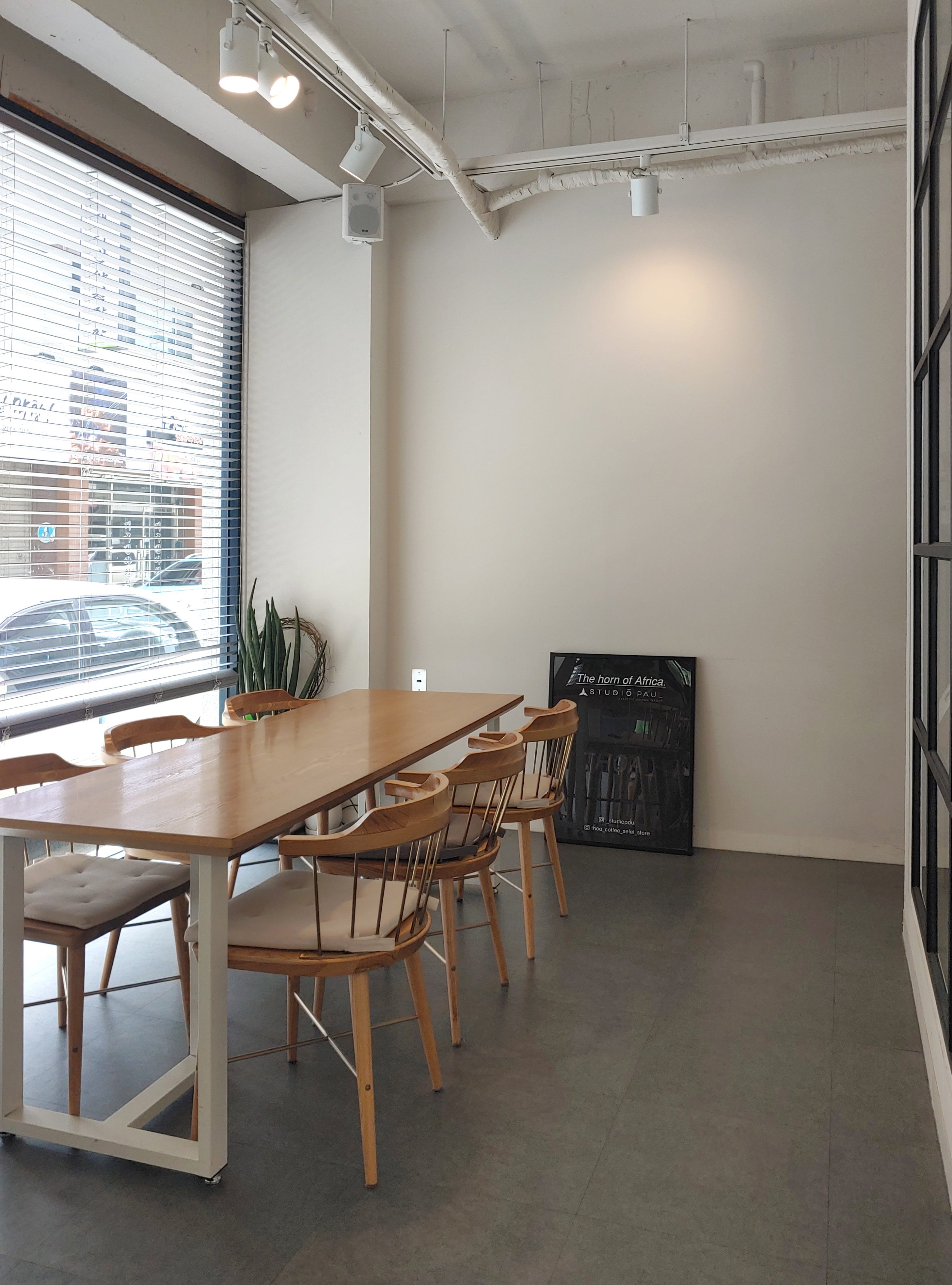 이 공간은 안쪽에 위치해 있는 창가석 중 단체석이에요.