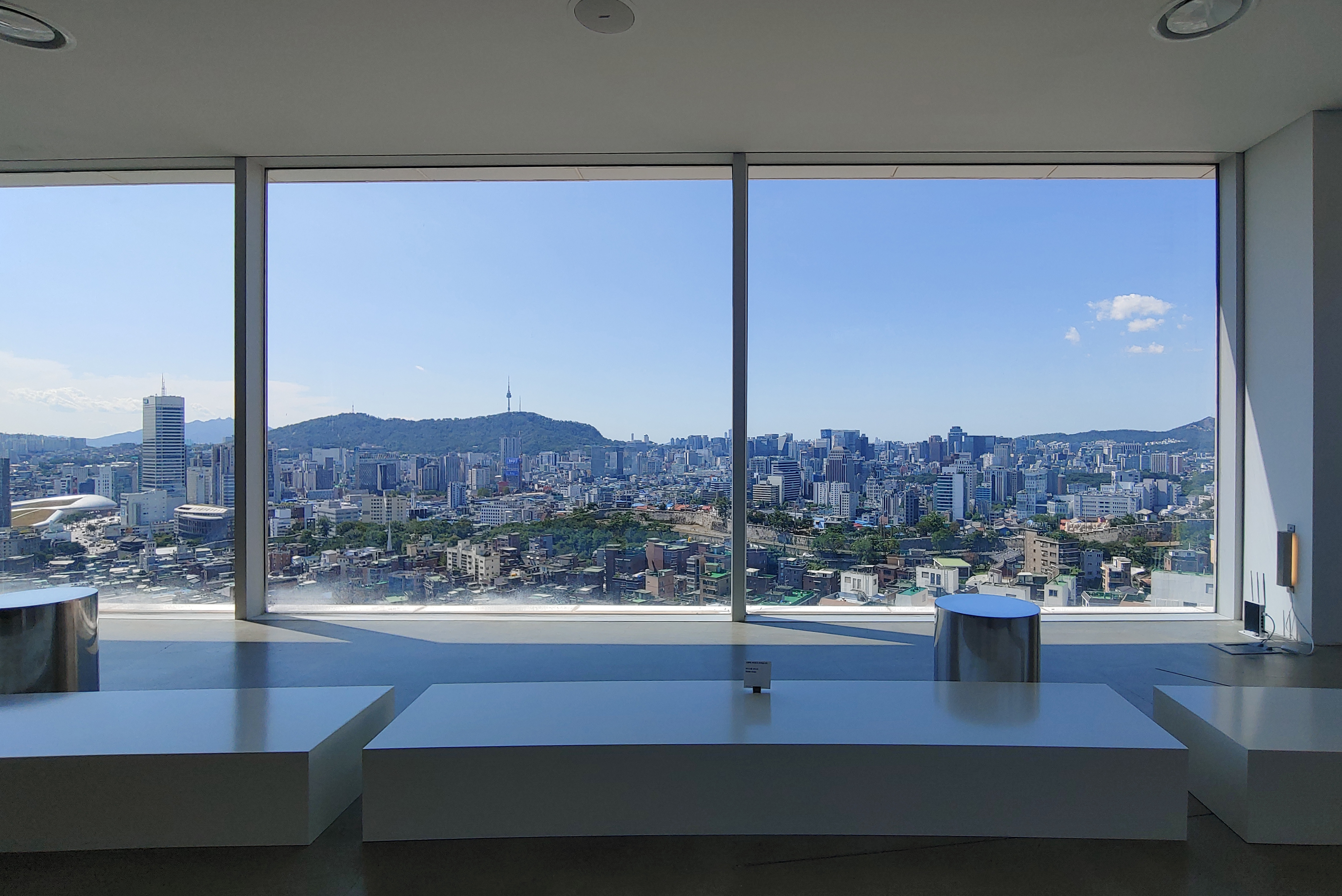 그냥 카페 건물이겠거니, 하고 들어갔는데, 주문하는 곳에서부터 서울 전망이 탁~ 트인 멋진 풍경이 보였습니다.