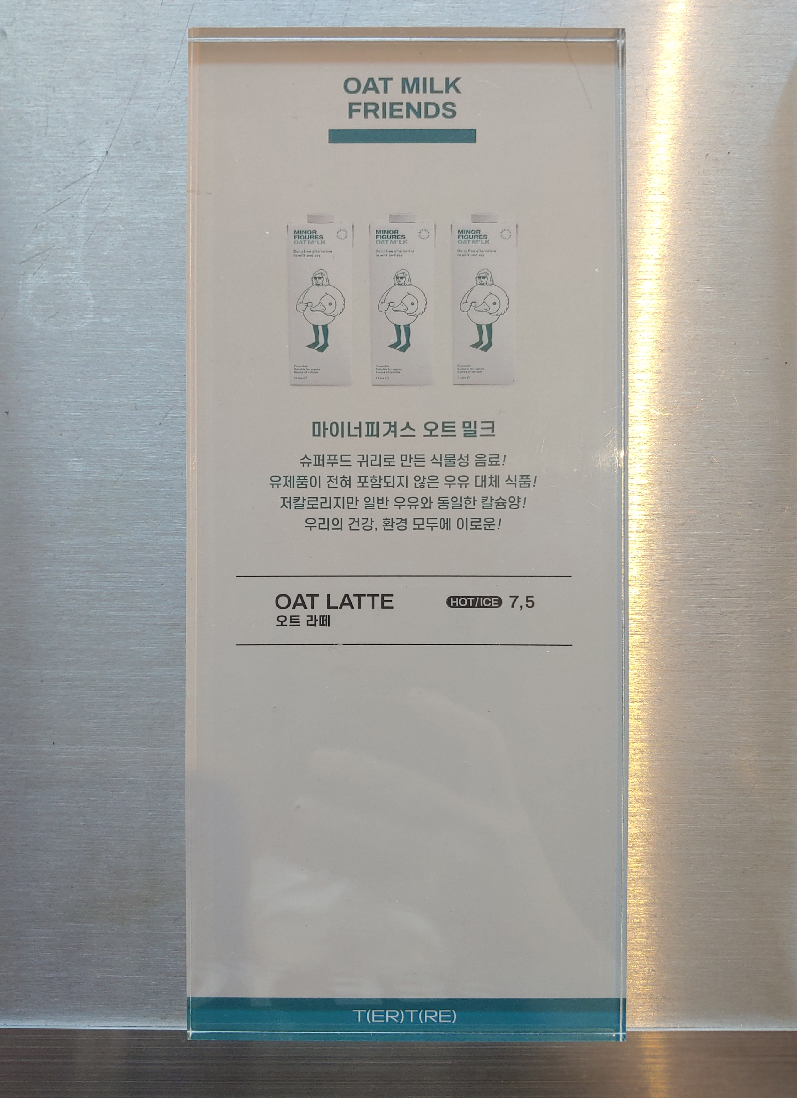 주문하기 전에 우유들이 나열되어 있길래, 이 오트 라떼용 밀크 더라구요.