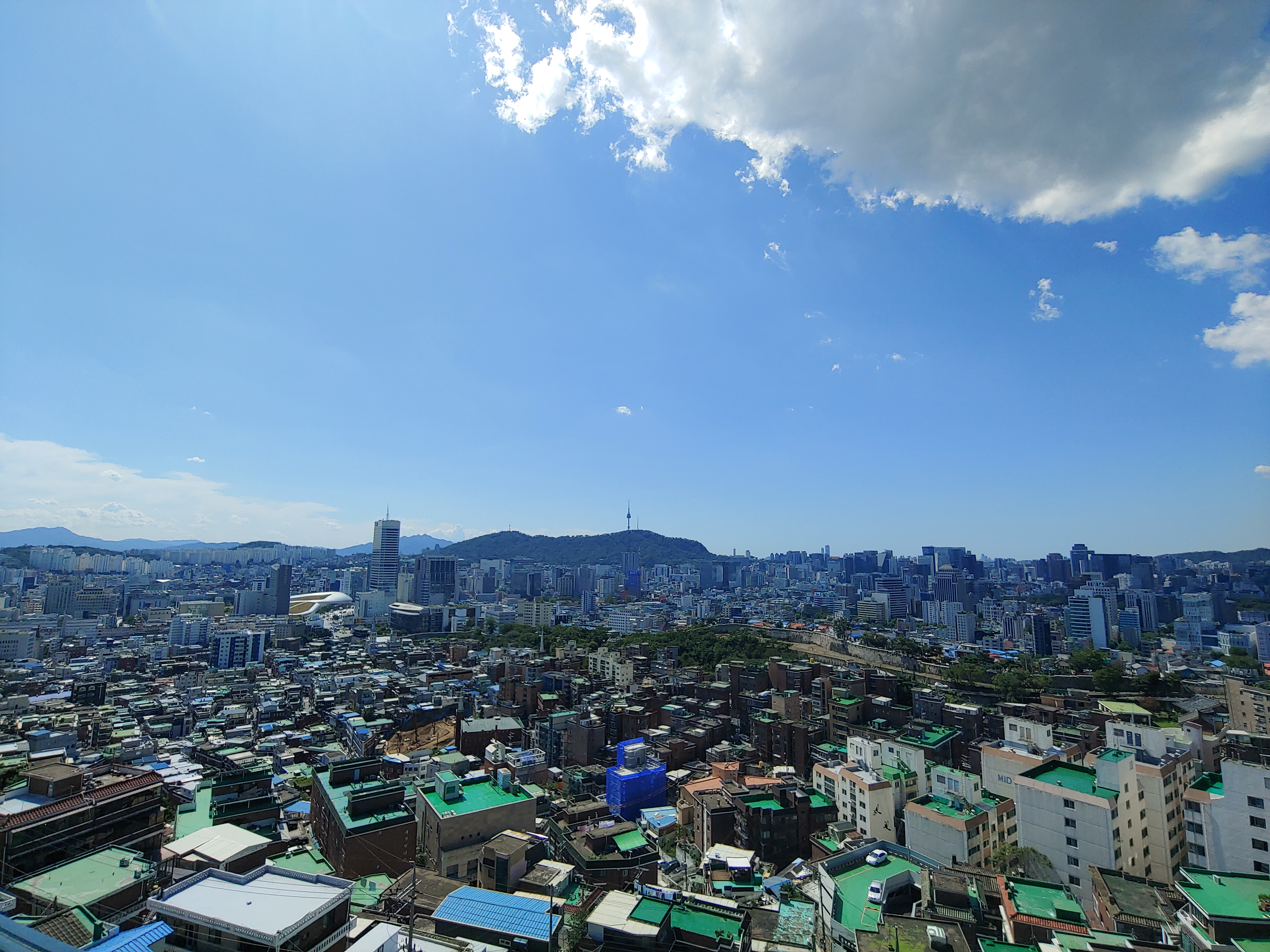 미세 먼지 하나 없는 서울 가을의 전망이 살짝 보여서, 이 카페 공간이 굉장이 기대 되는 순간이었습니다.