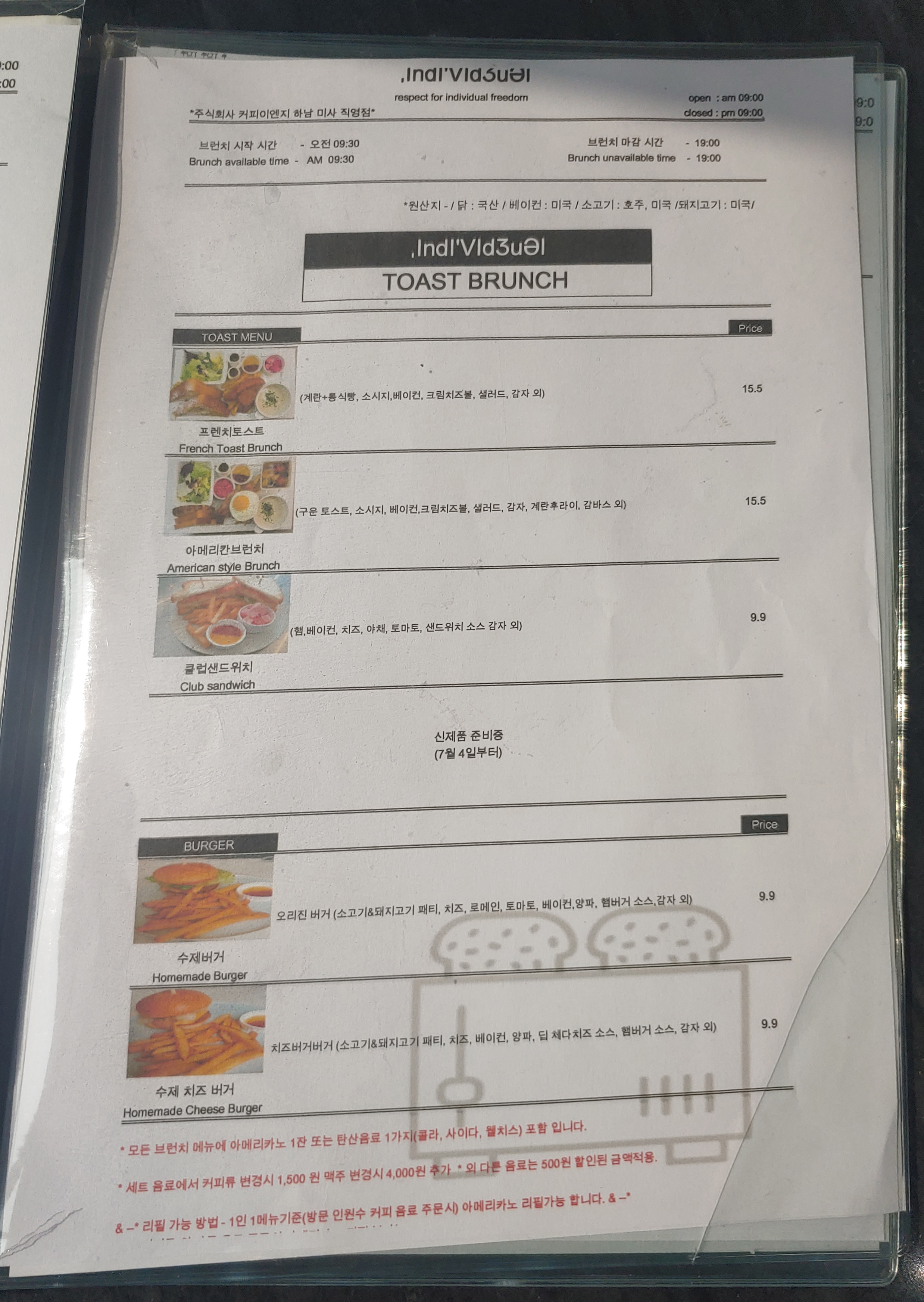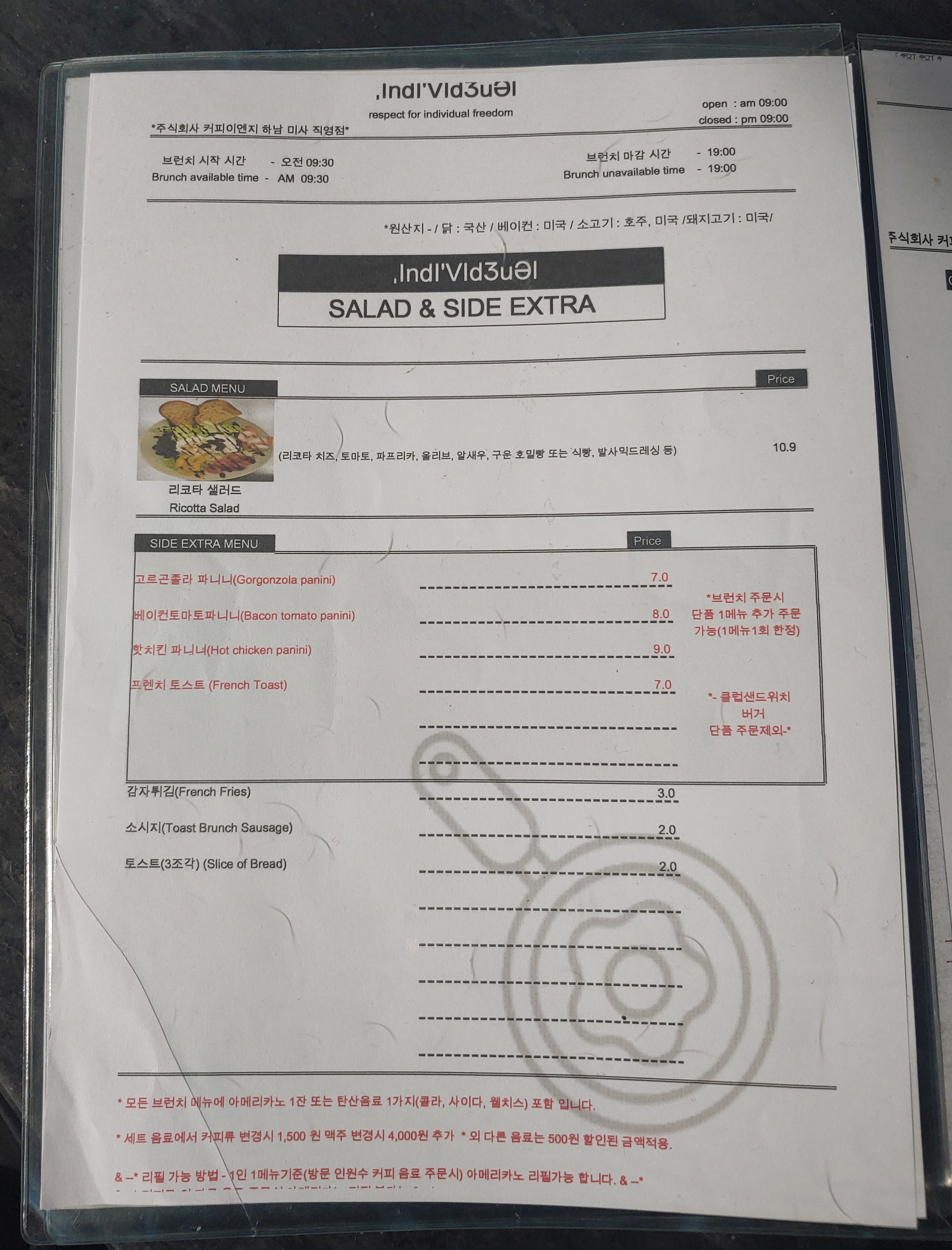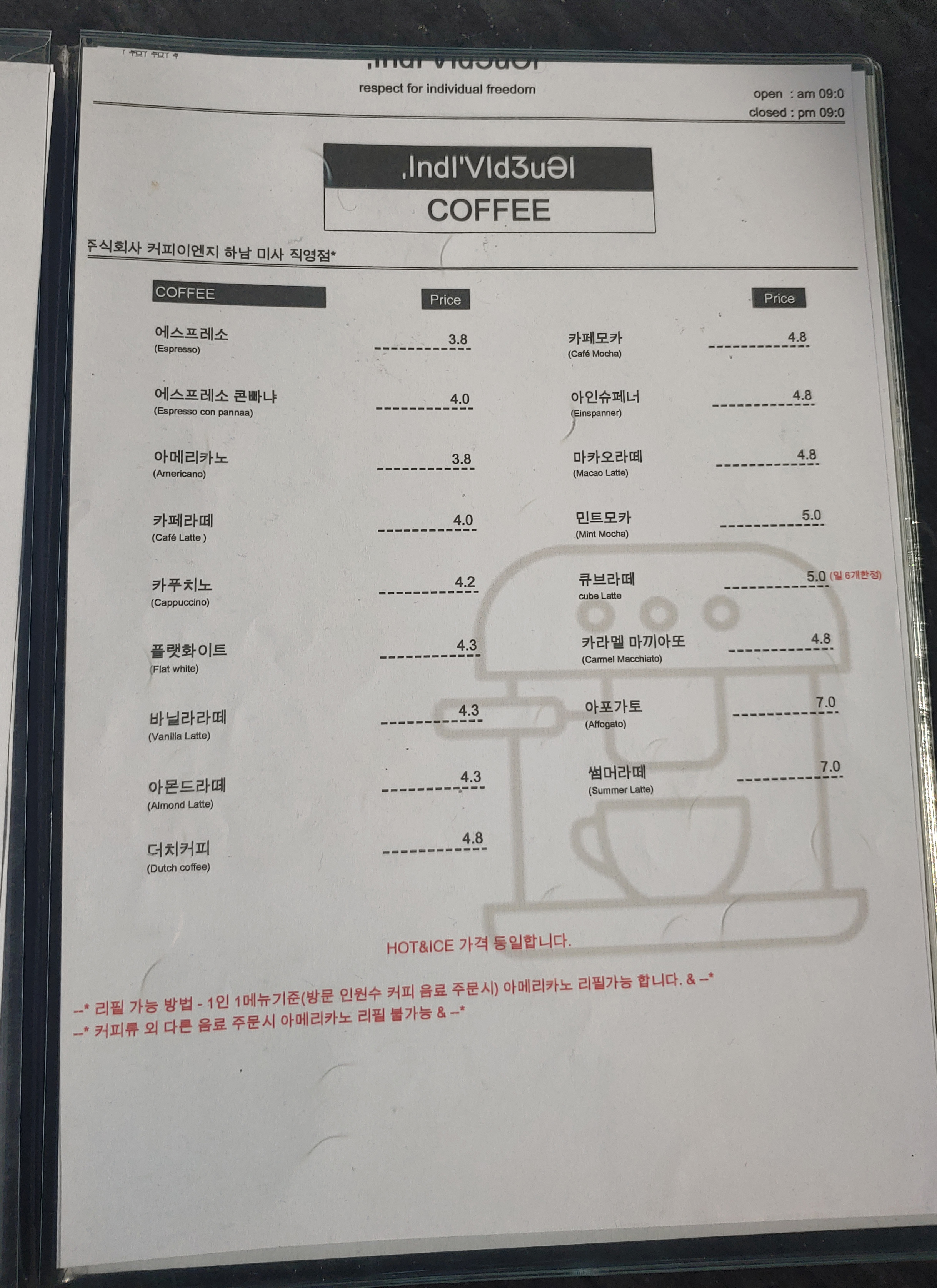 인디비주얼 자체의 영어보다 영어 발음이 이 카페의 간판이더군요. 저렇게 지은 이유가 있을 것도 같은데... 뭘까요..?