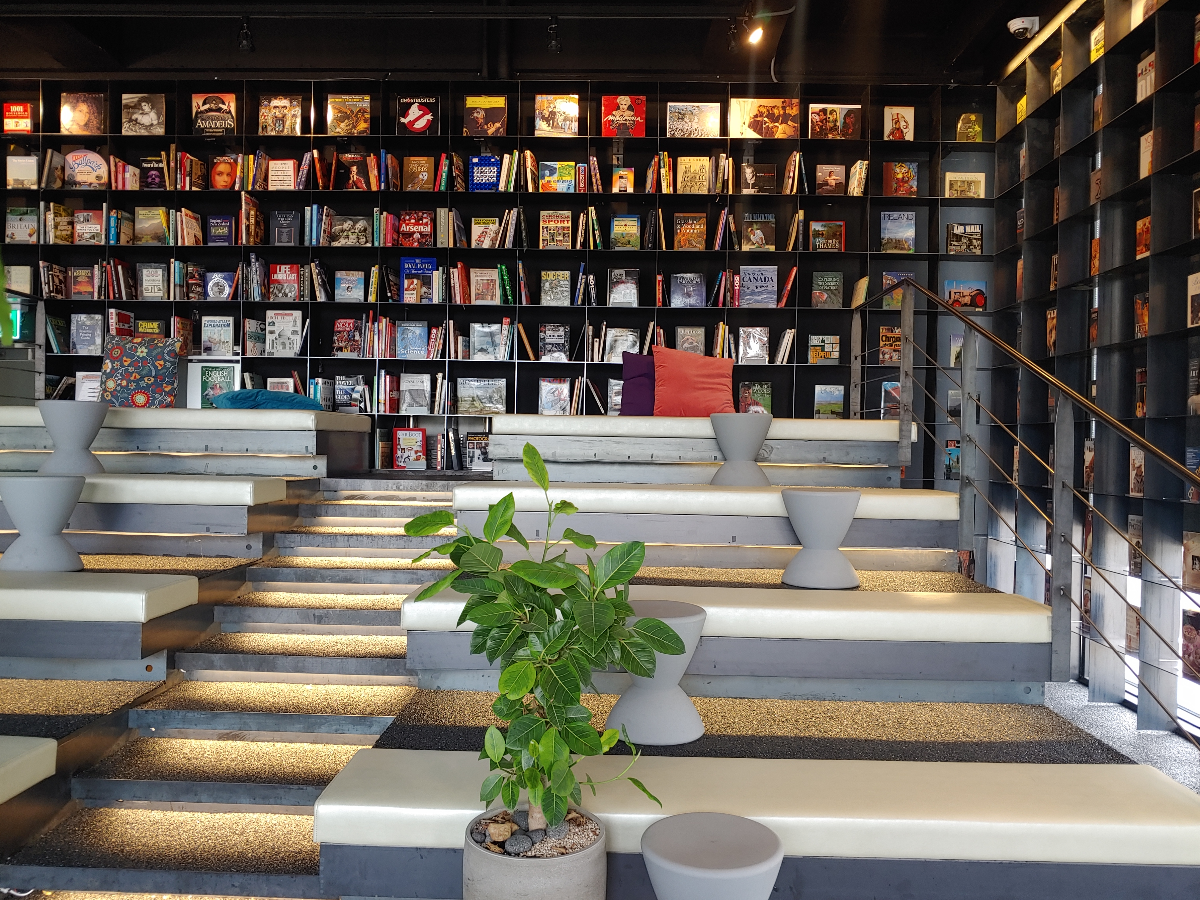 읽으라고 놓아둔 책인가? 싶기도 했는데, (읽어도 상관없지만) 읽으라고 둔 주인의 센스가 아니라 이것도 공간 디자인의 한 표현인 것 같더라구요.