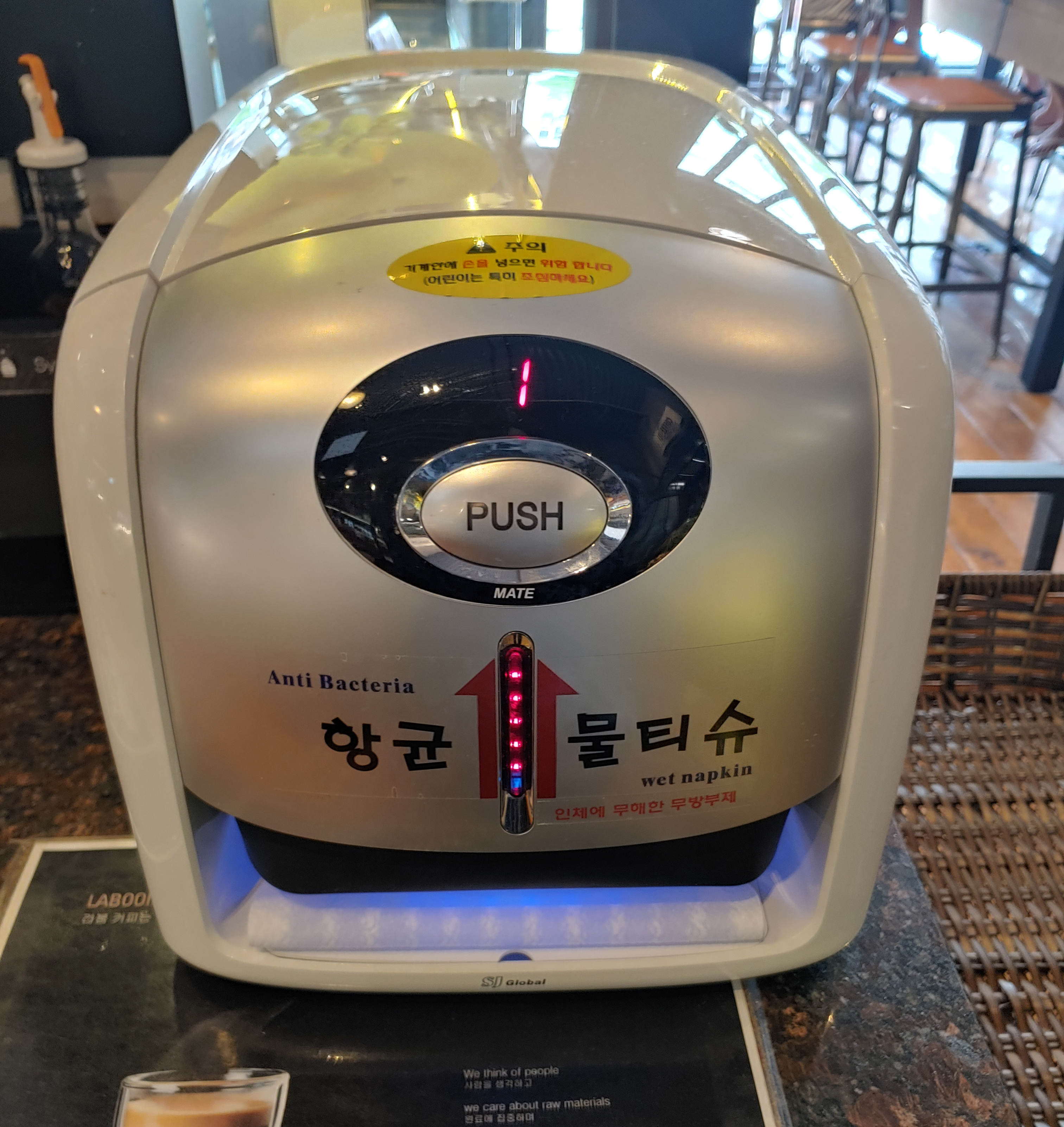 화장실에서도 손을 씻긴 했지만, 먹다보면 필요한 물티슈가 셀프!