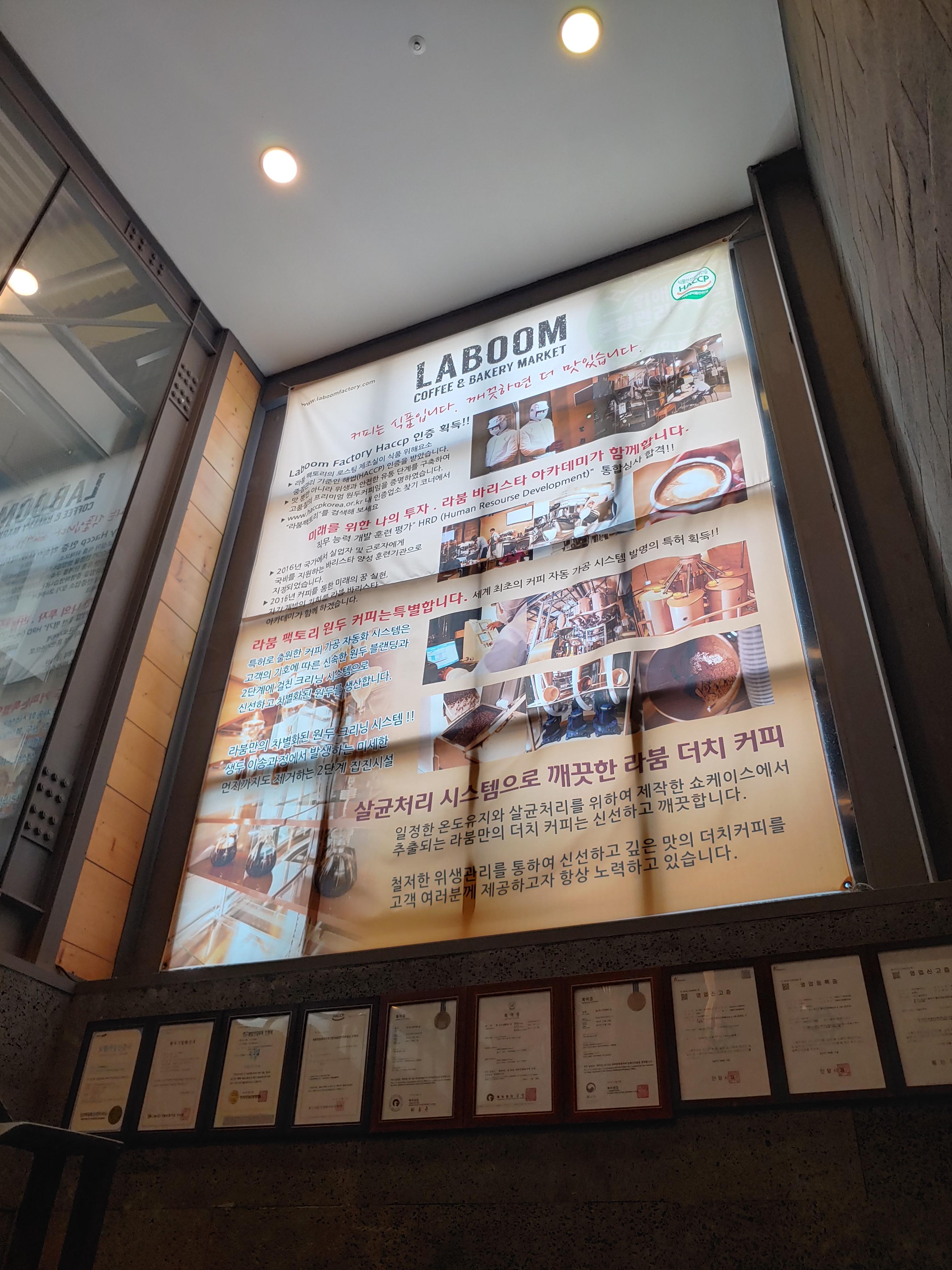 굉장히 큰~ 현수막과 각종 수상 경력이 붙어있는 액자들...