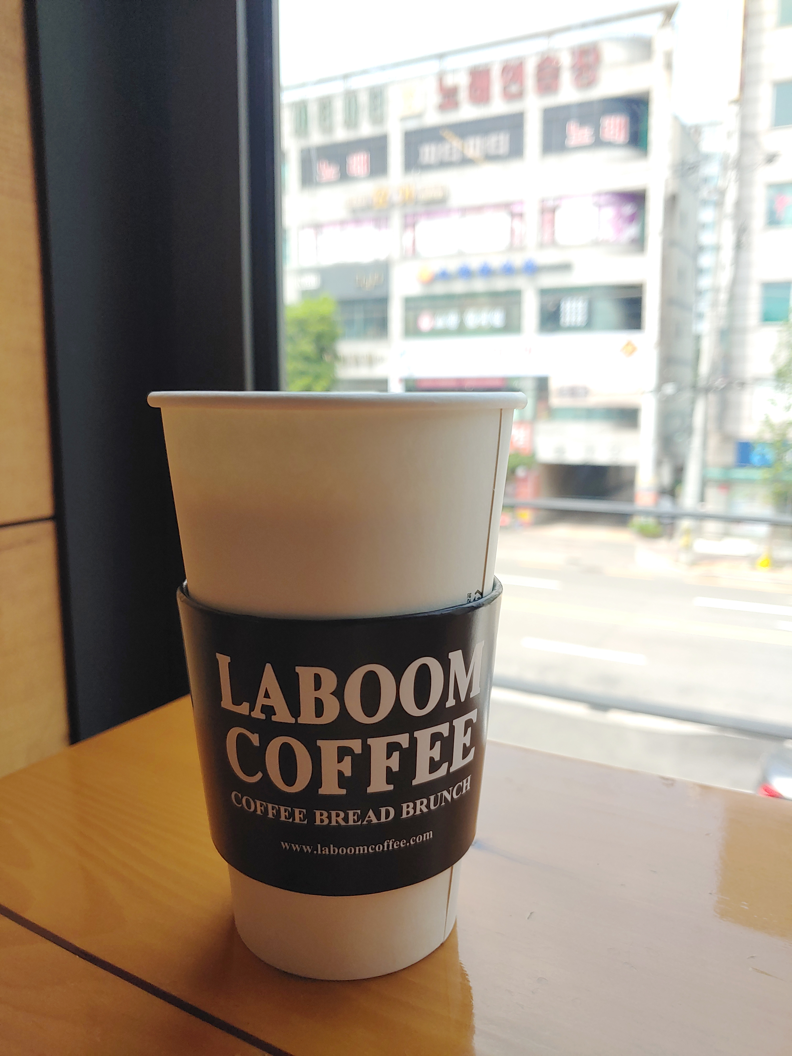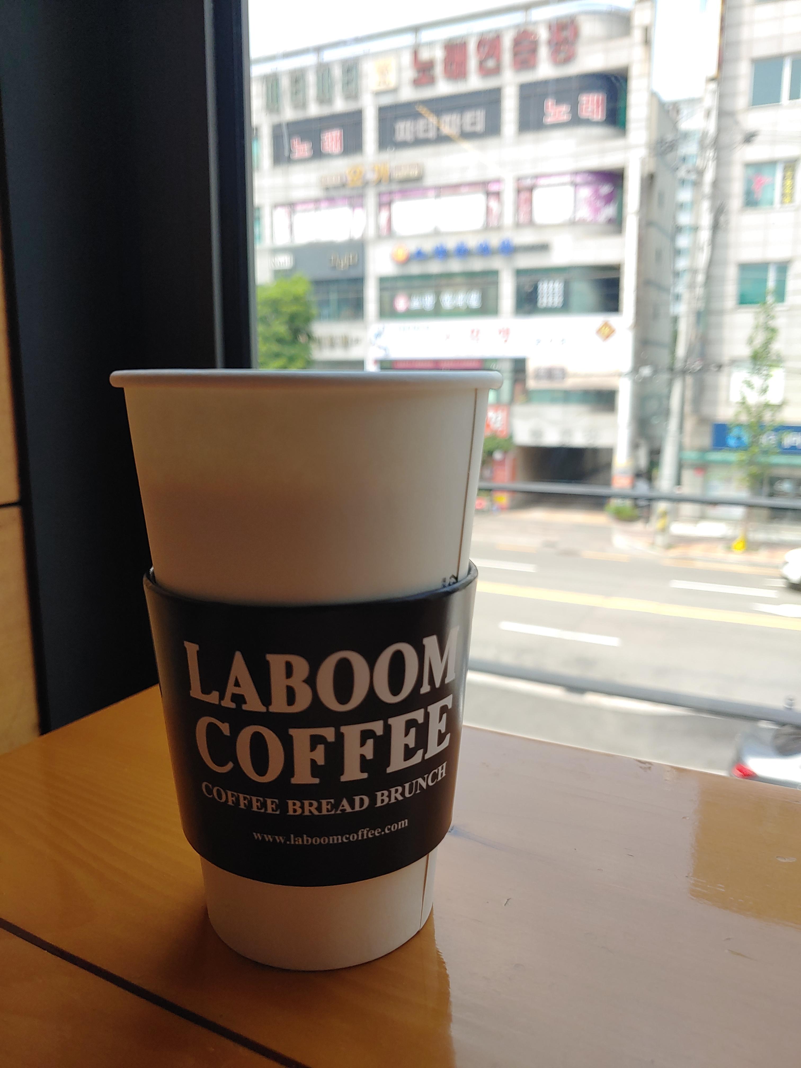 빵과 함께 커피를 주문하고 (진동벨을 받아왔습니다~) 혼자 앉을만한 창가석에 자리 잡았습니다.