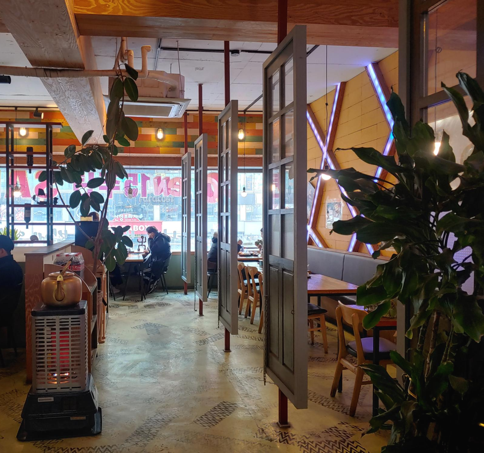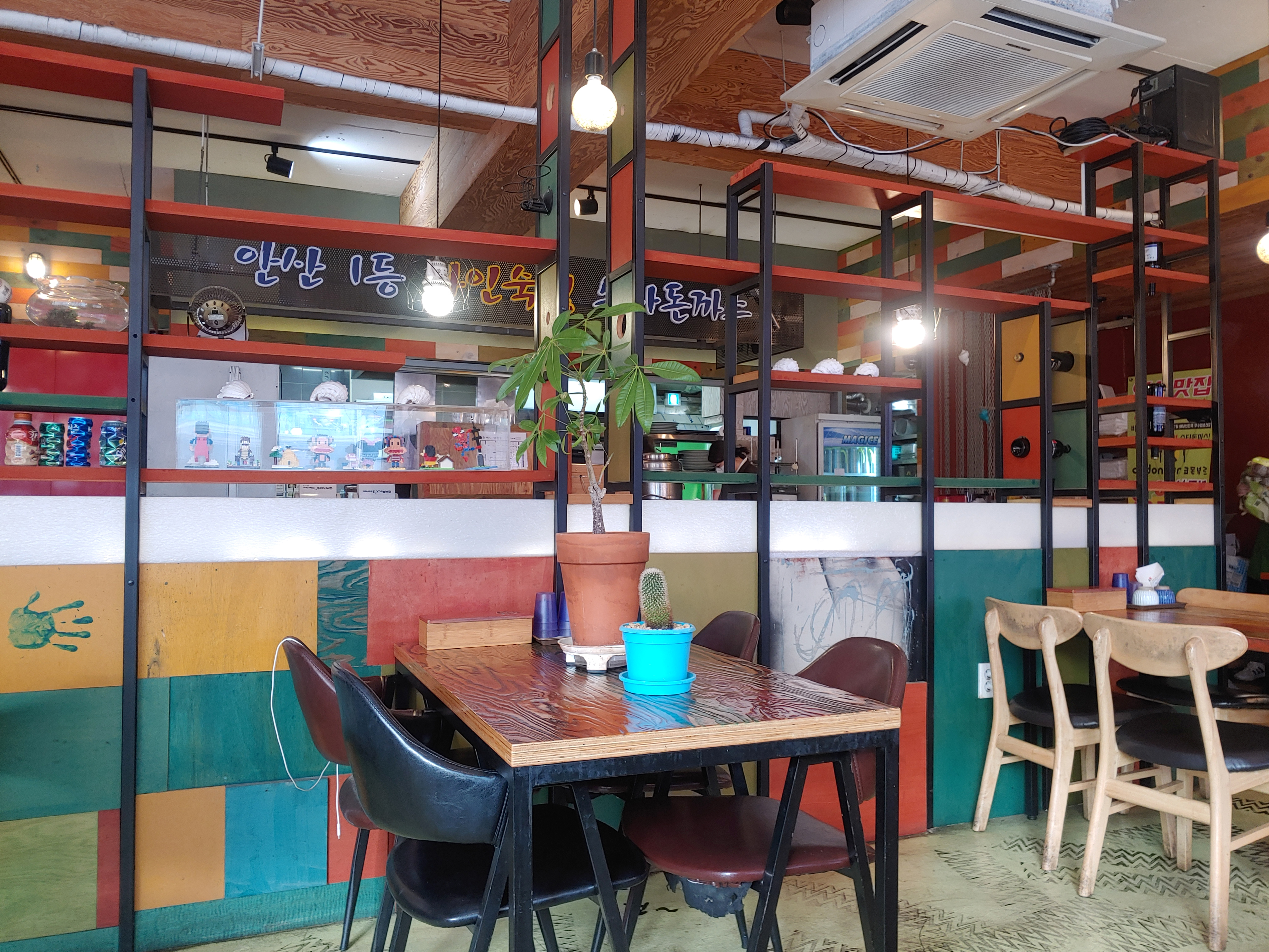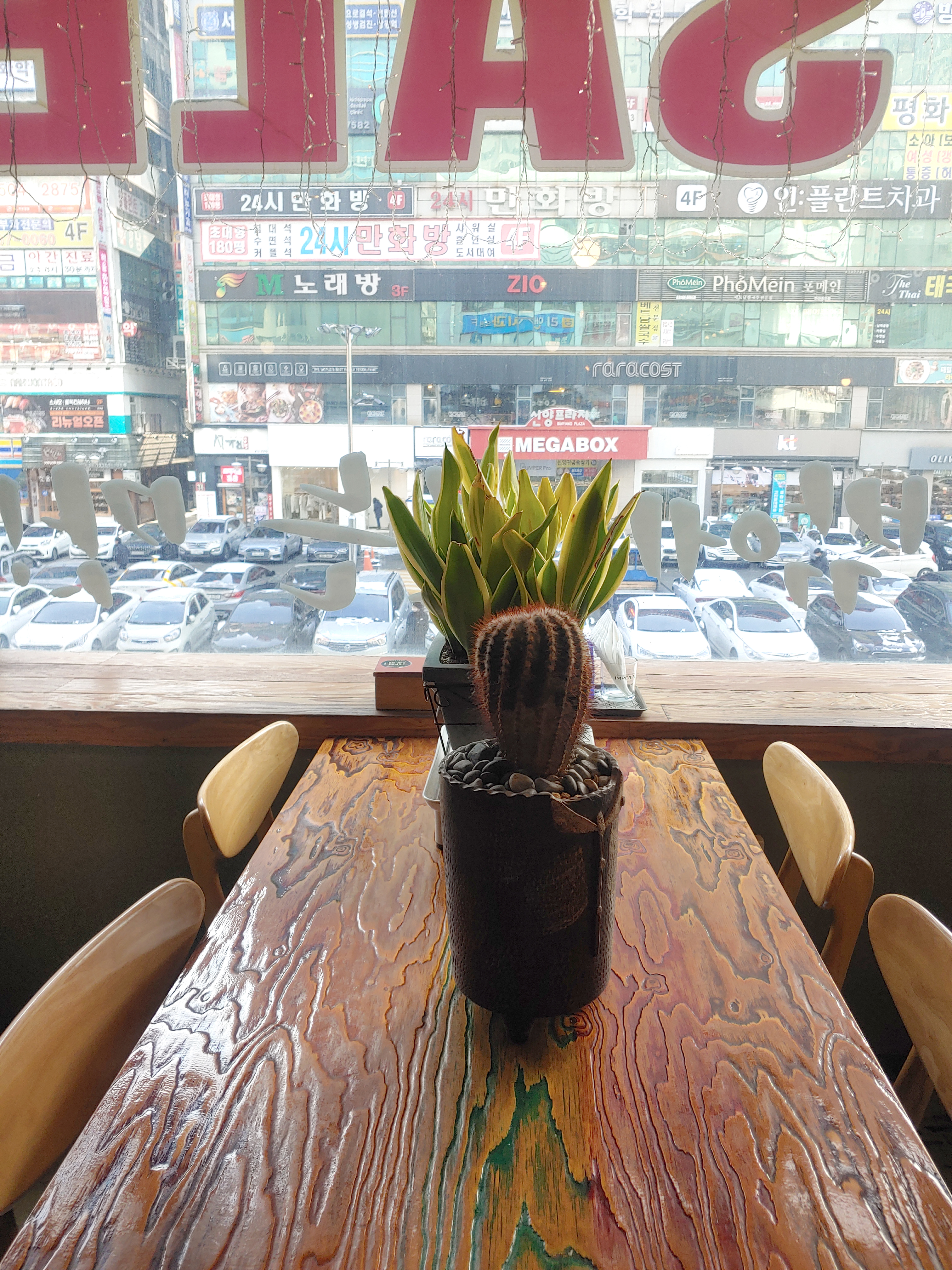 저희는 요 화분 테이블 바로 옆 테이블의 창가석으로 배정 받았습니다~