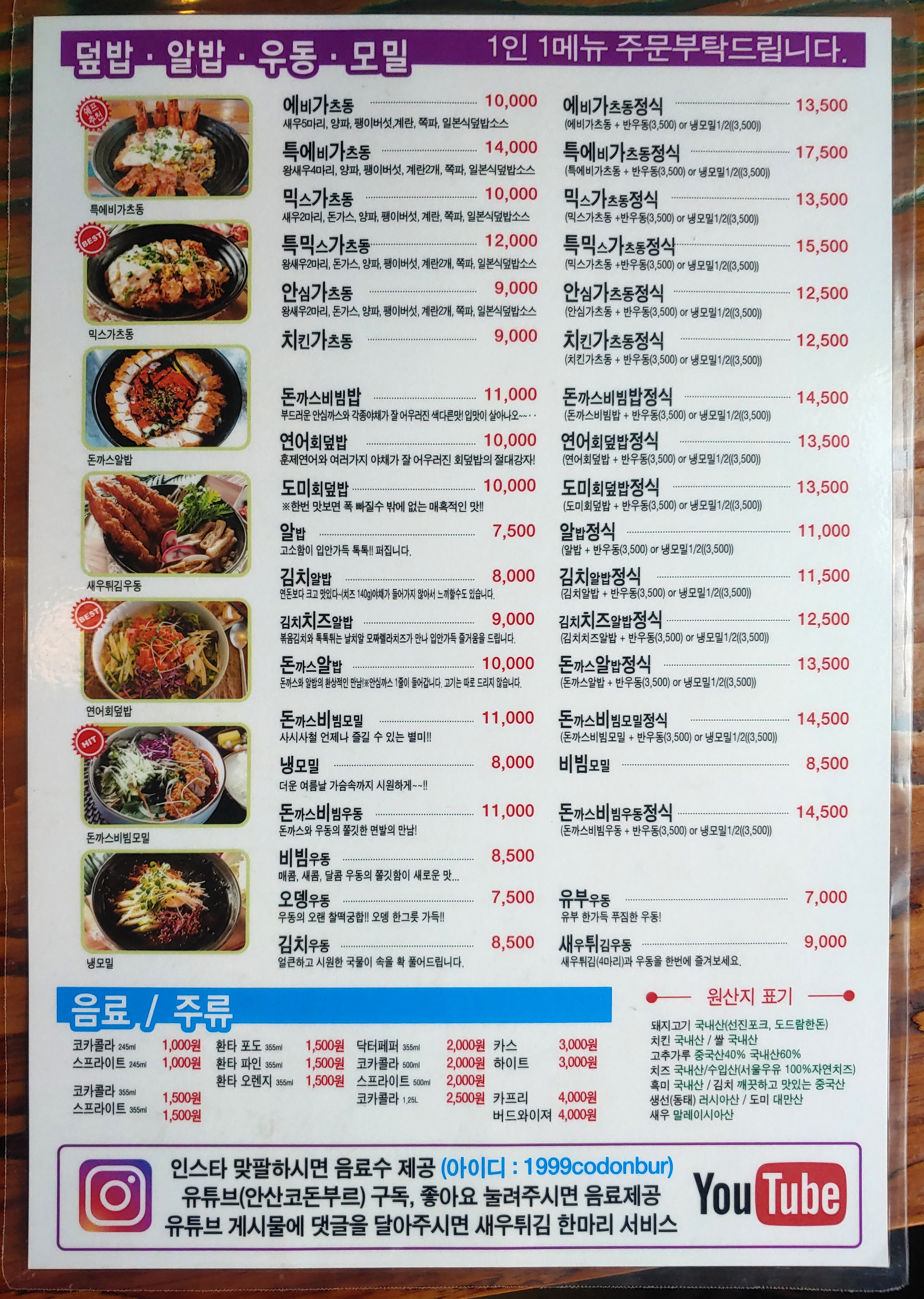 코돈부르 메뉴에 대한 정보는 키오스크보다 메뉴 코팅지(?)가 훨씬 보기 편해서 메뉴판으로 올립니다~
