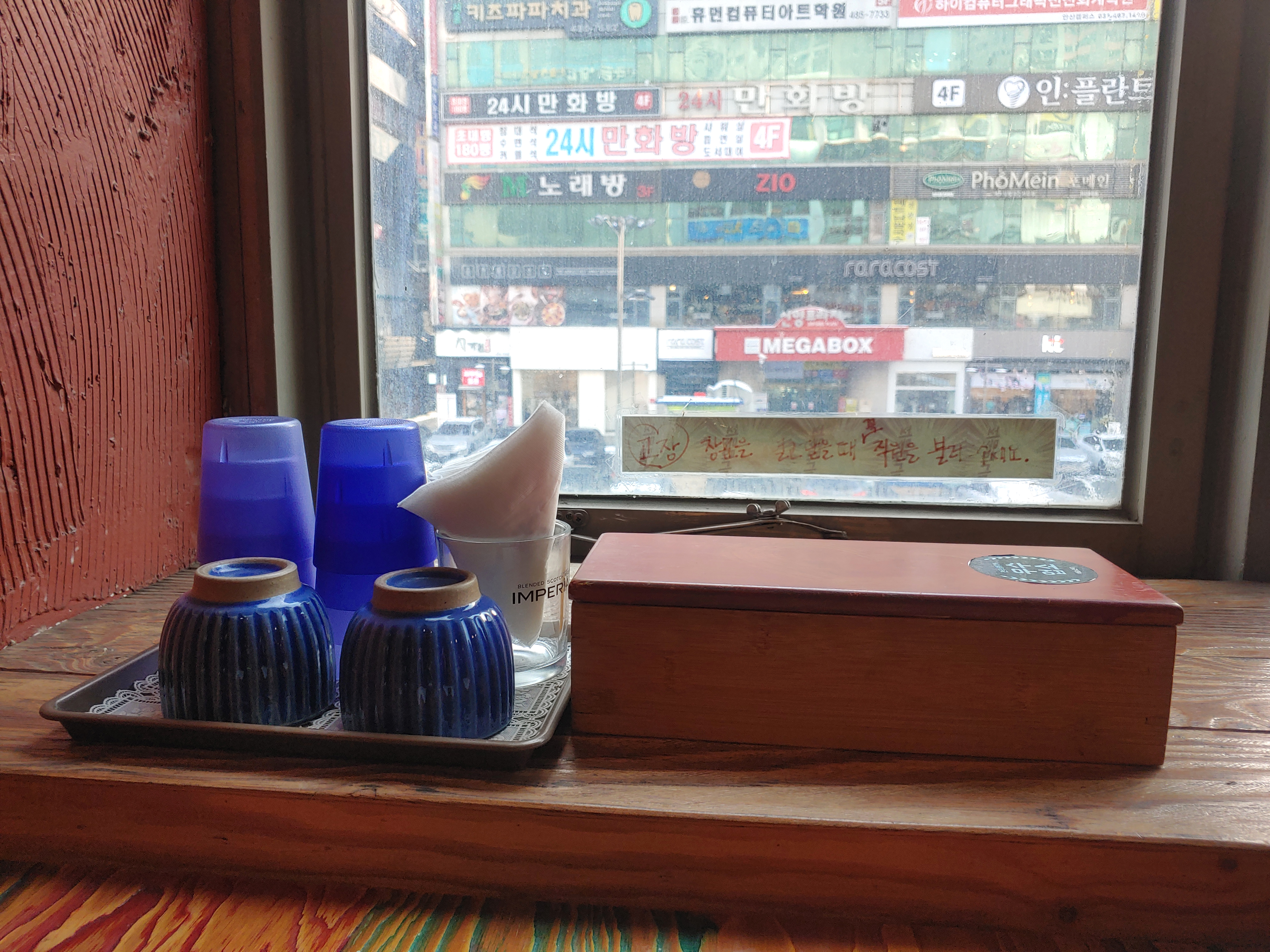 테이블엔 앞뒷면으로 메뉴가 빼곡히 적혀 있는 메뉴판 하나가 놓여져 있었습니다.