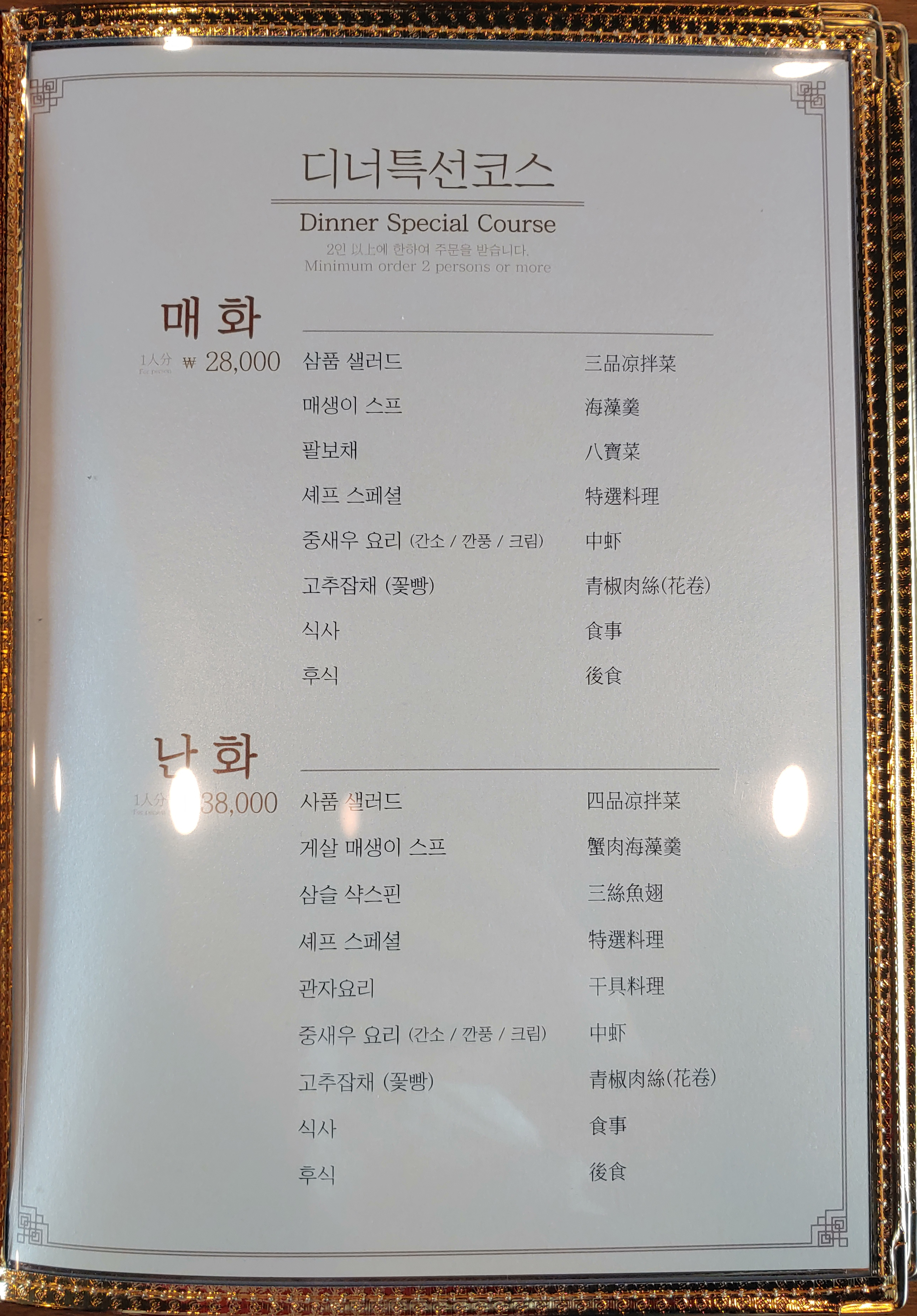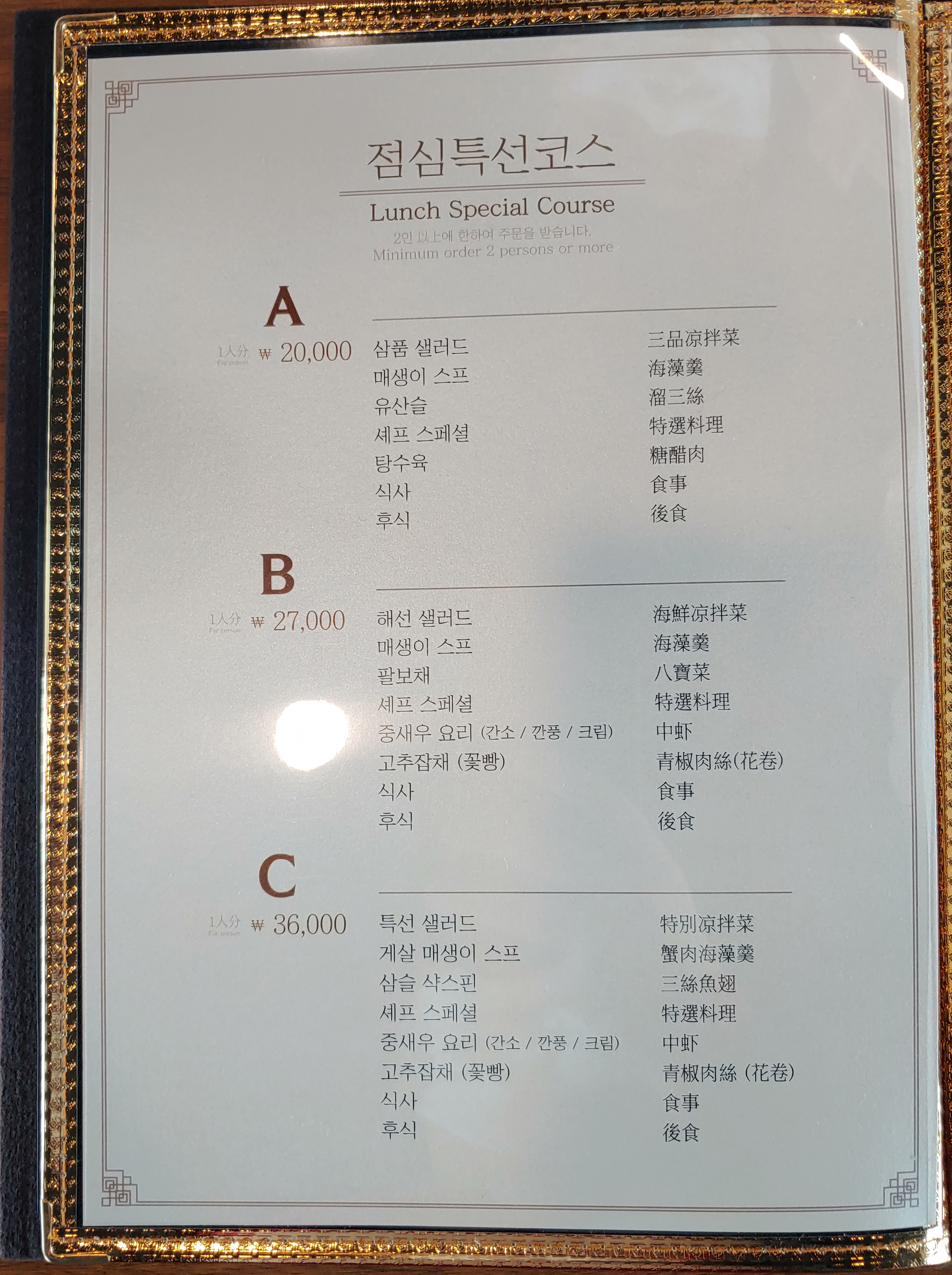 1인 2만원으로 여러가지 중화요리를 먹어볼 수 있었던 코스요리는 동료와 저 둘 다 굉장히 만족스러웠어요~ 여러가지 메뉴를 맛보고 싶을 때, 이런 코스 요리로 먹어보는 것도 좋은 거 같습니다.