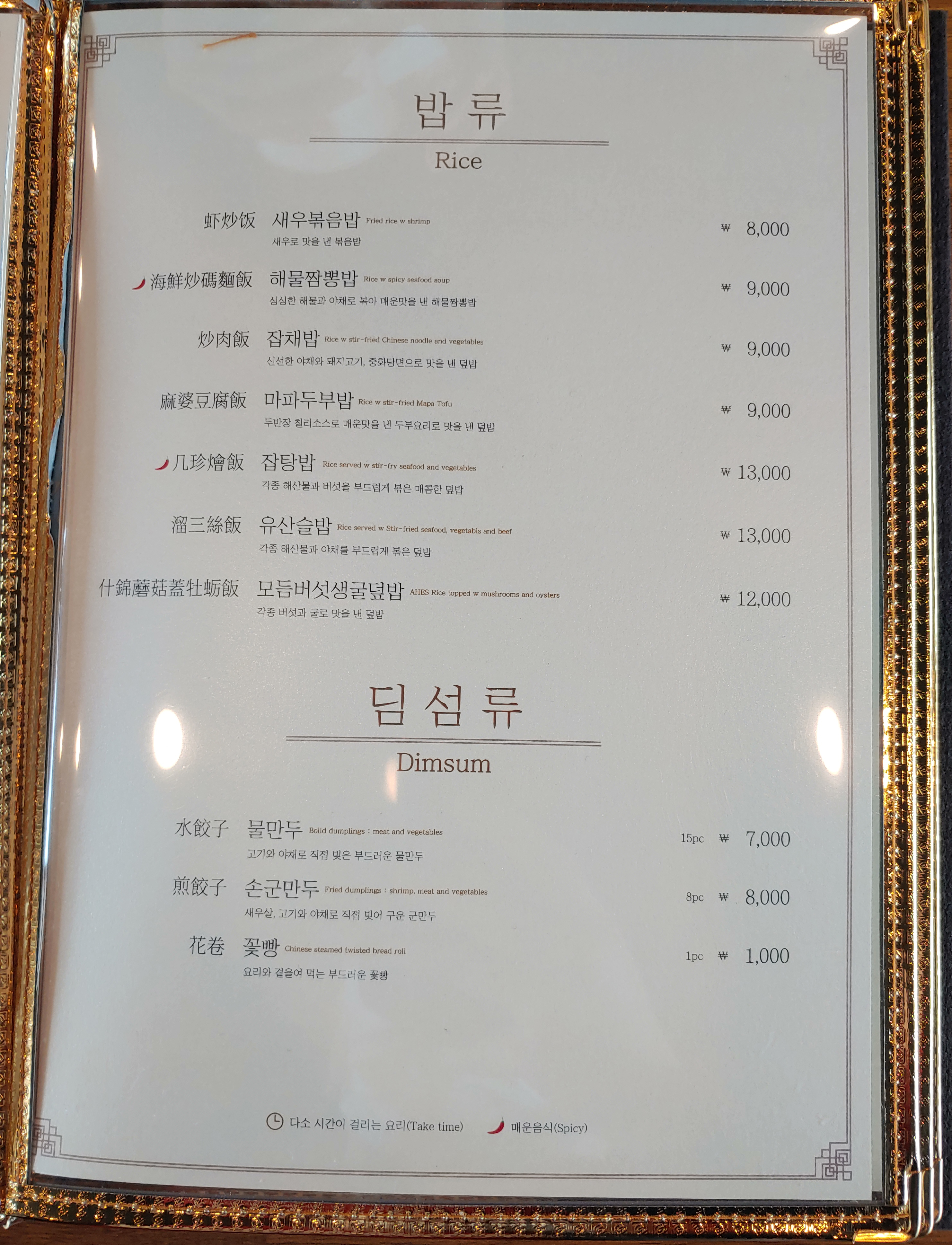 그 외에 중식당에 오면 가장 기본적으로 떠오르는 메뉴들은 메뉴판의 중간쯤에 위치해 있습니다. 볶음밥, 만두, 짜장면 등 가격대도 괜찮은 것 같아요. :)