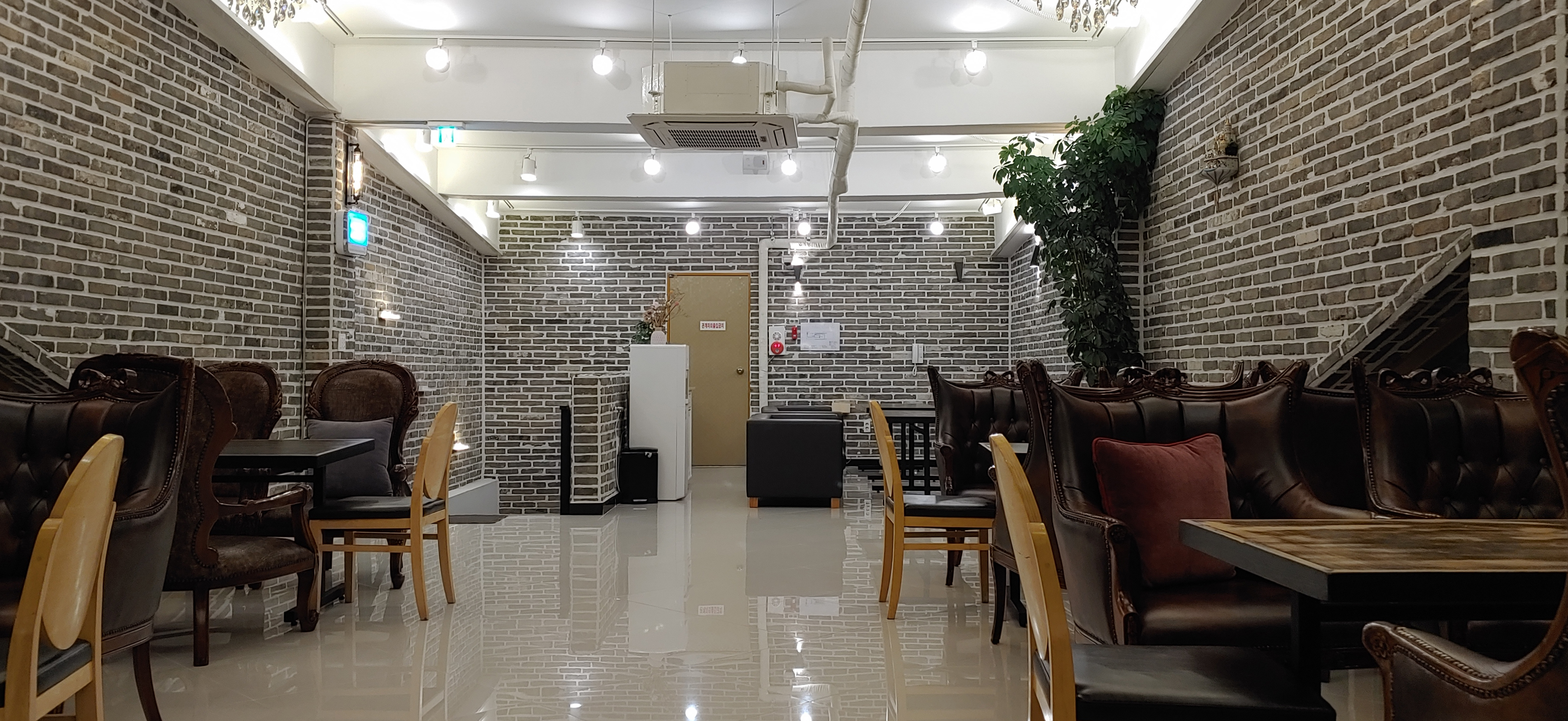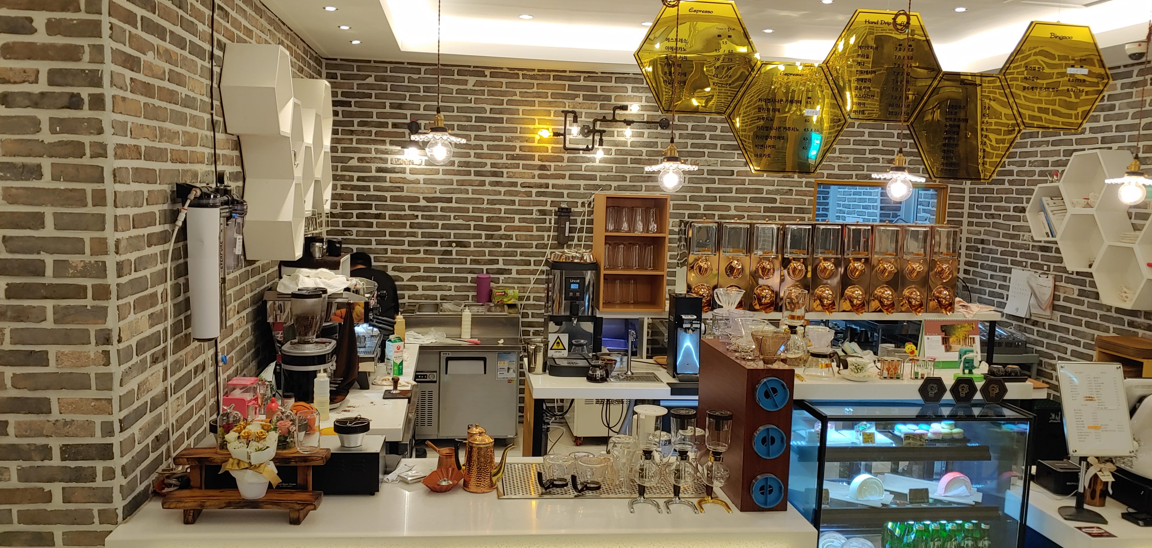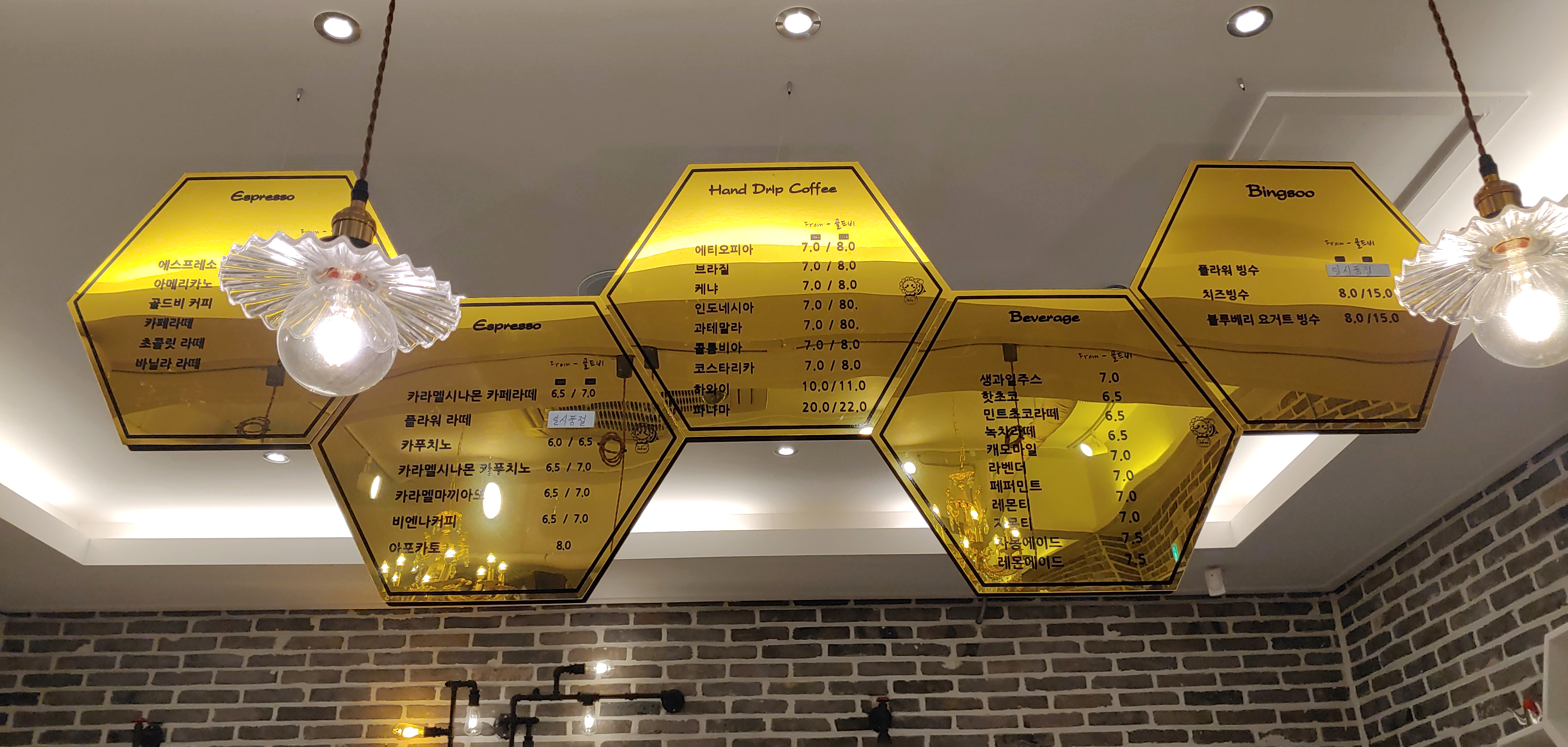 간판의 글자체와 참으로 어울리지 않는 카페라는 느낌을 받았습니다.
