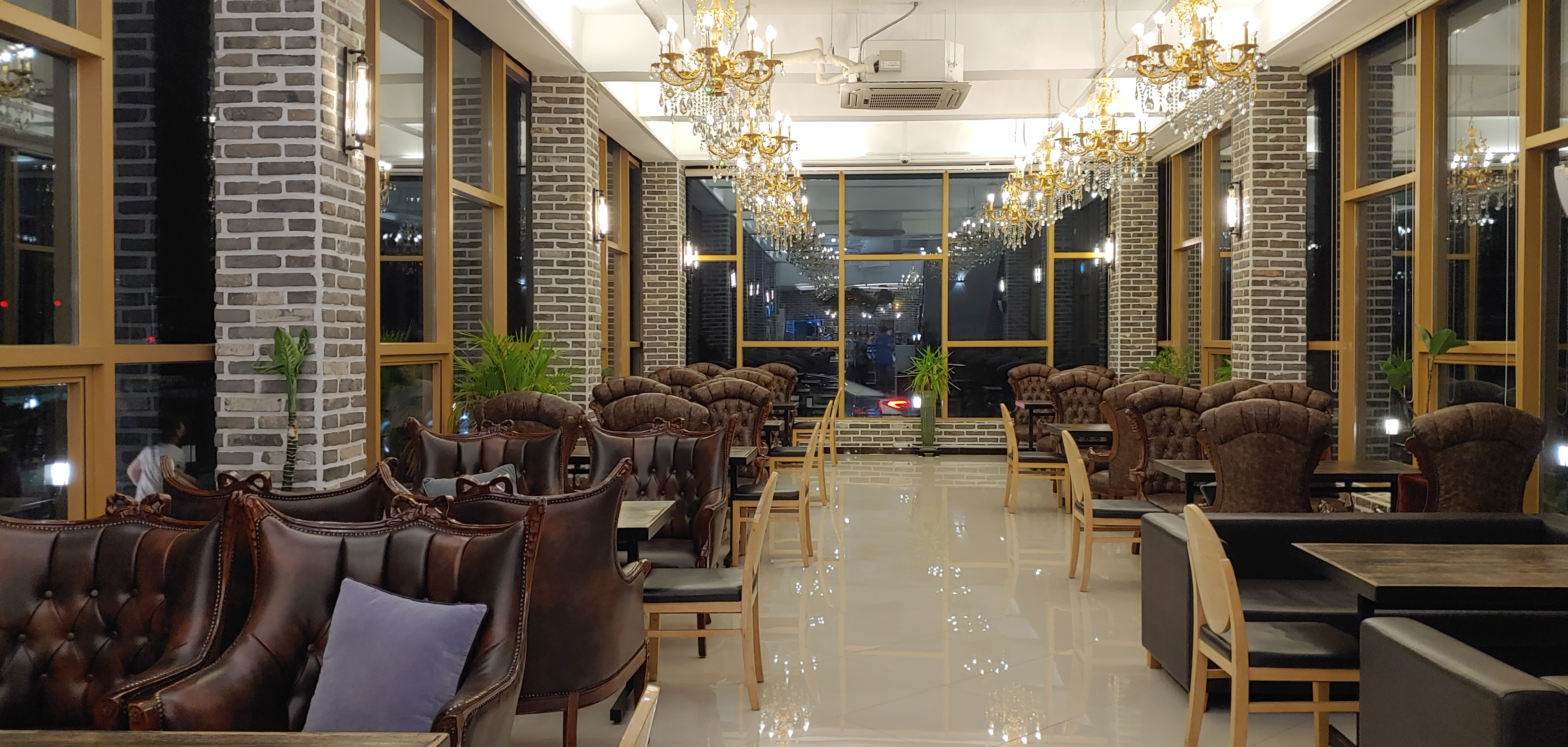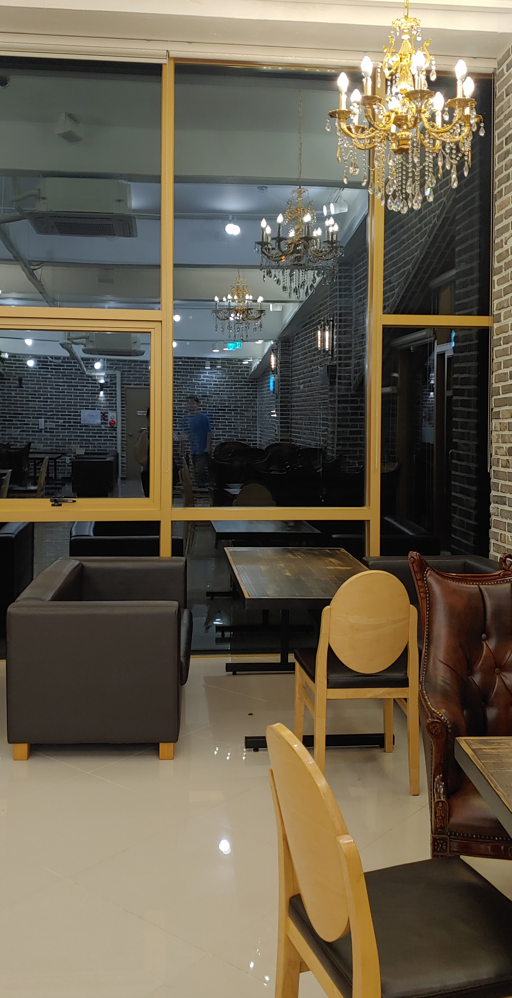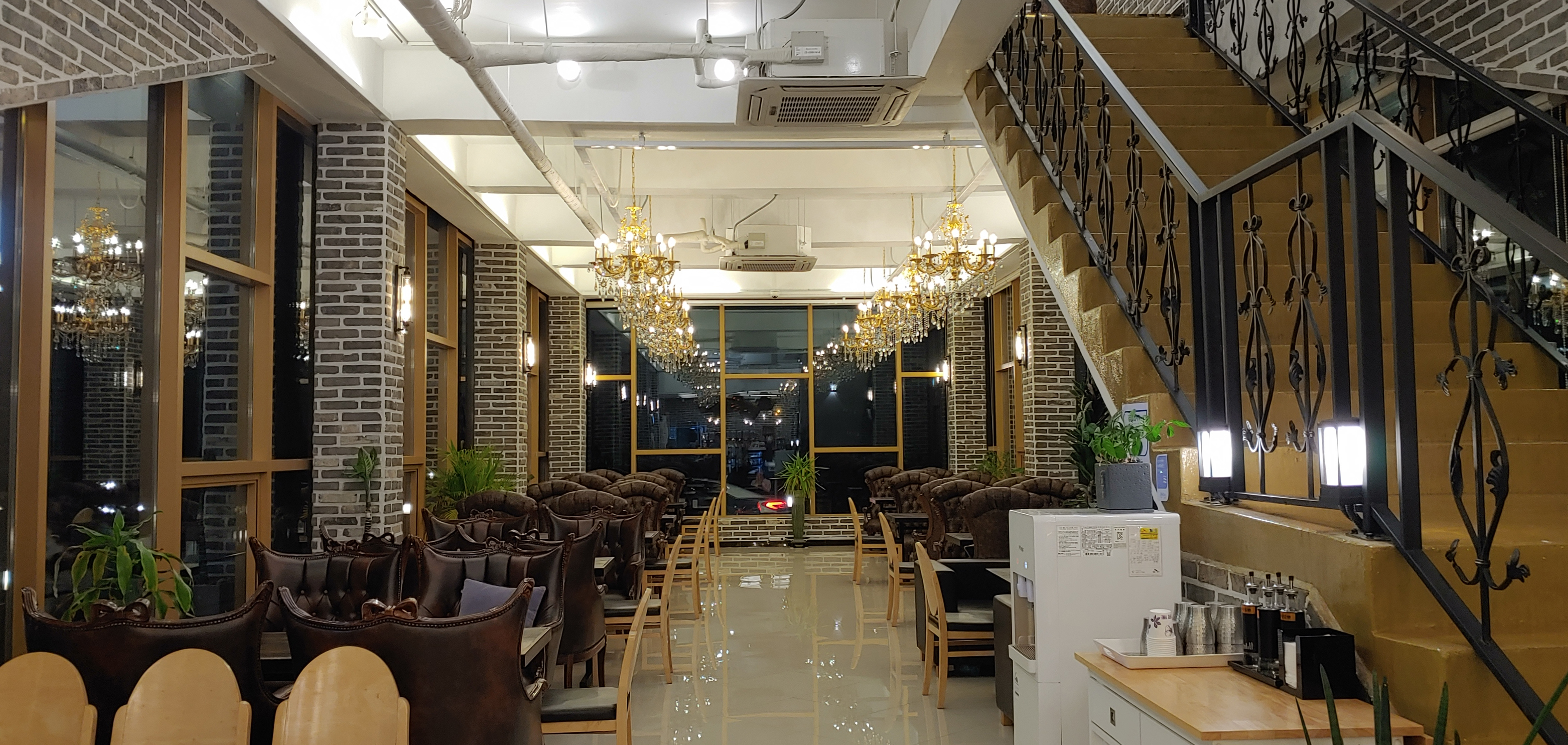 해가 진 이후에 방문한 카페라, 내부의 번쩍번쩍한 골드의 색감이 더 잘보이는 것 같습니다.