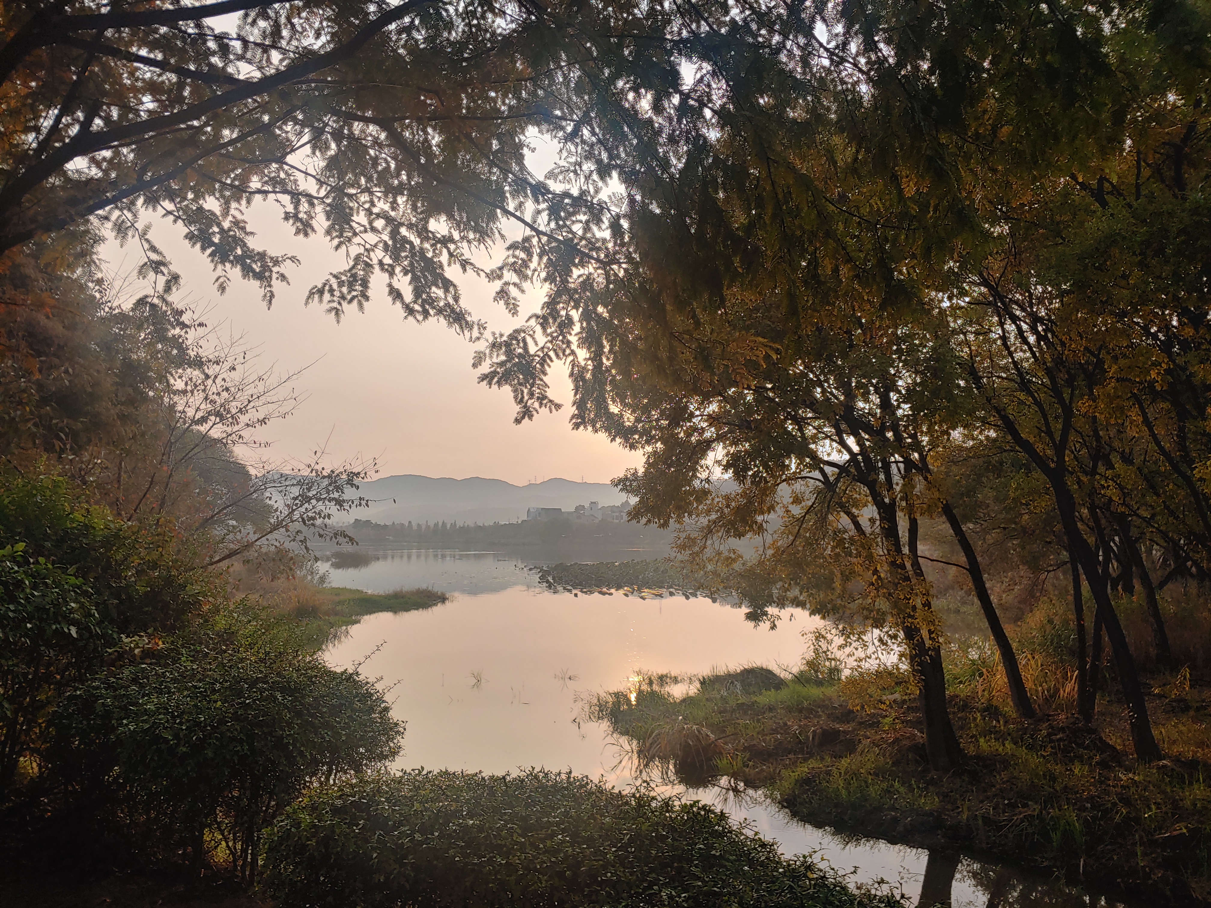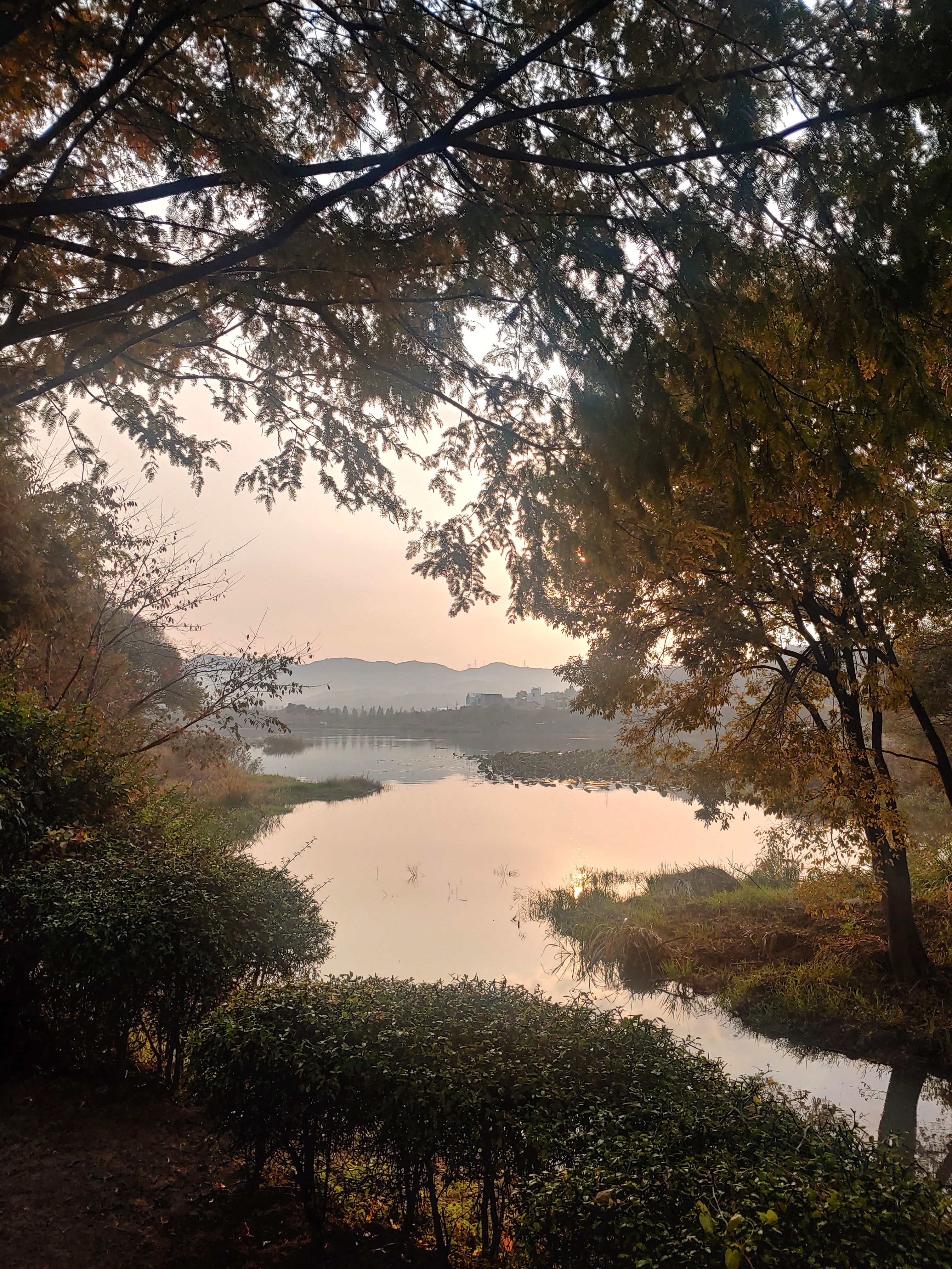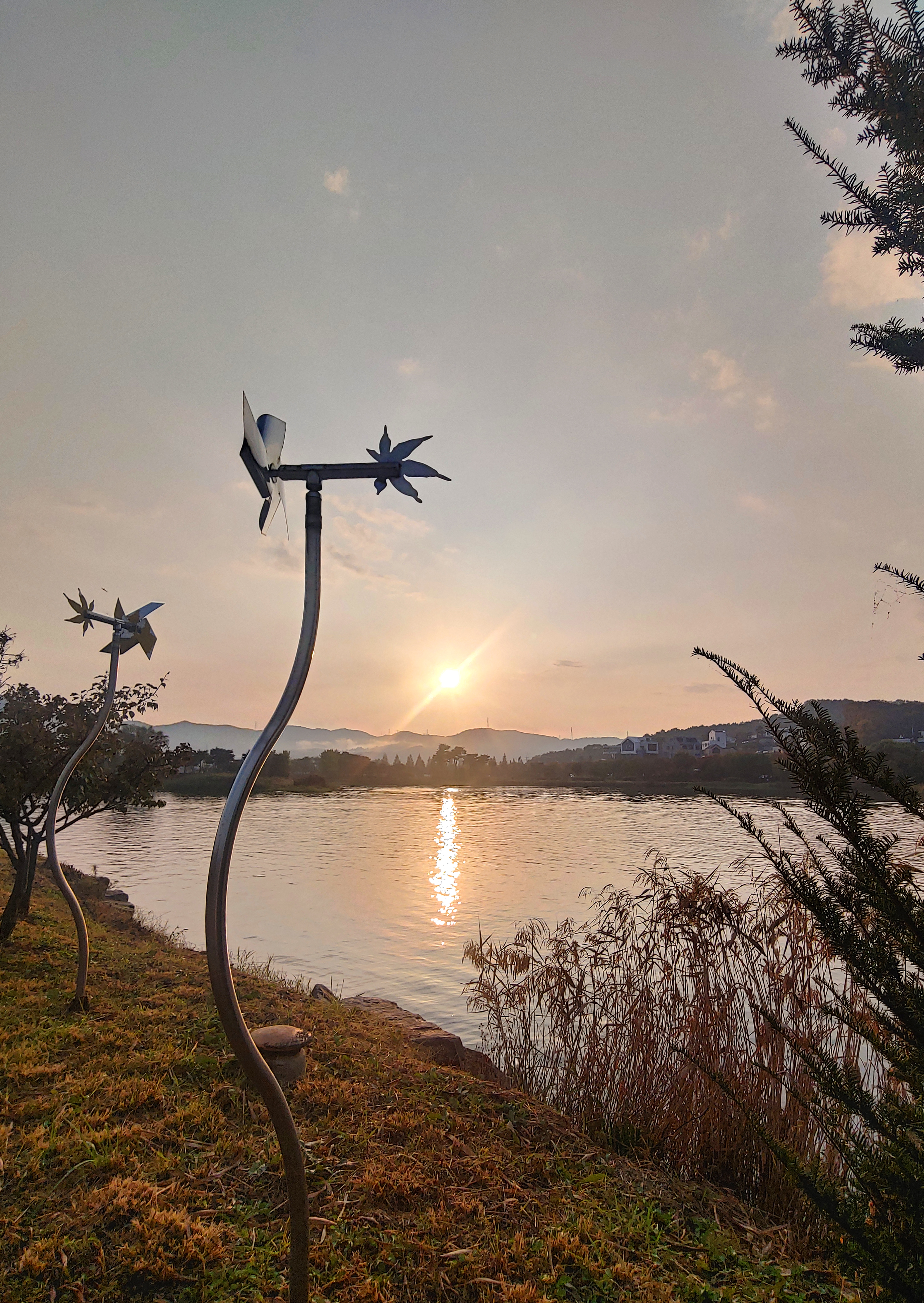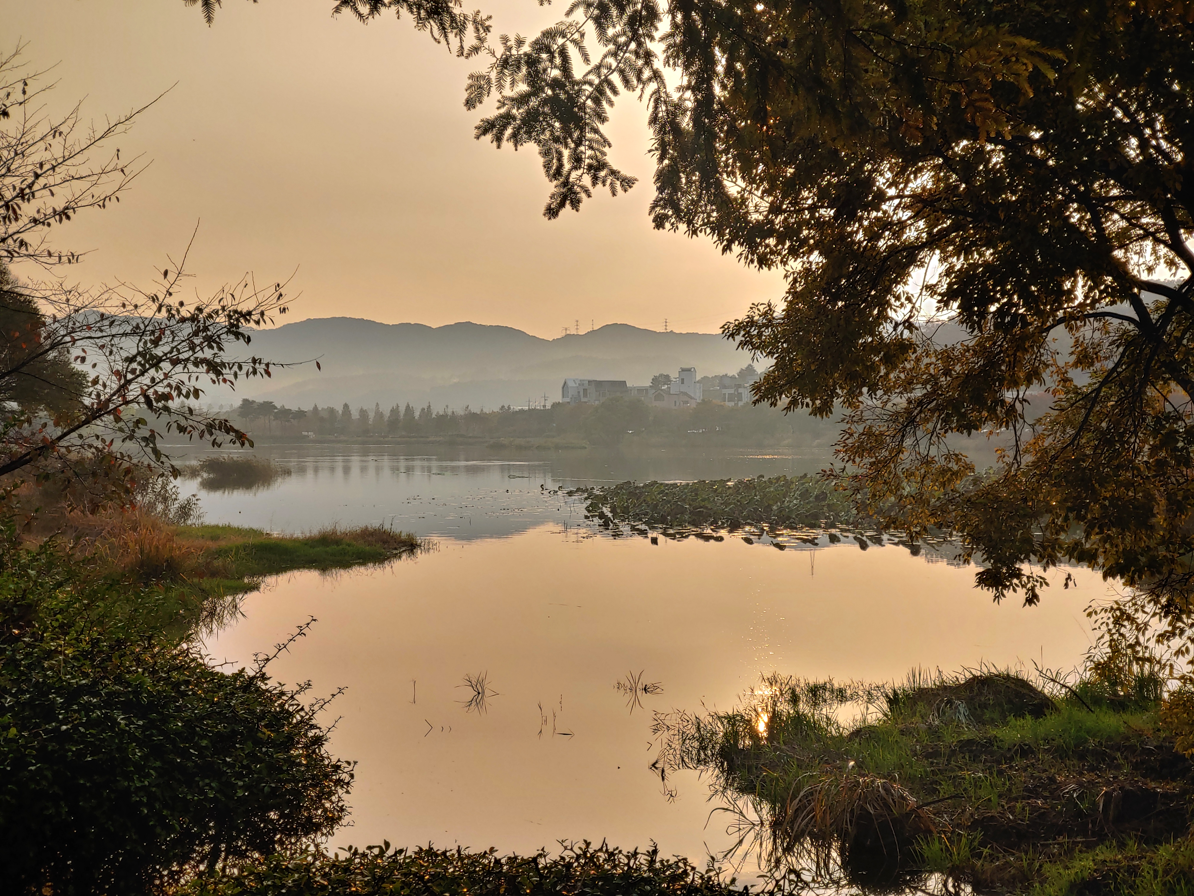 비가 그친 물가라 그런지 살짝 안개가 있는게, 노을 시간대가 아닌 새벽 시간대 인 거 같더라구요.