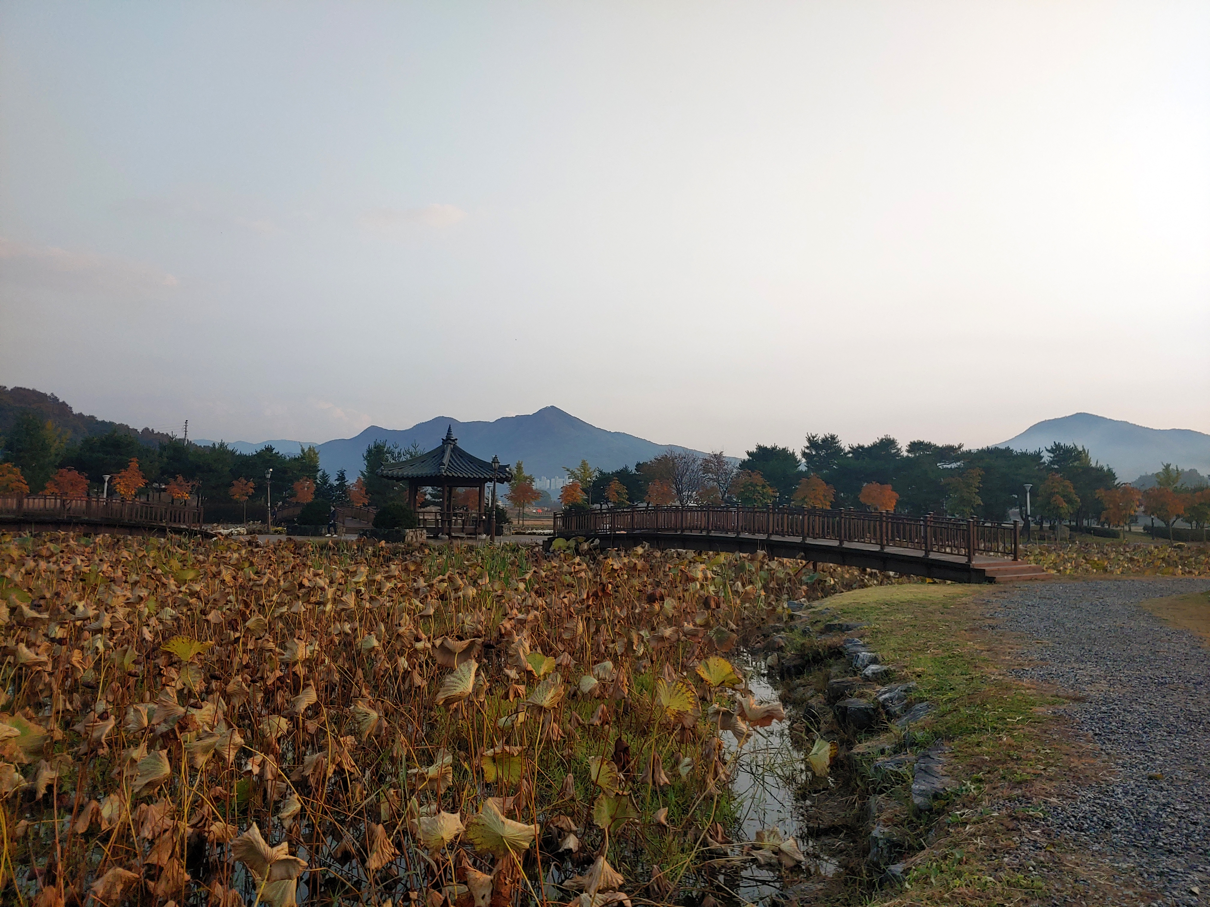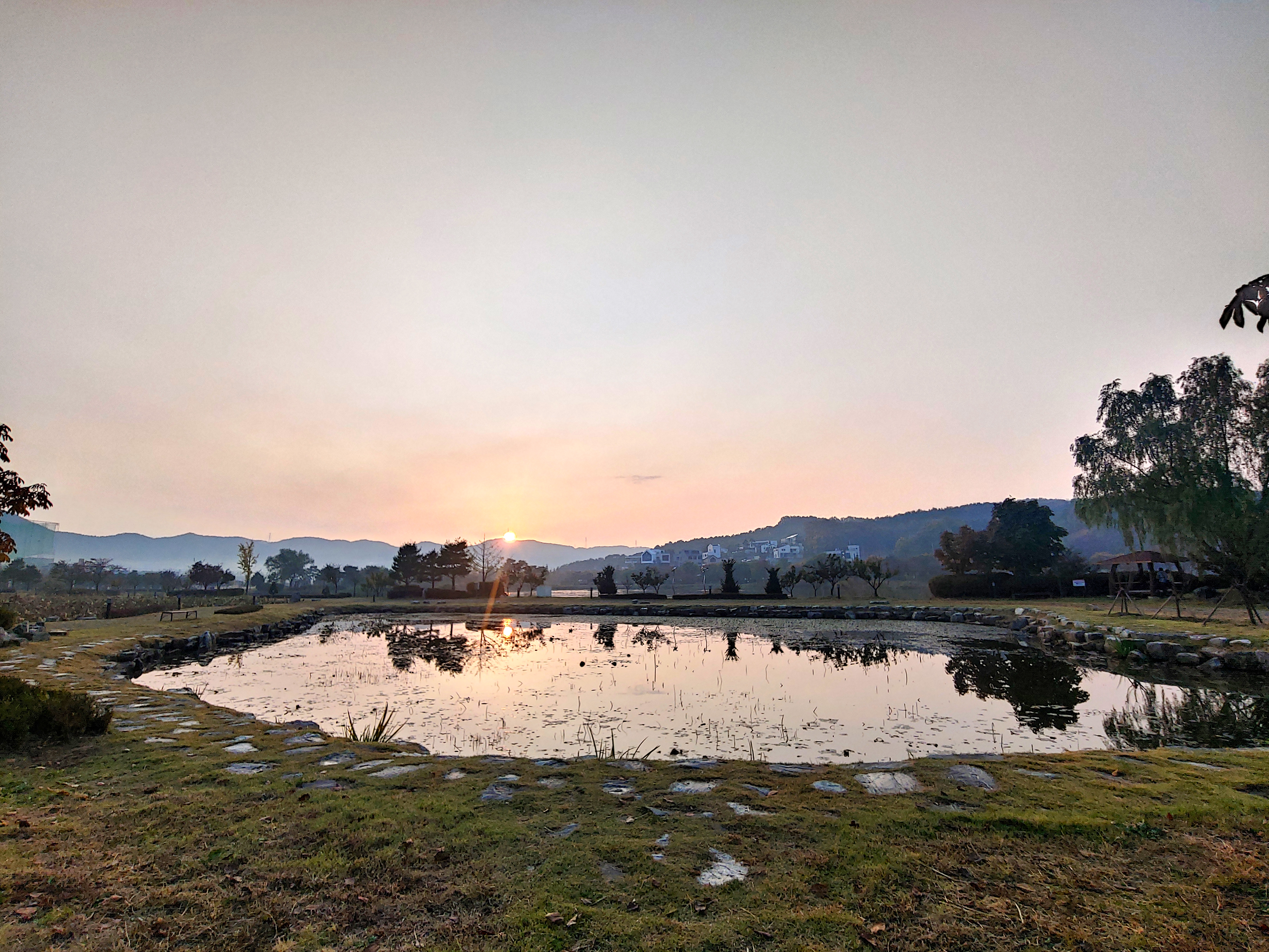 딱 노을이 질 때 와서, 자연이 주는 색감이 참 예쁜 호수공원이었습니다.