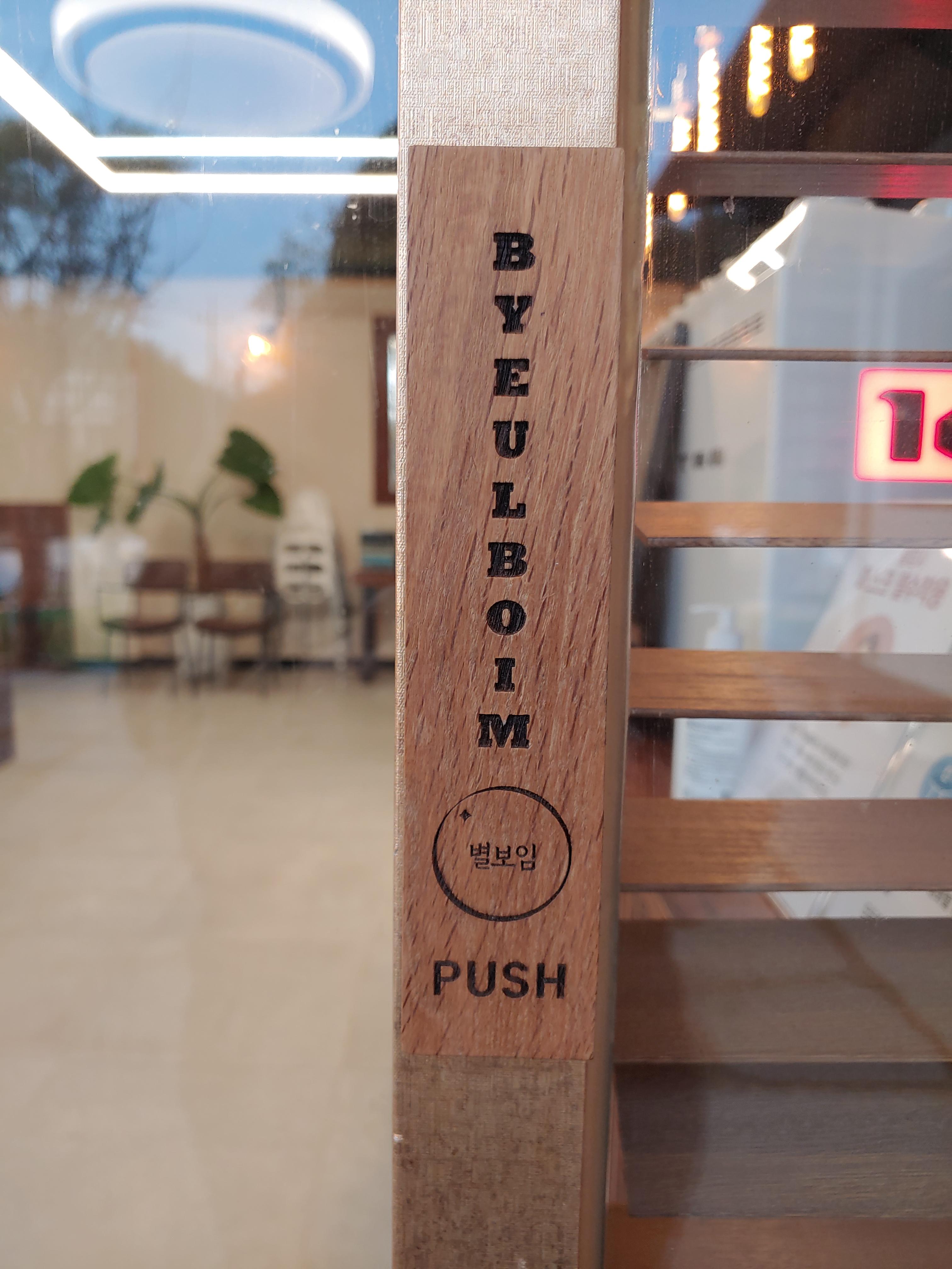 자동문 누르는 버튼이 나무로 되어 있어요. 다른 곳보다 촉감적으로 다른 느낌이라 신기하기도 했어요.