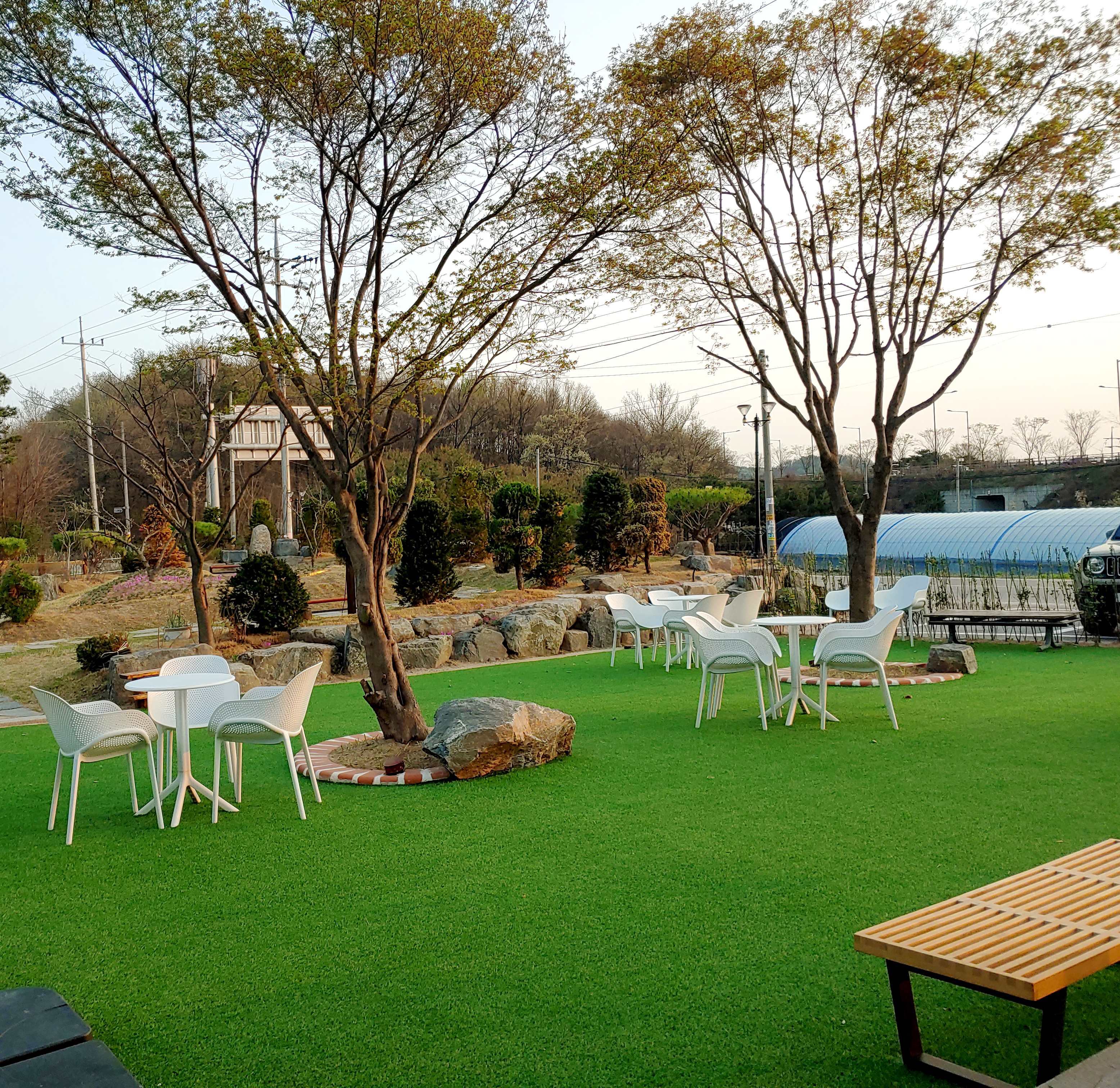 마당이 꽤 넓고 공원처럼 조성되어 있어서 바람과 날씨만 딱 좋으면 사진을 촬영하거나 여유를 만끽하기 딱 좋은 풍경이랄까요?