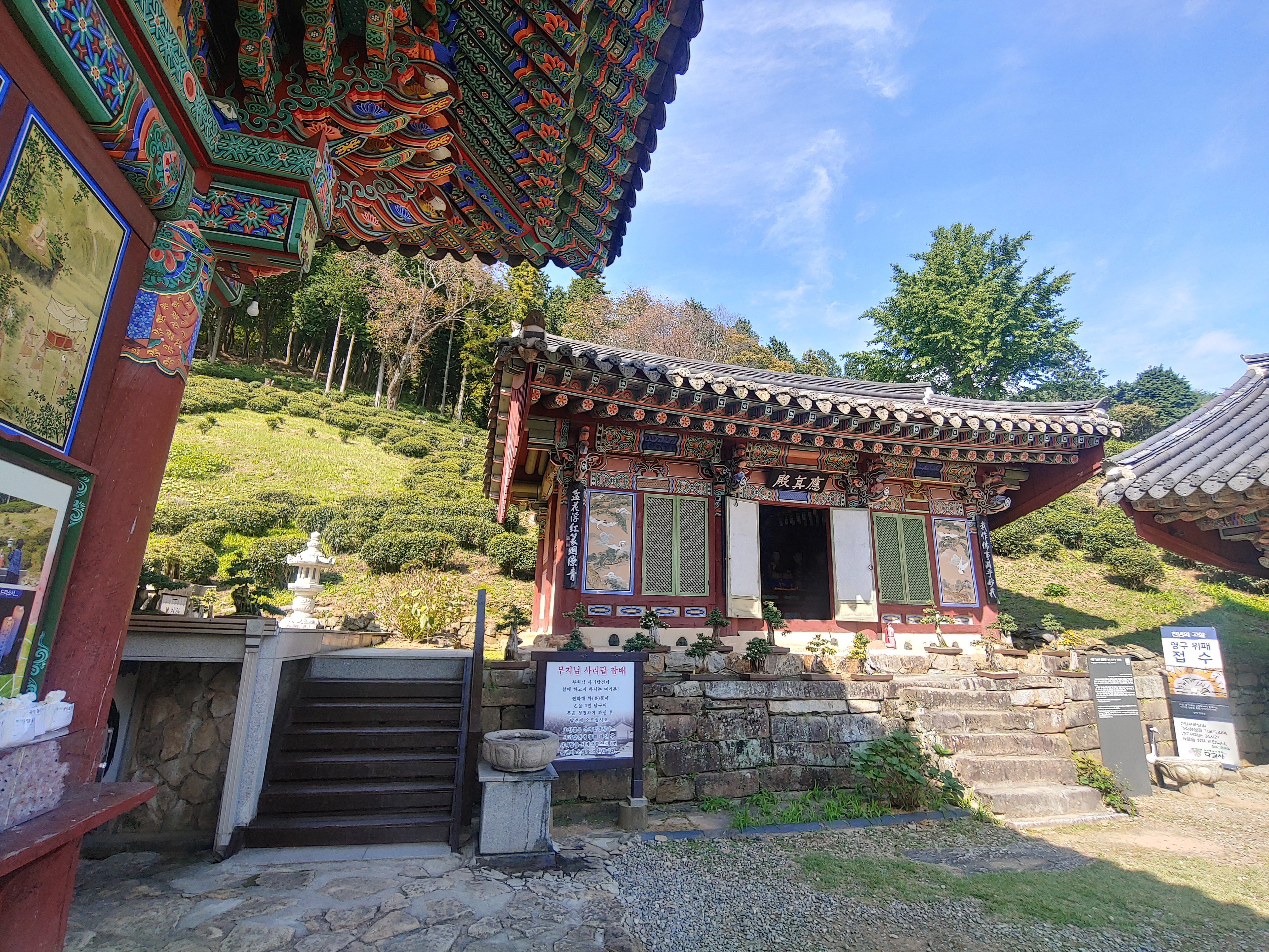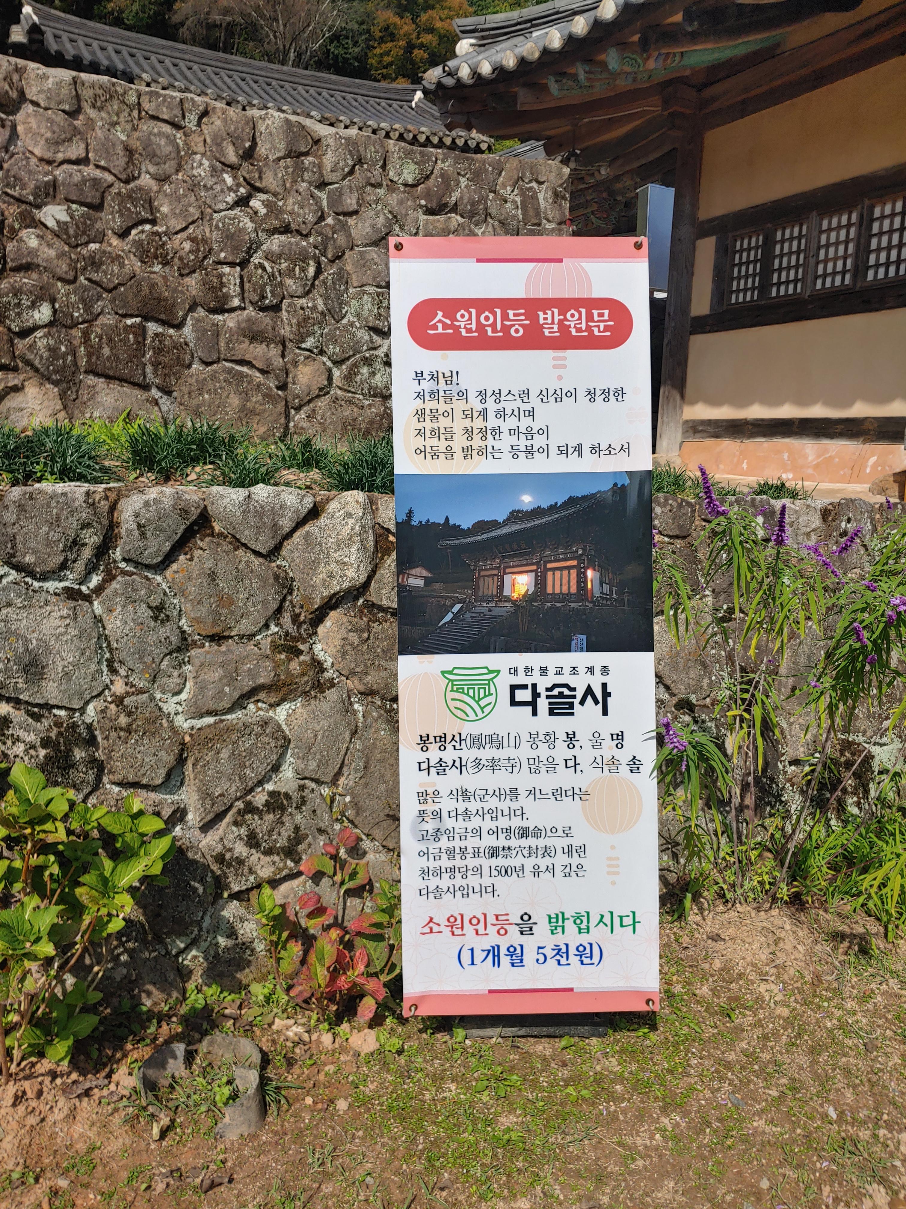 저희는 사실 정말 유명한 보리암을 가보고 싶었었는데요. 함께 여행을 한 동료가 다리 수술 날짜를 잡고 있던 터라 오래 걷거나 가파른 곳을 올라갈 수가 없어서 다솔사를 차선으로 택한 절이었답니다.