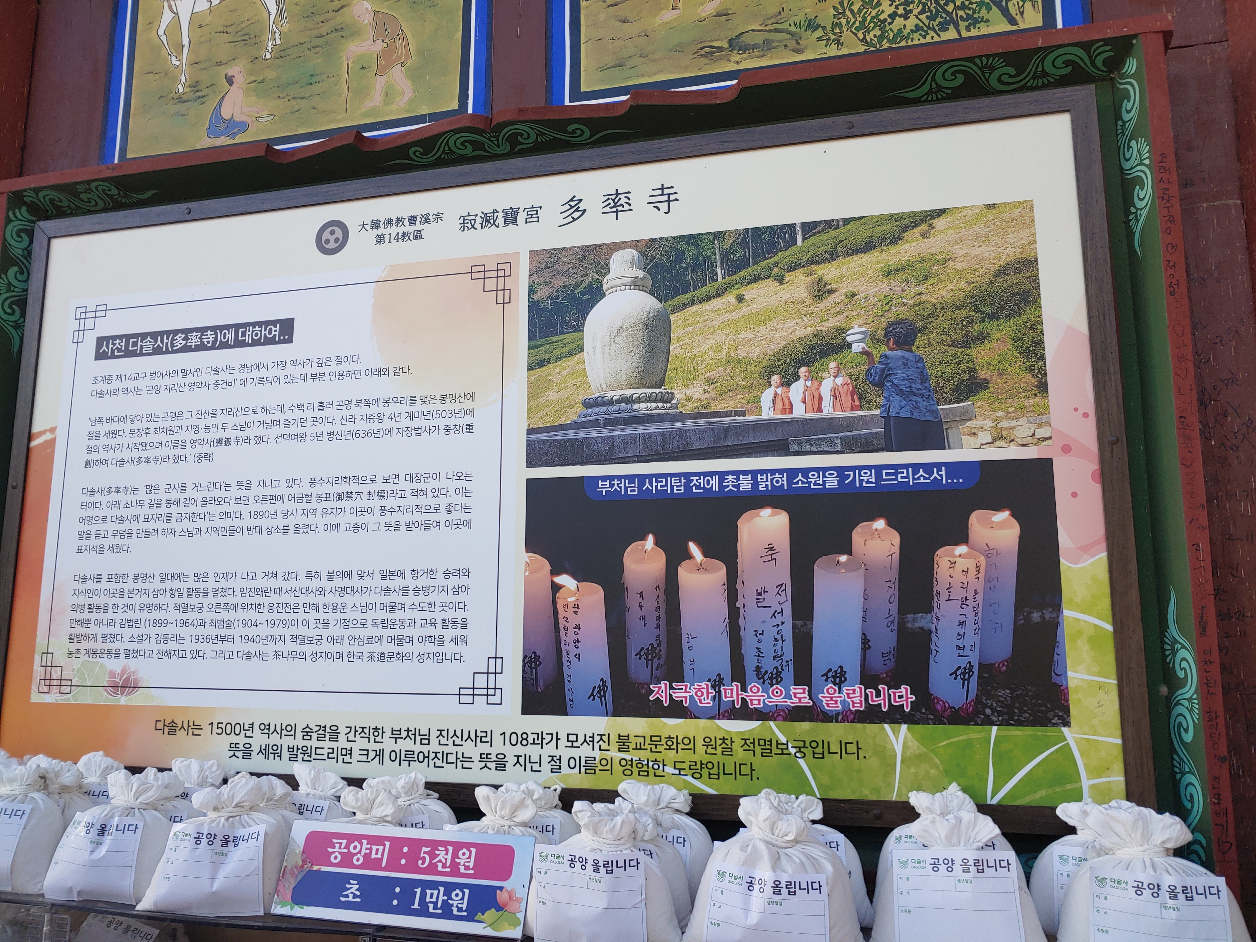 저희는 공양미를 올렸어요. 예전에 경주에서 살 때도 절에 공양미를 여러번 올리고 그러셨다고 하더라구요.
