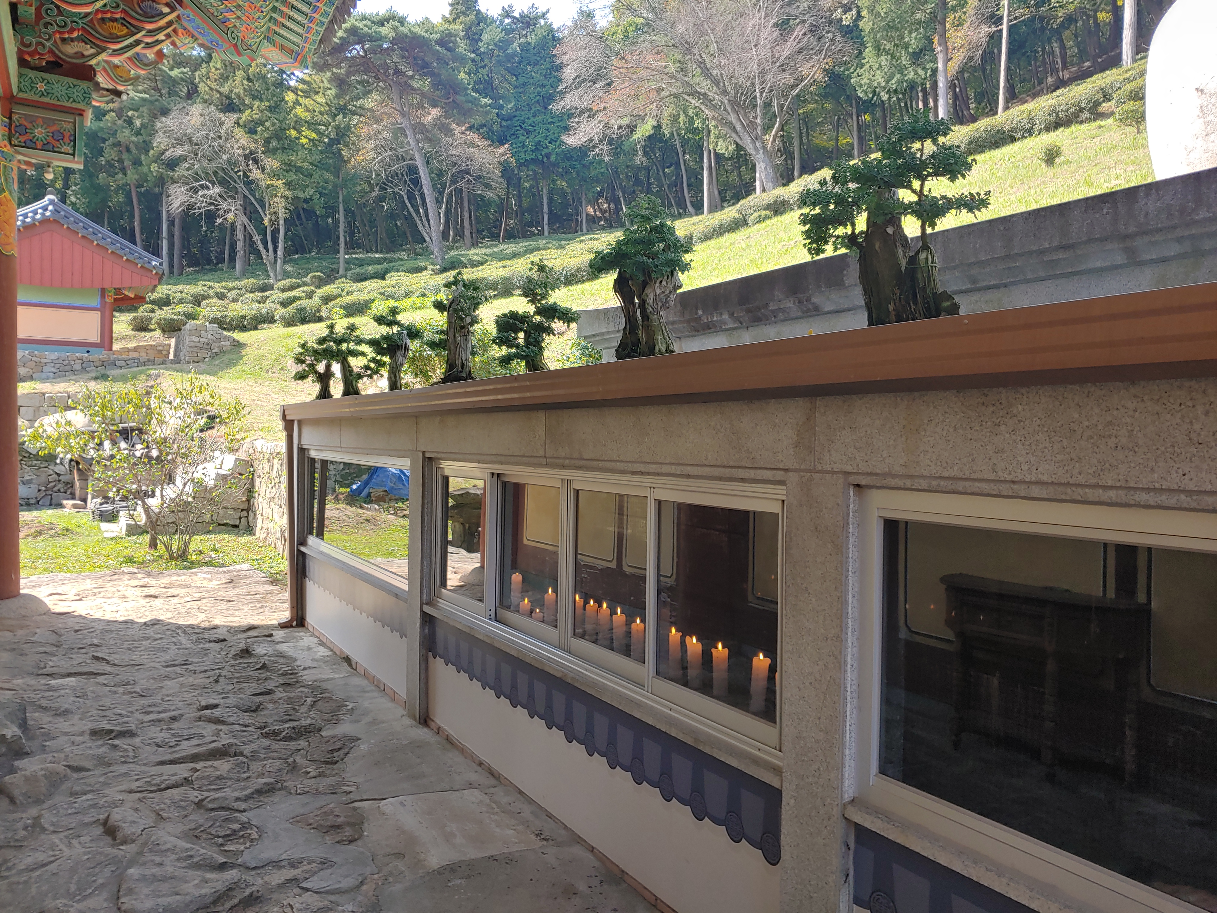 뭔가 푸릇푸릇해 보이기도 하는데, 다솔사를 방문했던 날은 10월 말의 가을이었습니다. 아무래도 아랫쪽 지방이라 가을도 위보다 더 늦게 오는 것 같았어요.