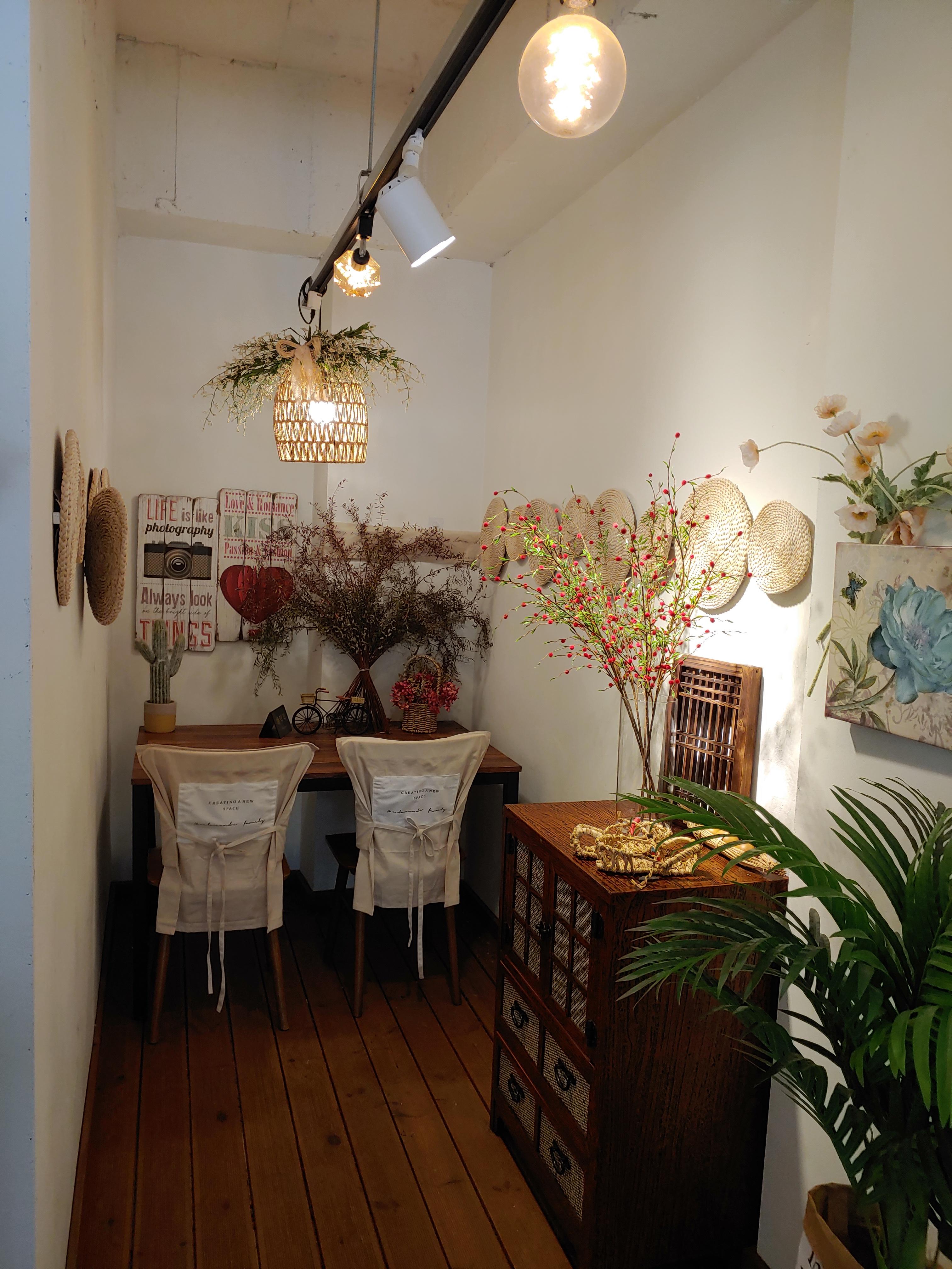 색감이 진하고 예쁜 생화 뿐만이 아니라 말린 꽃이나 잎들도 분위기에 걸맞게 굉장히 아름답게 꾸며놓은 공간이 있습니다.