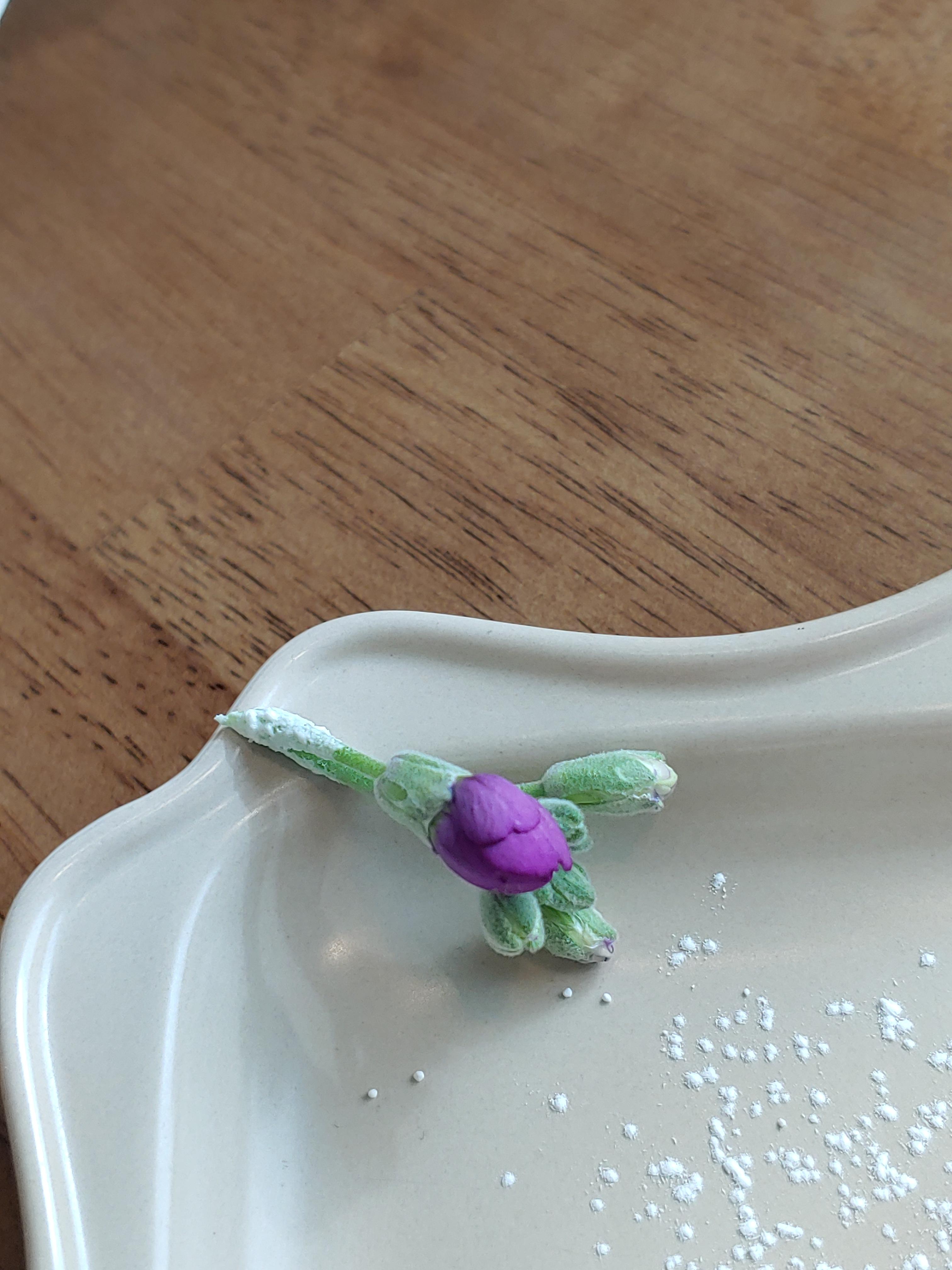 디저트를 다 먹고 남은 귀여운 꽃봉오리