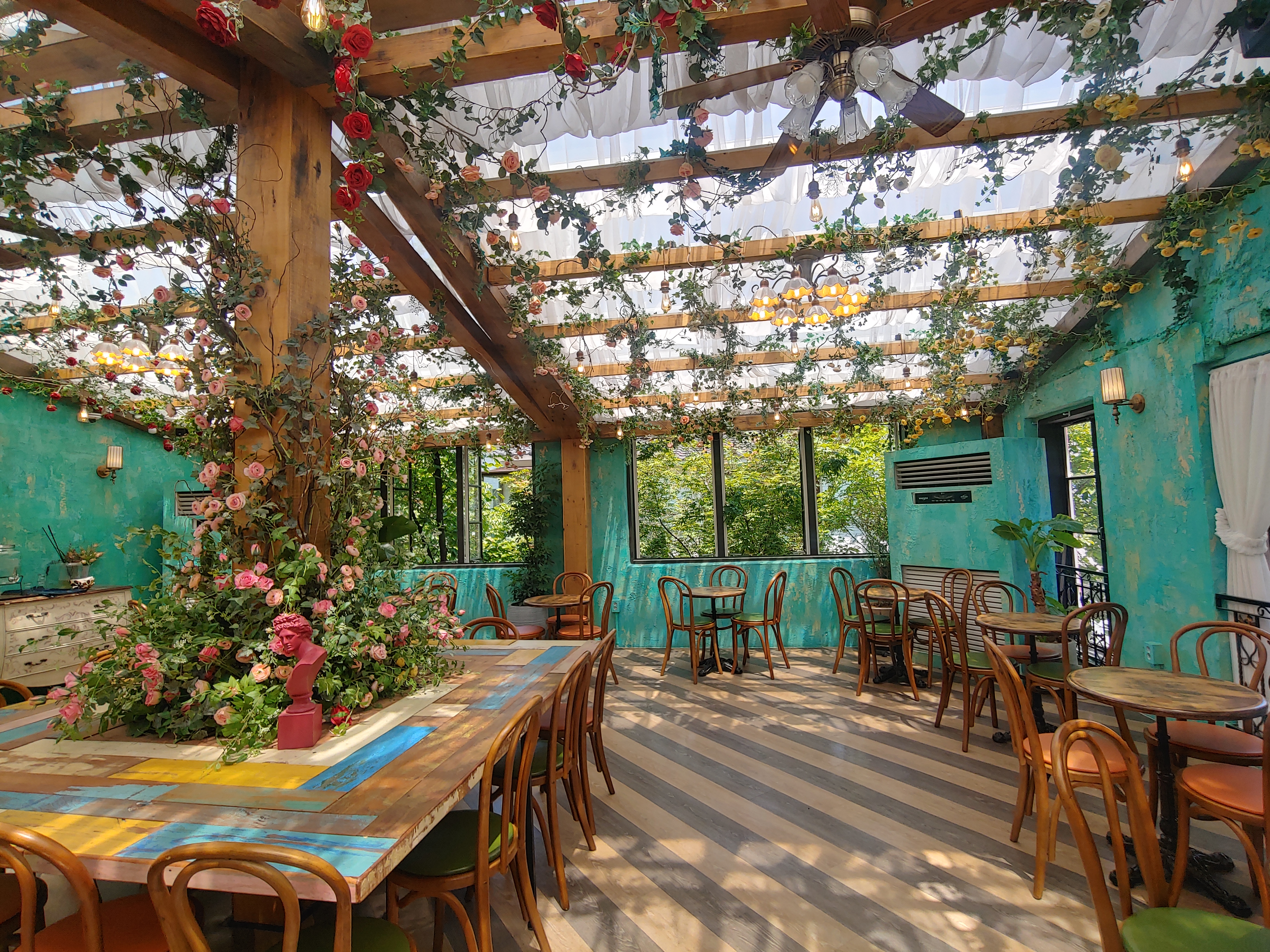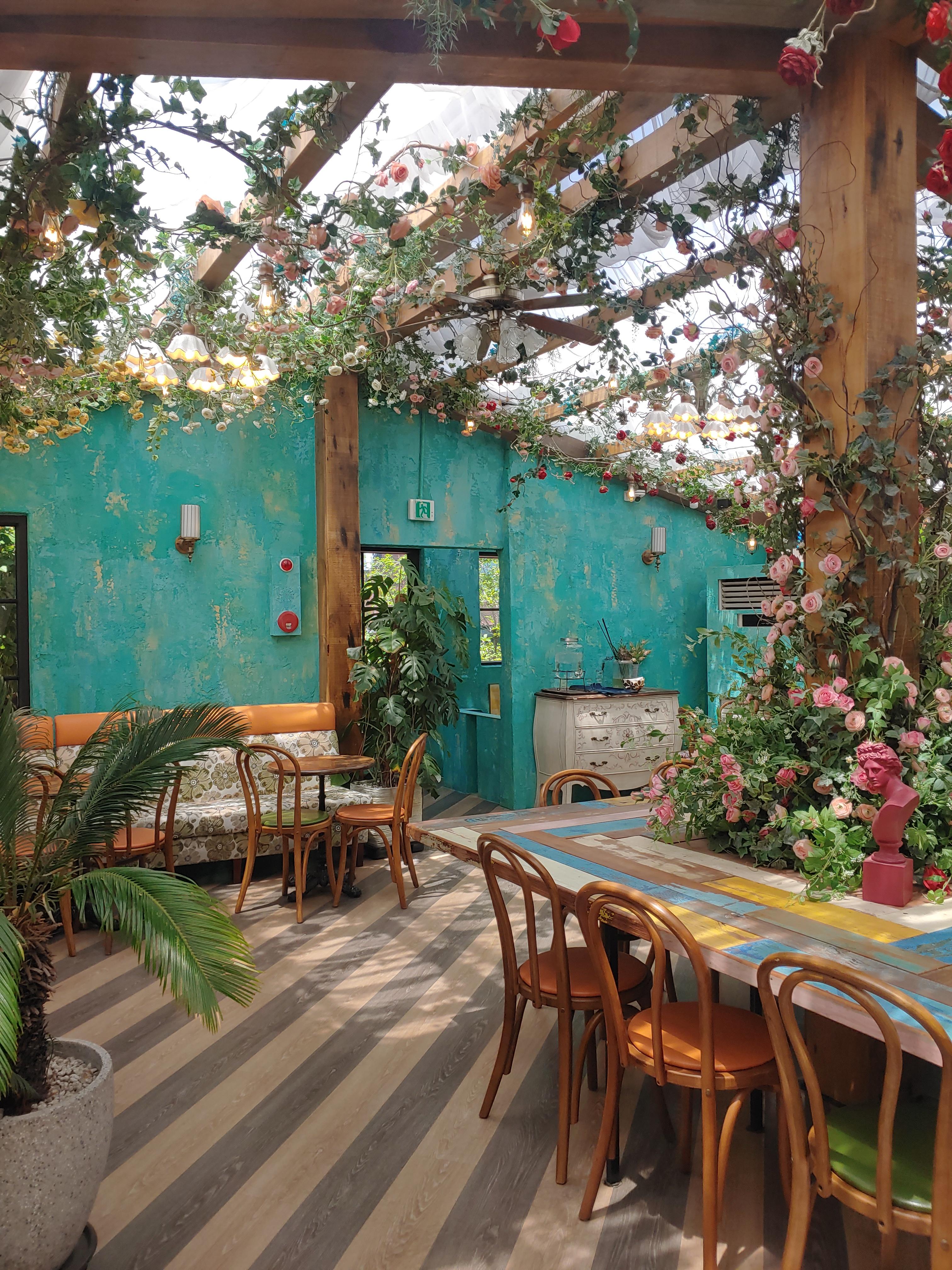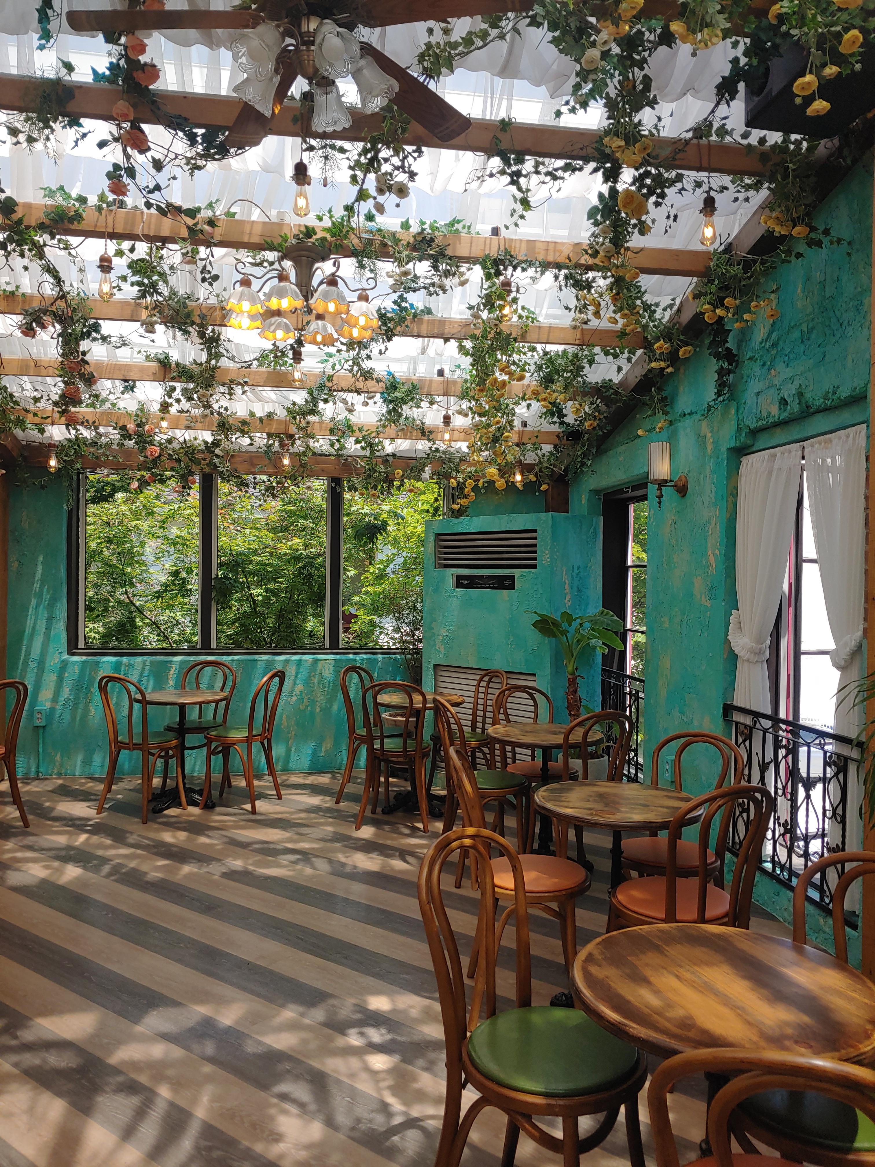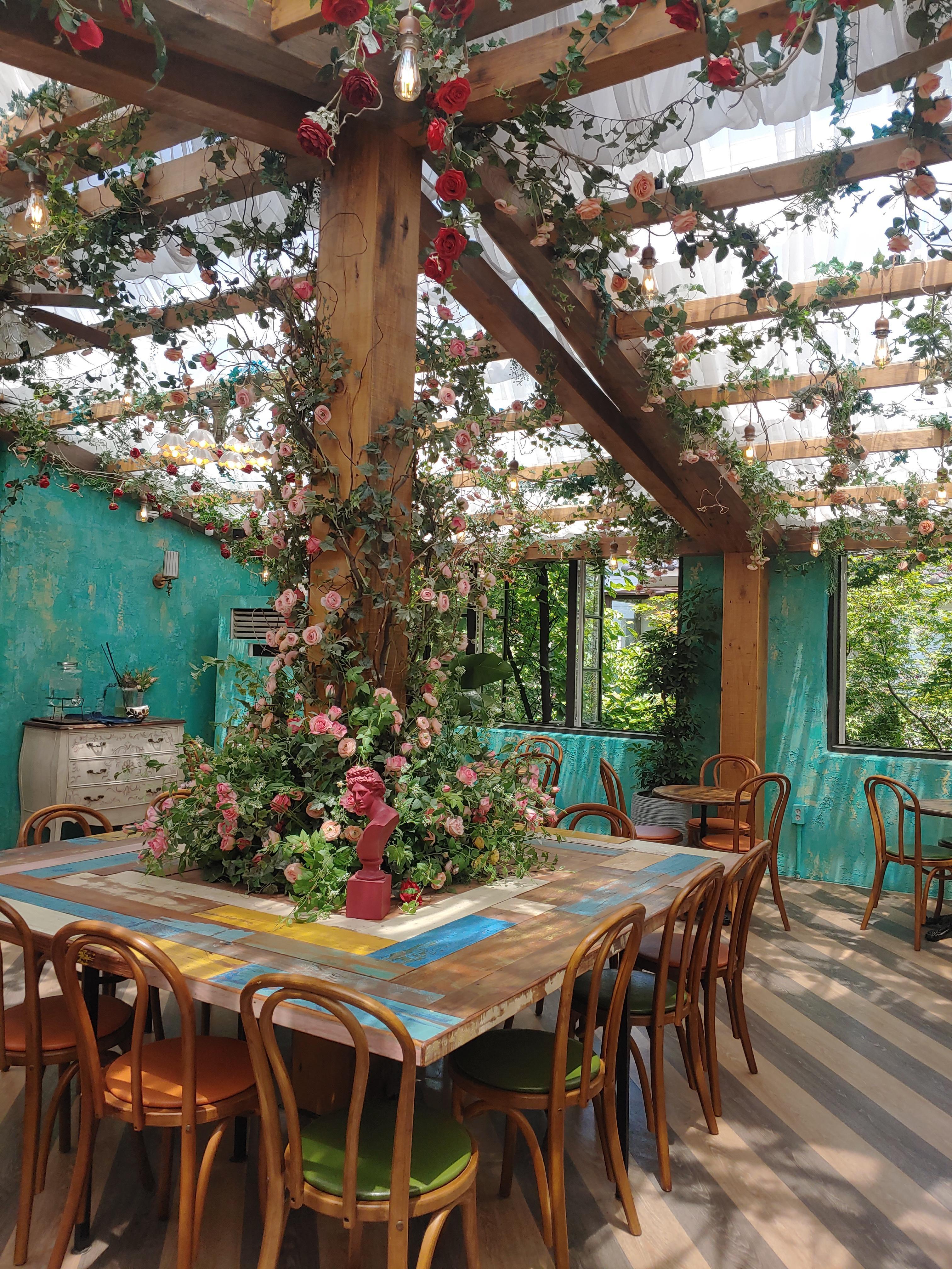 온실 같은 느낌이 들면서도 그냥 밖에 나와 있는 정원 같은 느낌도 들어요.