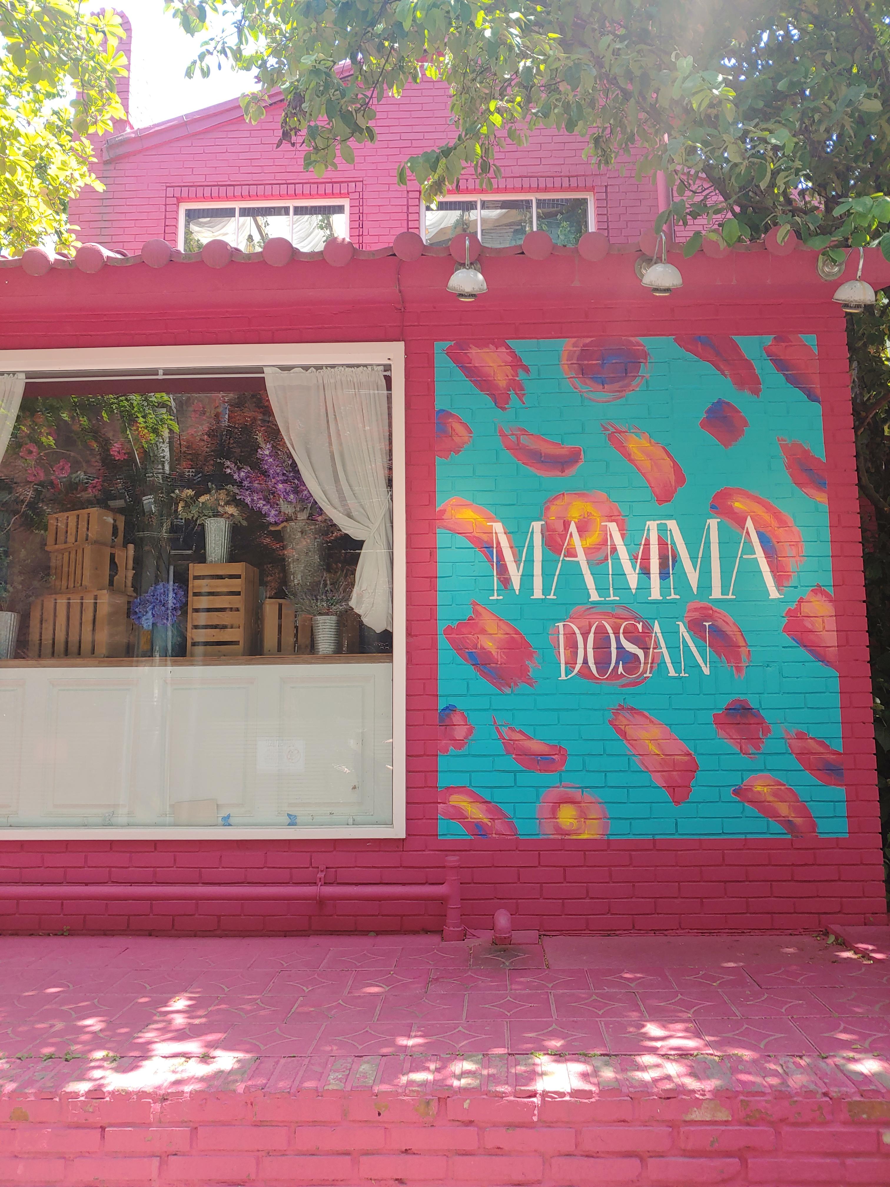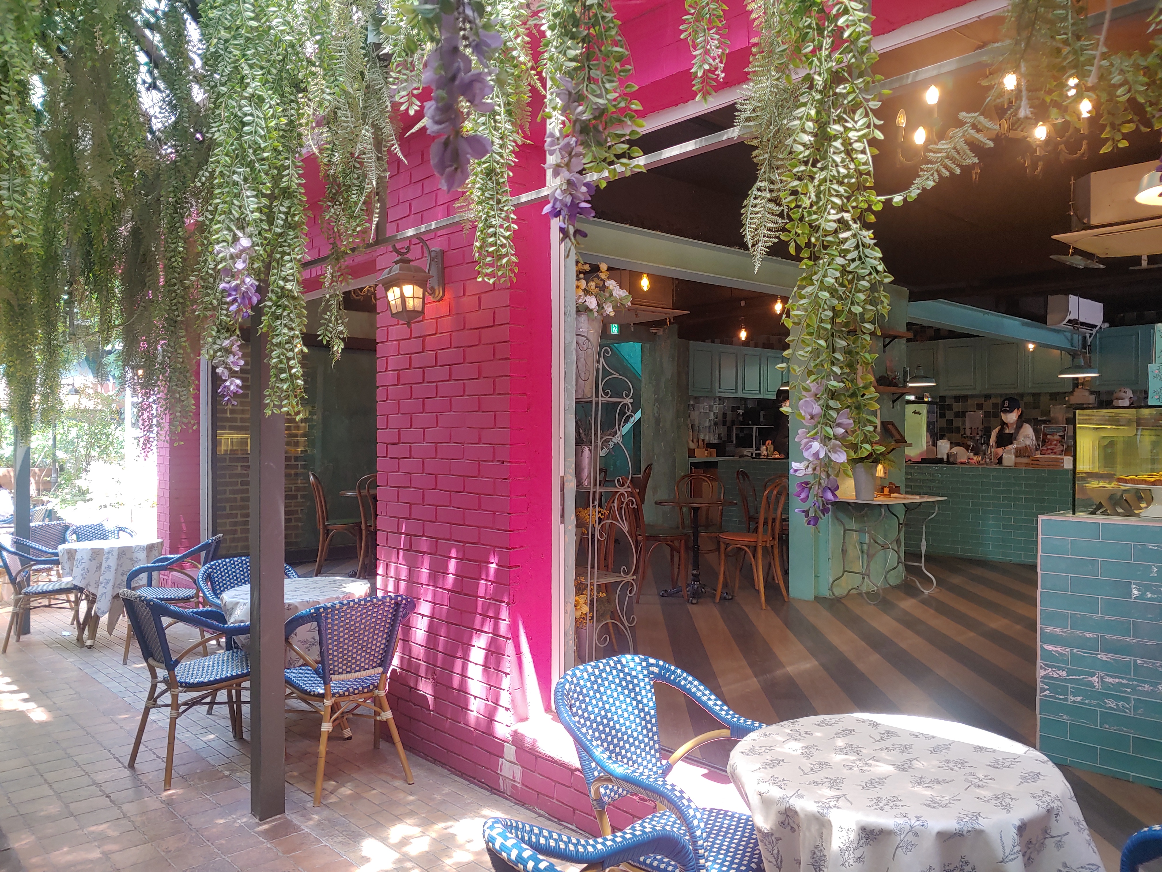핑크색 건물도 자칫 촌스러워 질 수도 있는데, 쨍한 이 핑크색과 잘 어울리는 공간이 된 것도 좋았습니다.