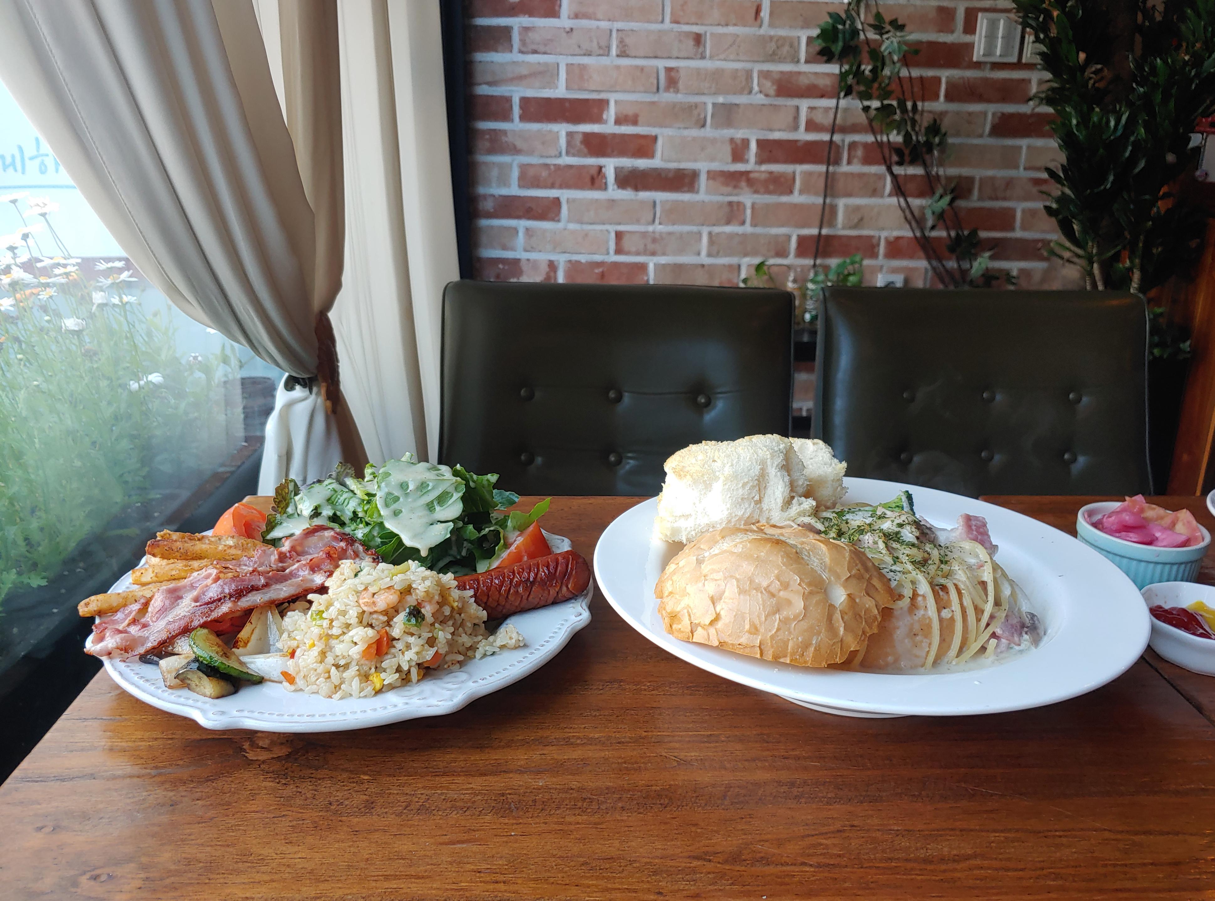 저희는 '알자스 브런치 플레이트_새우필라피' 와 '빠네 크림 파스타' 를 선택했습니다~