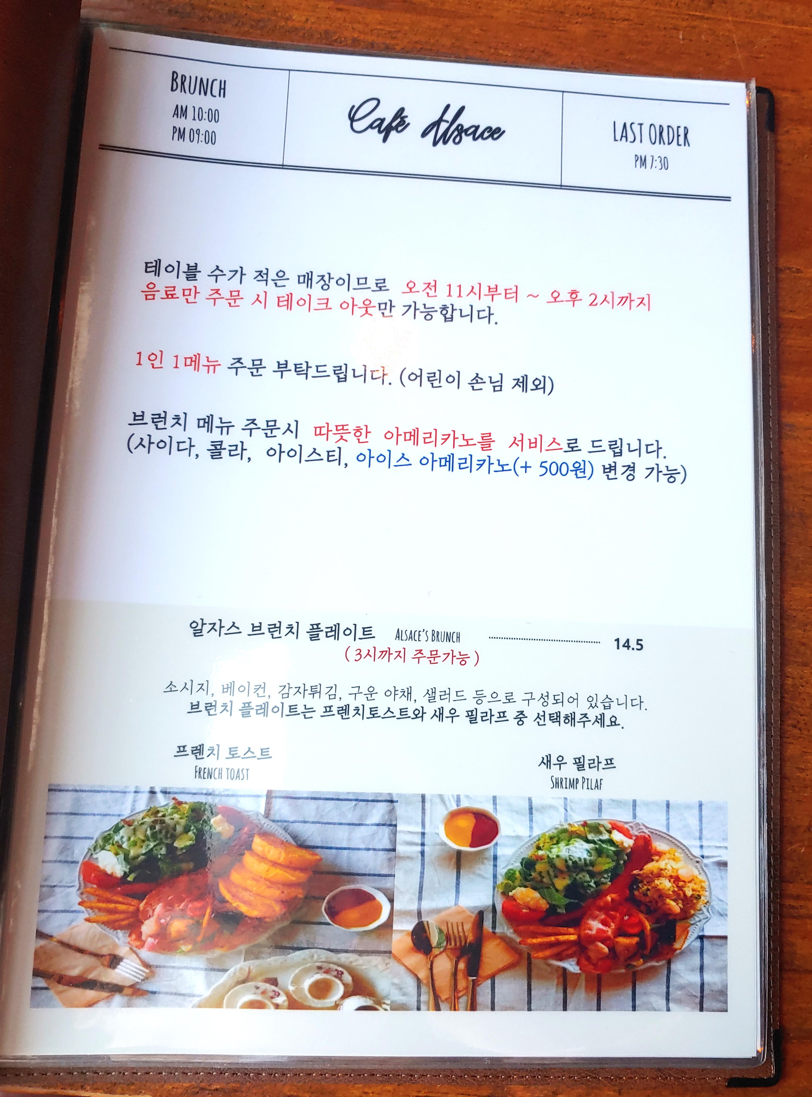 저희가 점심 식사 중에 2시가 가까이 되거나 넘기도 했었는데, 그때도 전부 테이크 아웃으로만 음료가 가능한 것 같았습니다. 아무래도 3시까지 브런치 타임이라 식사 하시는 분들을 위해 음료 주문 시 착석은 안되는 거 같더라고요.