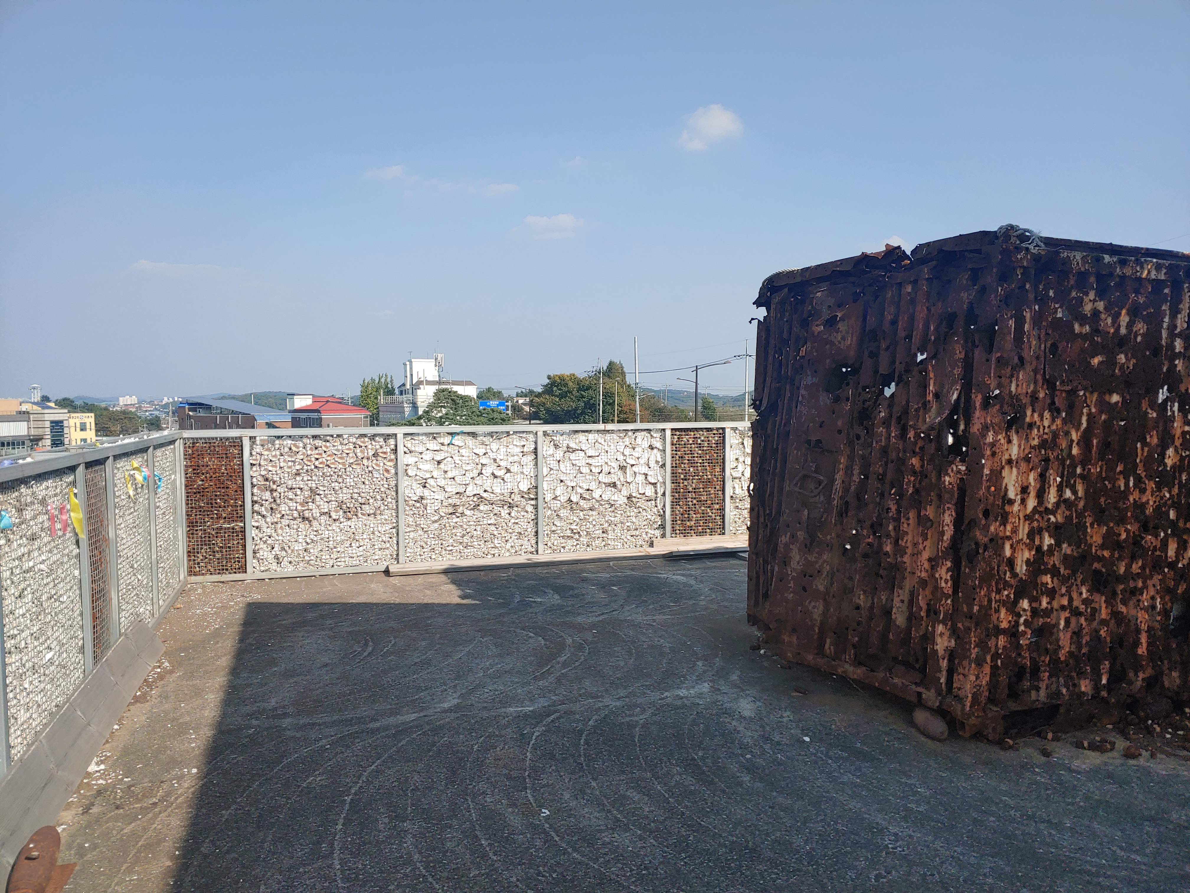 옥상인 2층엔 주로 표적으로 쓰였던 컨테이너 등등이 있는데, 형체를 잘 알아 볼 수 없이 훼손된 모습이었습니다.