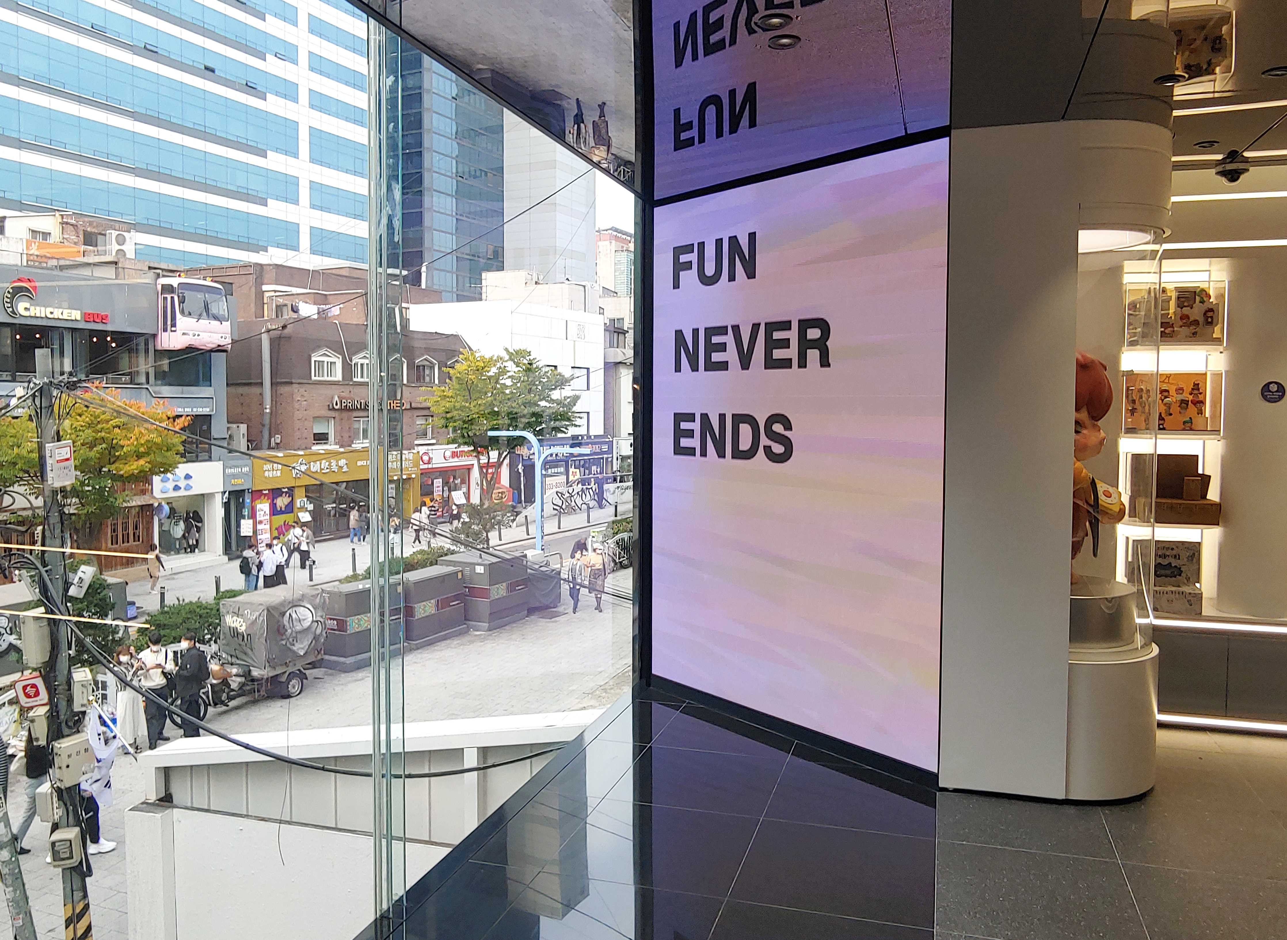 팝마트 플래그쉽 스토어는 홍대입구역 9번 출구로 나와 그냥 직진하면 보입니다.