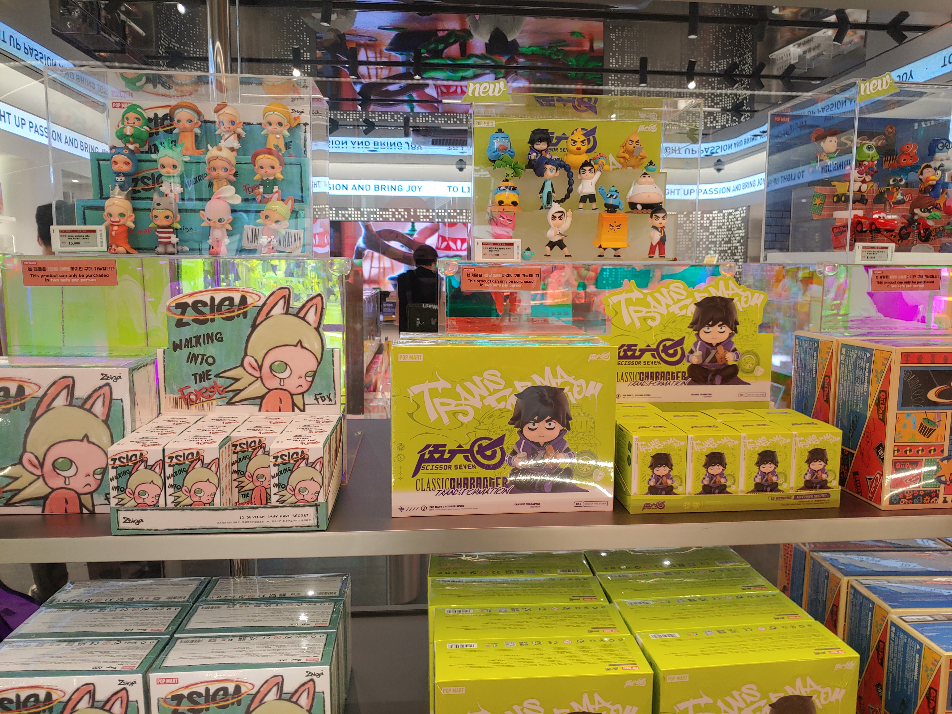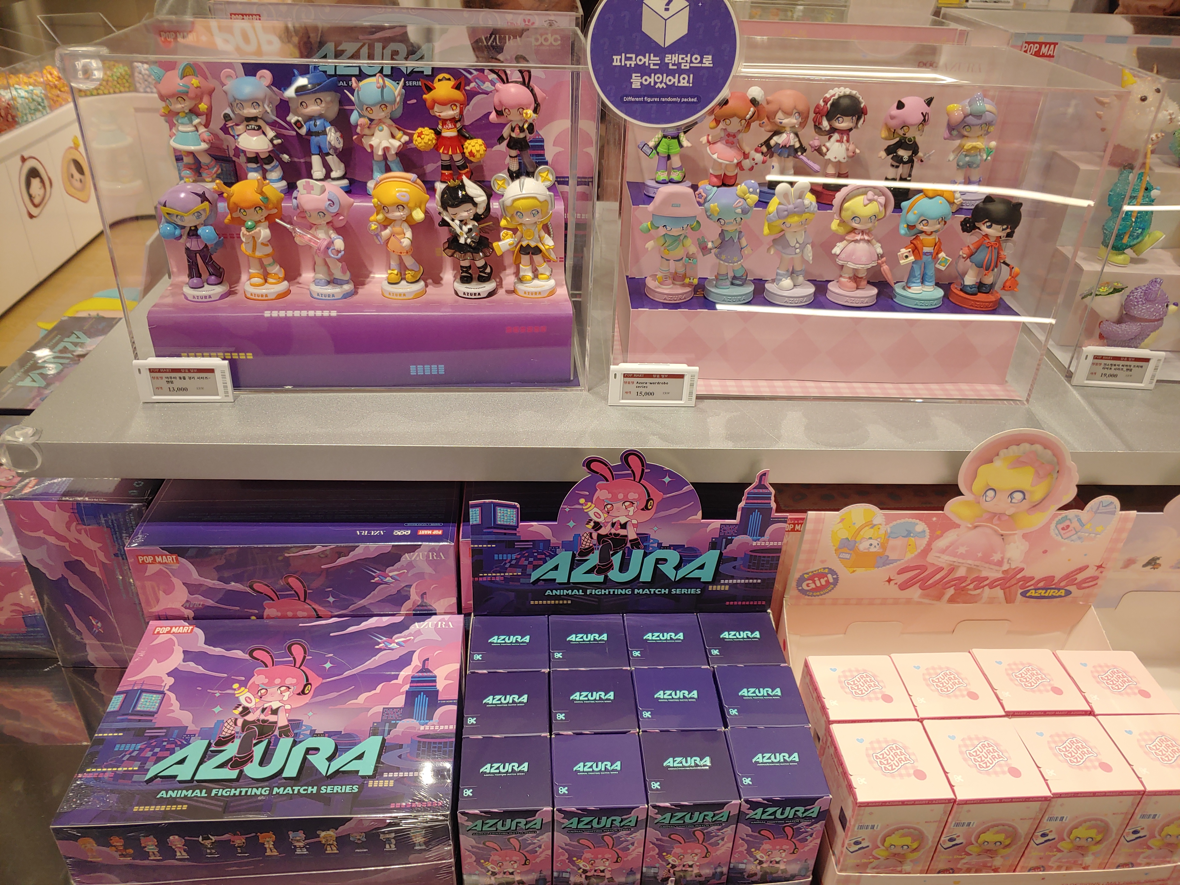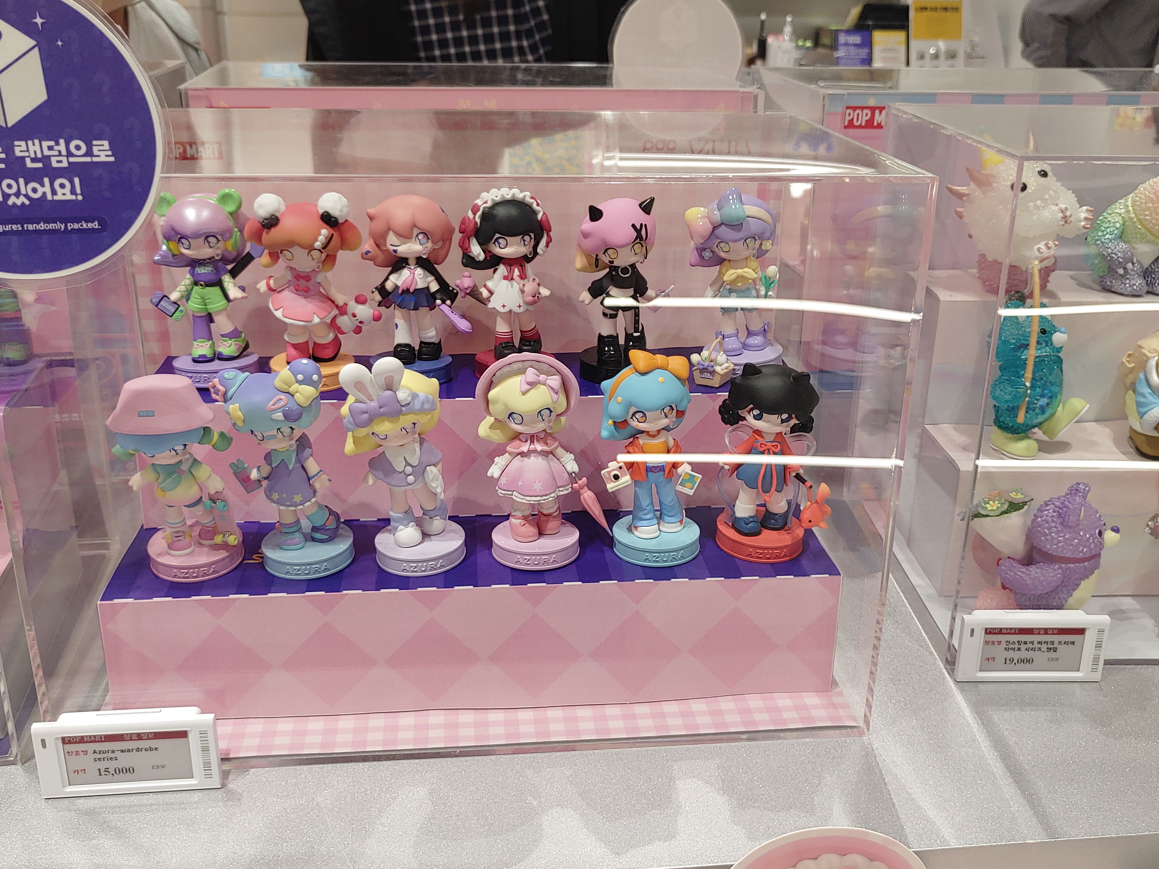 그런데 팝마트는 피규어들을 먼저 전시해 놓고, 보통 아래에 랜덤박스가 준비되어 있었습니다.