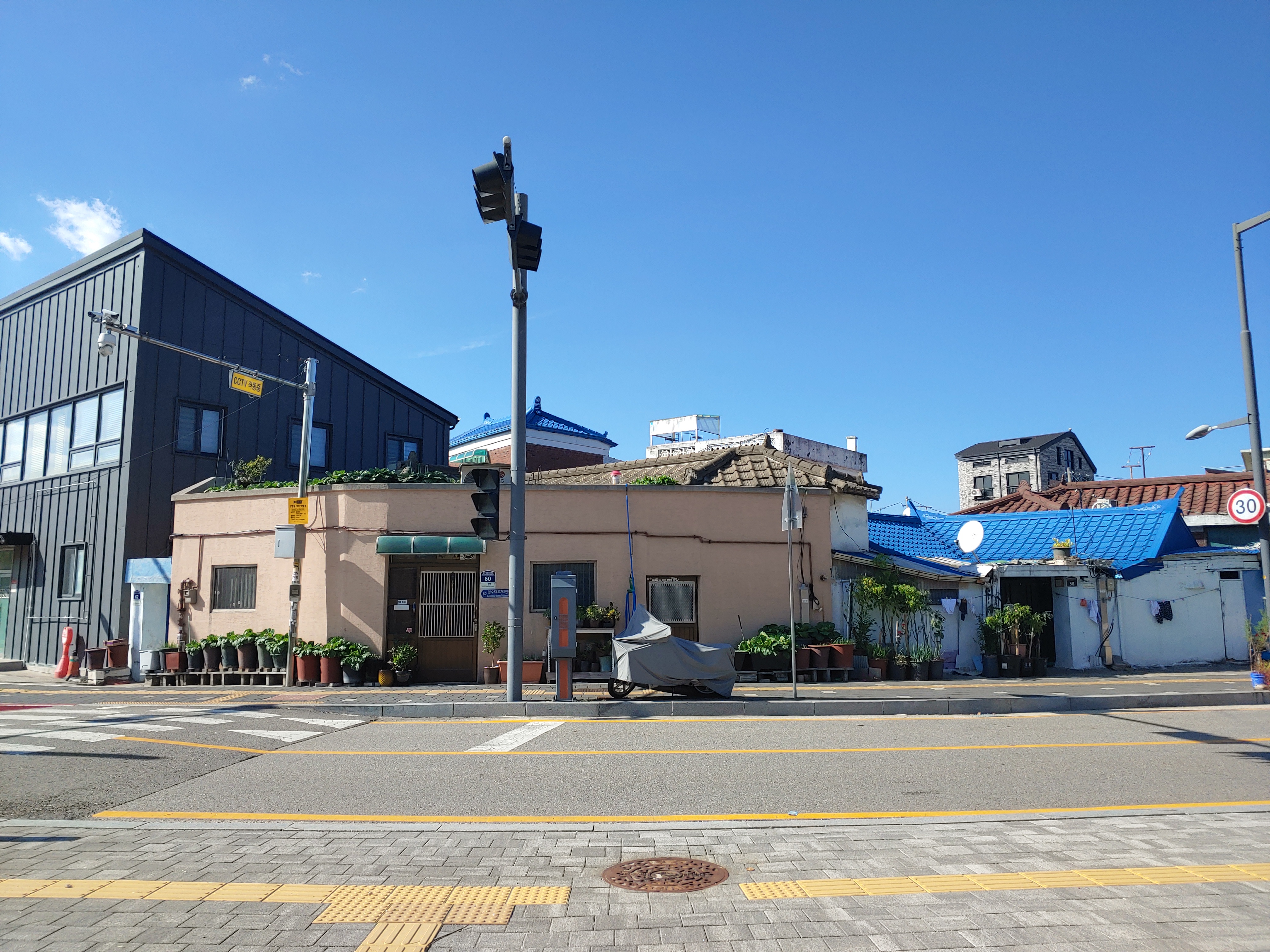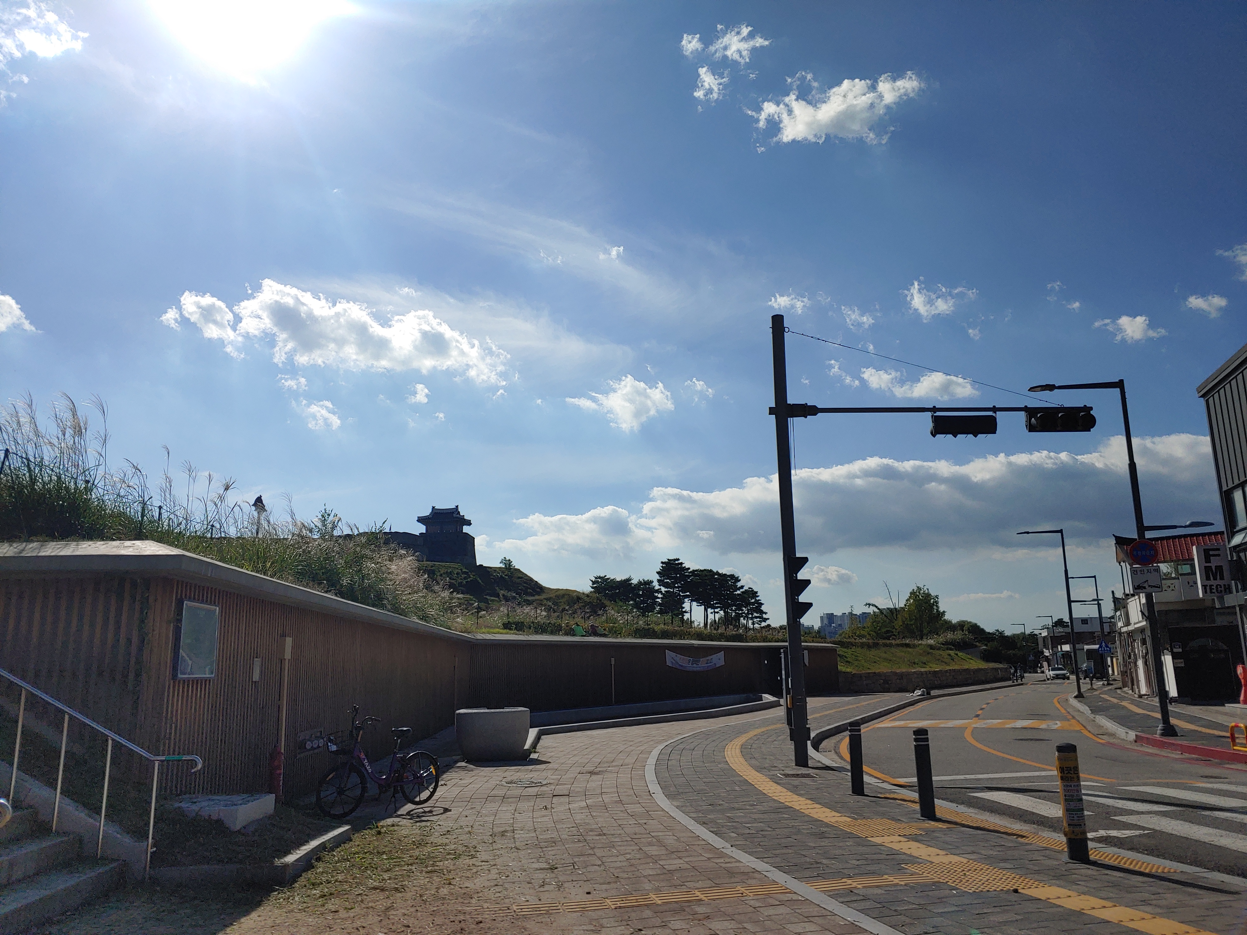 저희가 올라온 맞은 편에는 방화수류정과 굉장히 가까운데도, 상가 건물이 많이 없었습니다.
