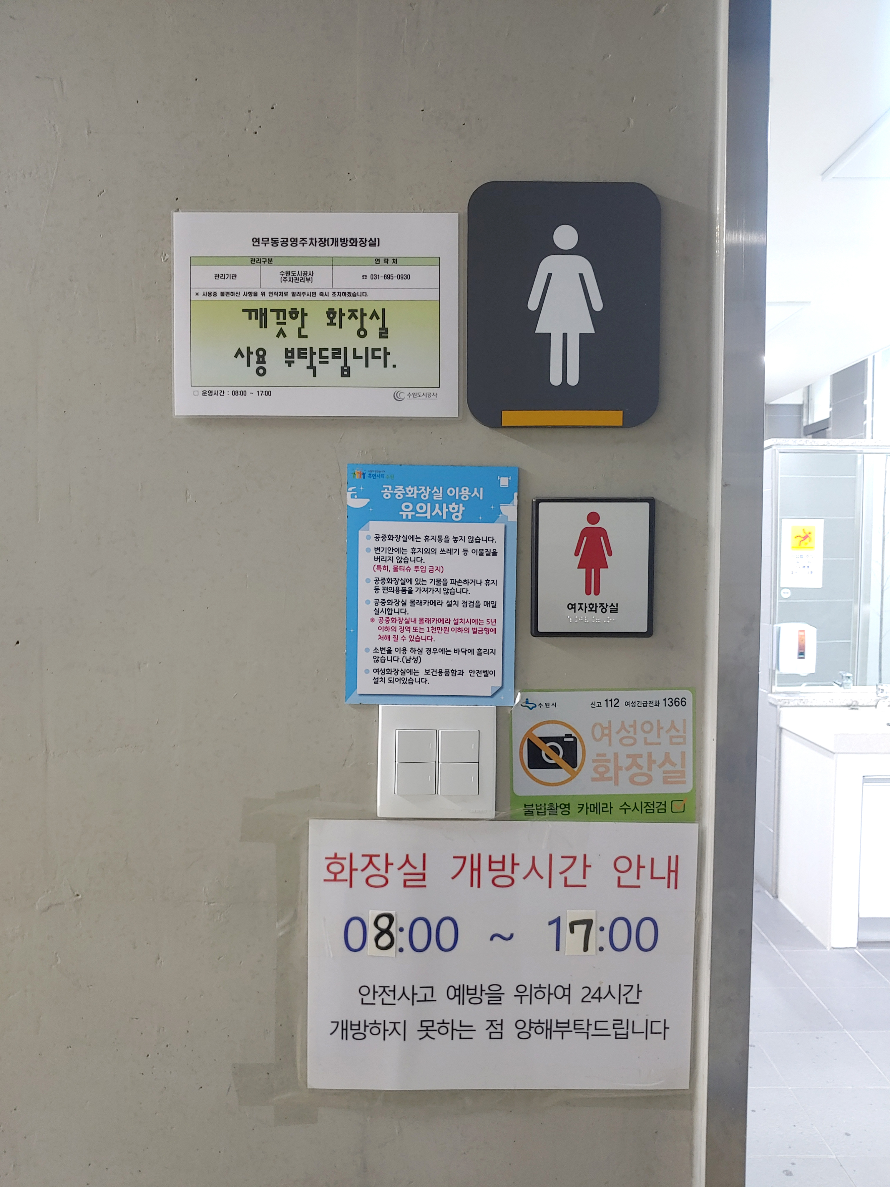 수원 화성 연무동 공영 주차장 화장실은 오후 5시까지만 개방한다고 하니, 참고해 주세요!