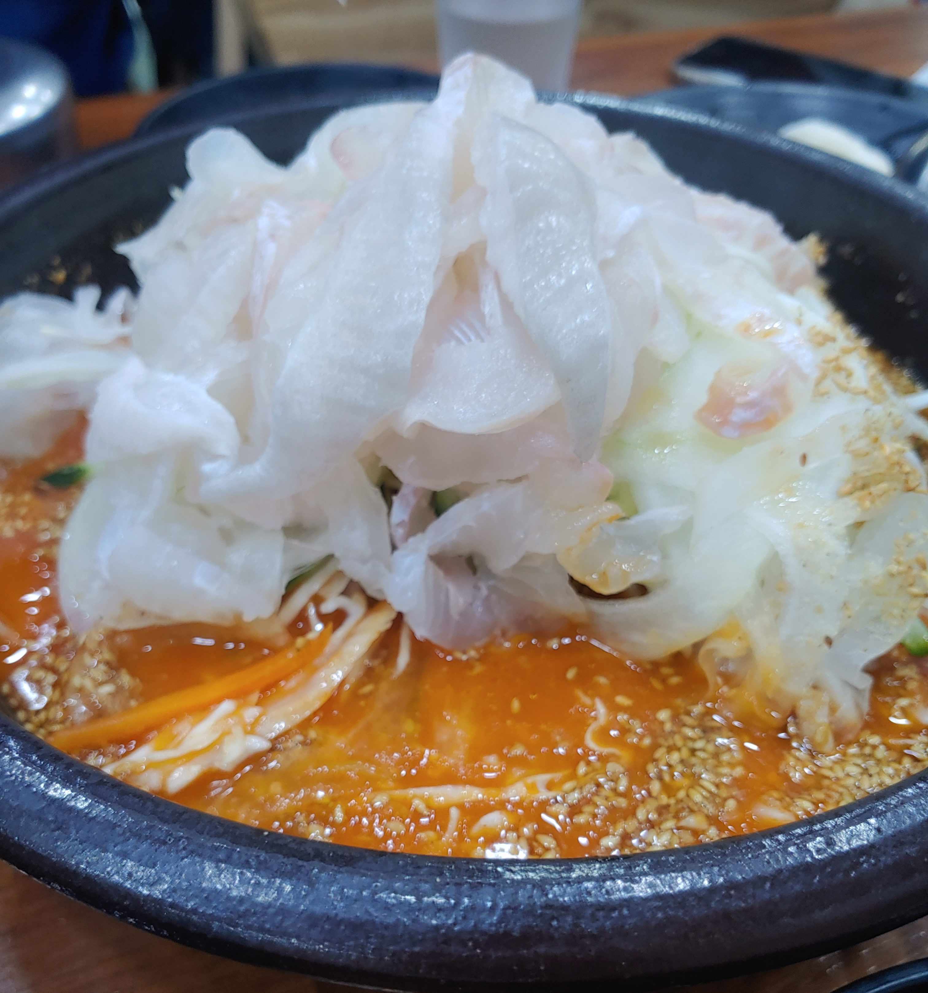 오히려 회를 좋아하는 분들에겐 호불호 없이 벗는 광어라 더욱 부담없고 맛있게 즐길 수 있는 물회입니다.