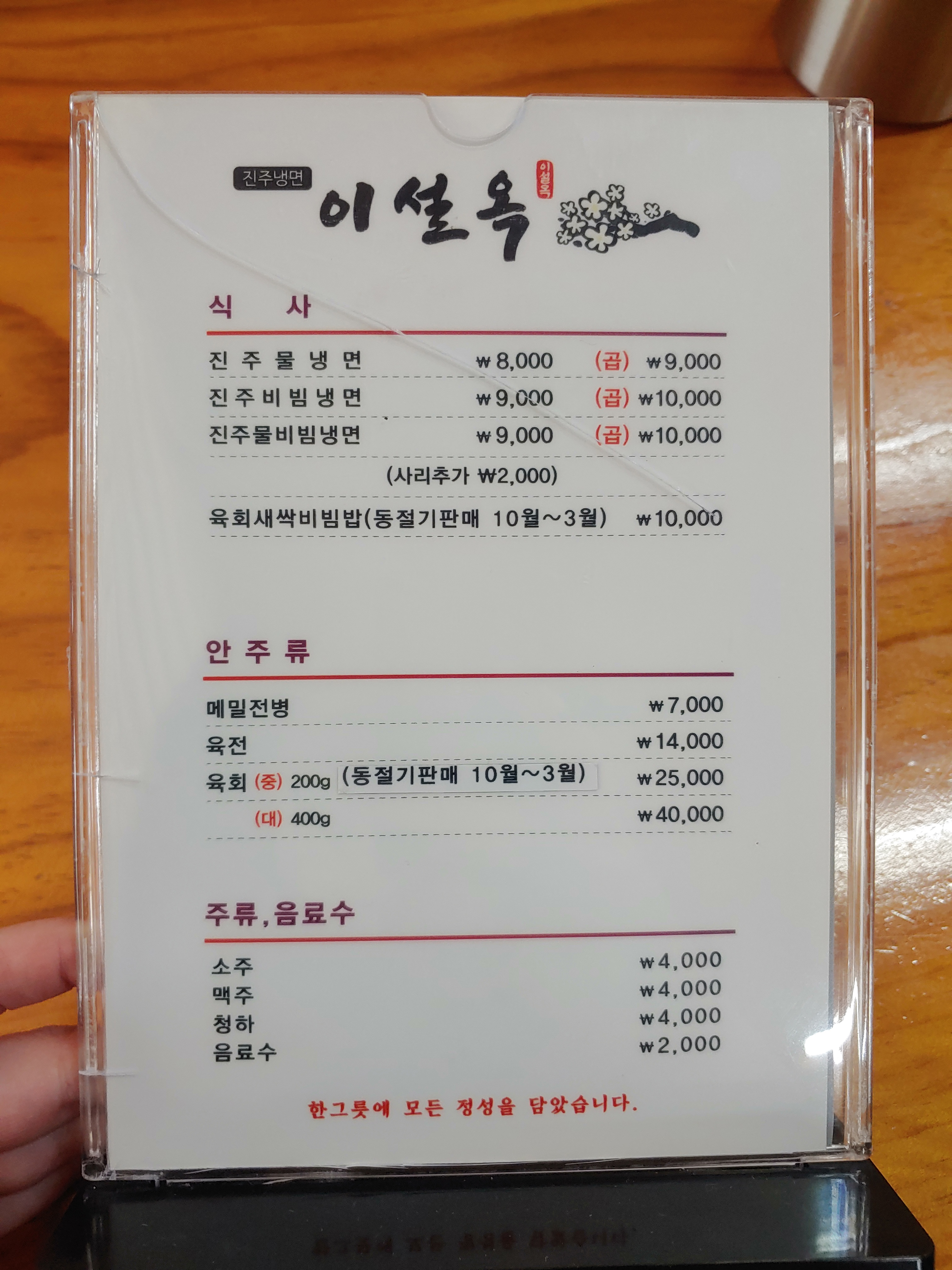 진주냉면 이설옥에는 메뉴가 많은 편이 아니긴 하지만 맛없는 음식이 없습니다.