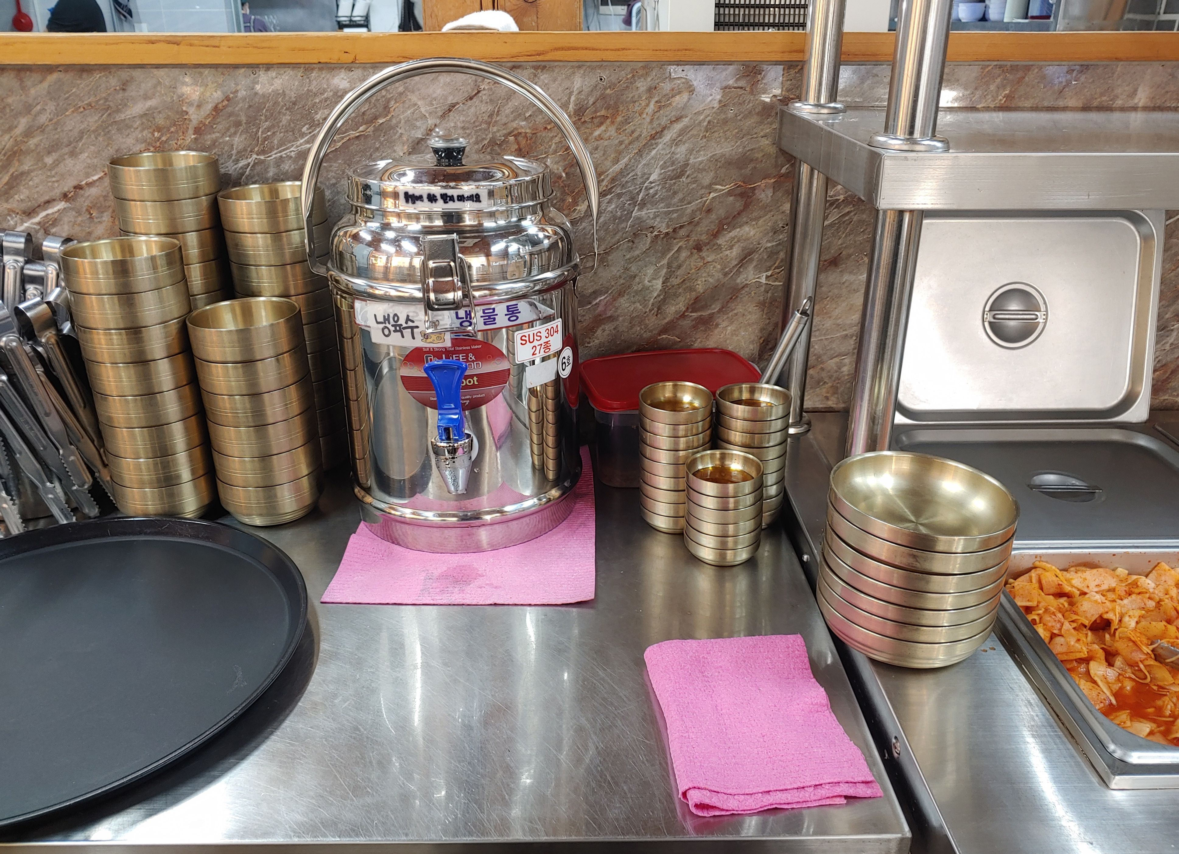 육수나 반찬은 셀프 코너에서 더 가져올 수 있습니다~