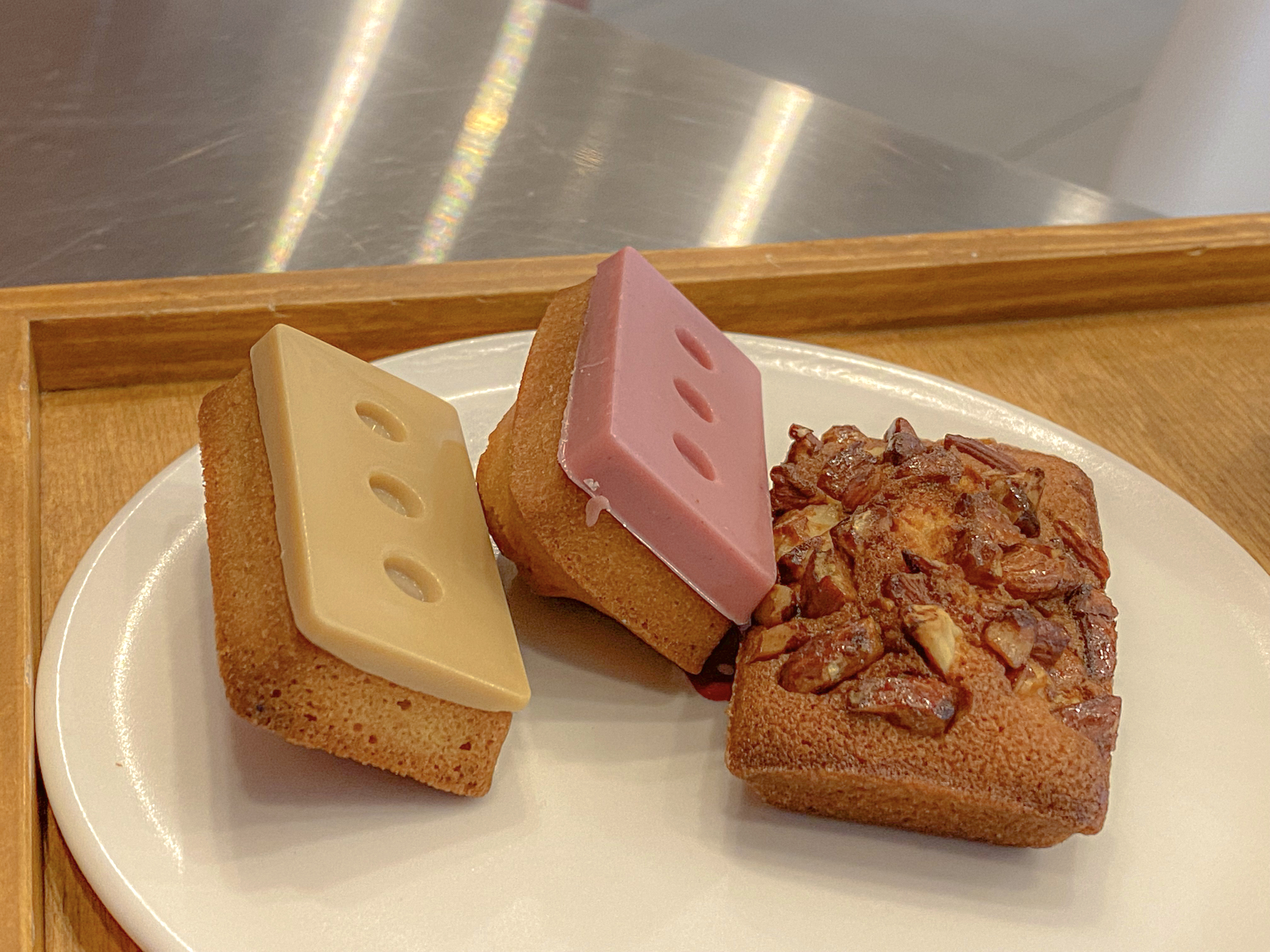 기본 브릭 휘낭시에를 먹고, 달콤브릭과 루비브릭은 뜯어서 접시에 올렸습니다.