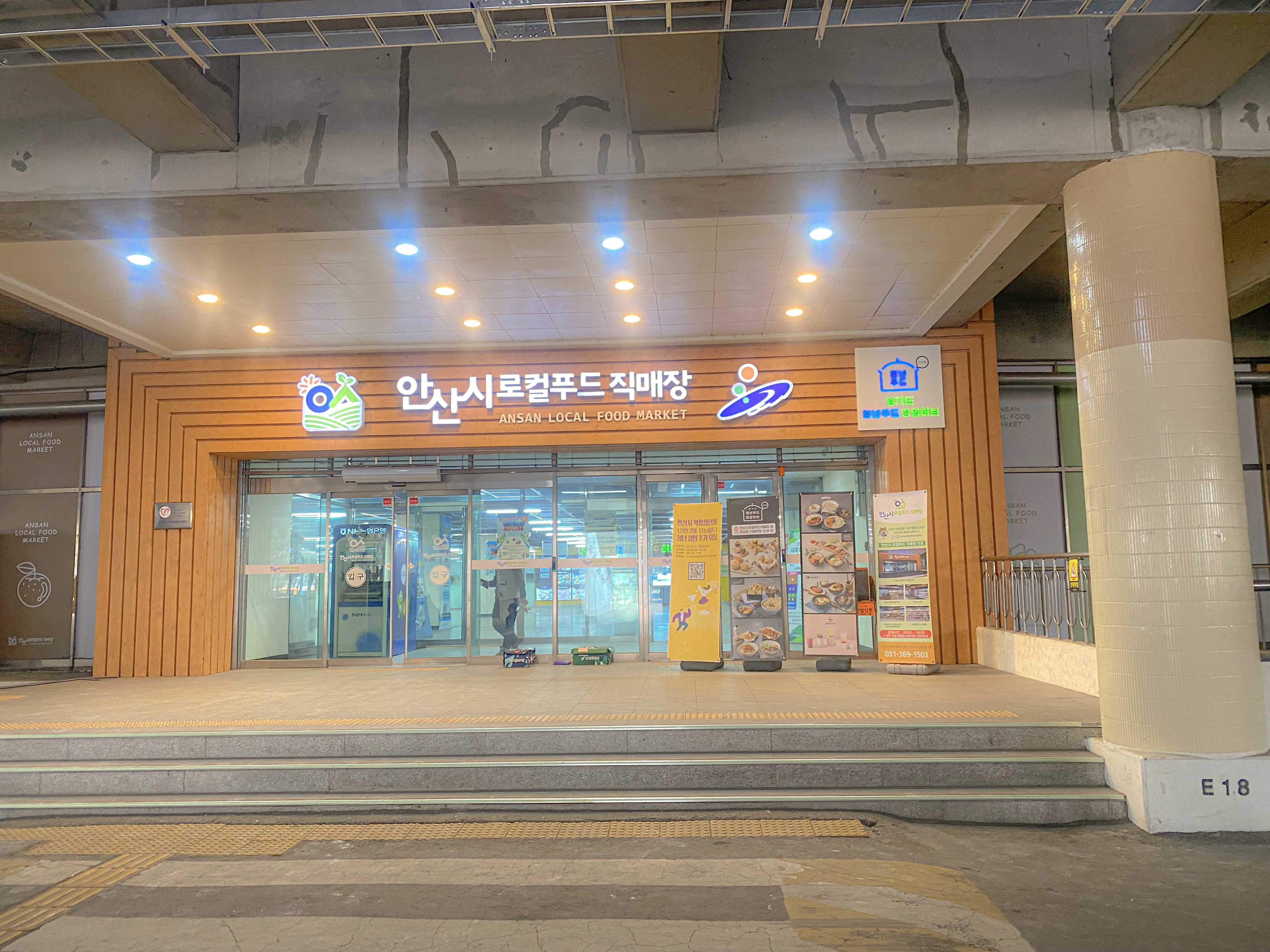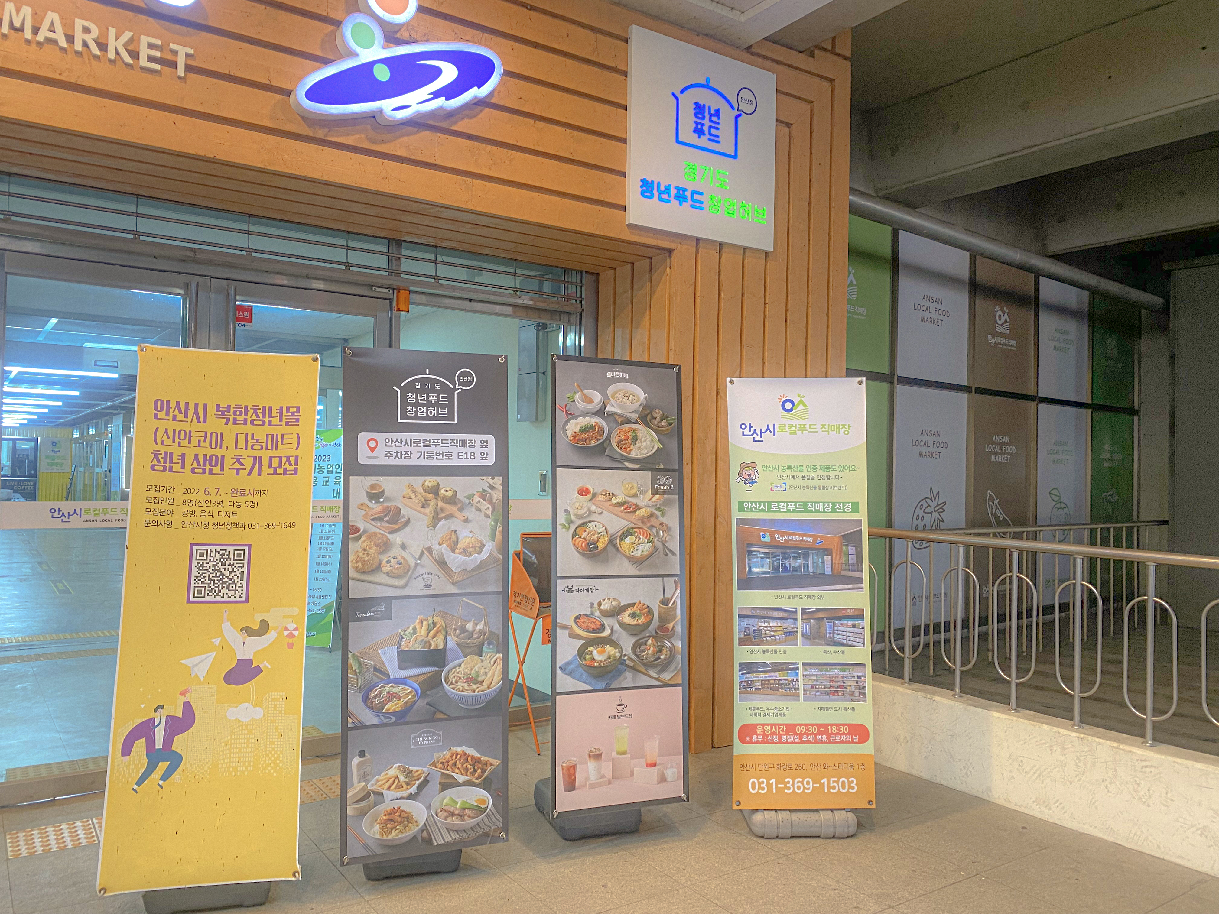 정면에 '경기도 청년푸드 창업허브', 오른쪽에는 '안산시 로컬푸드 직매장'이 자리 잡혀 있습니다.