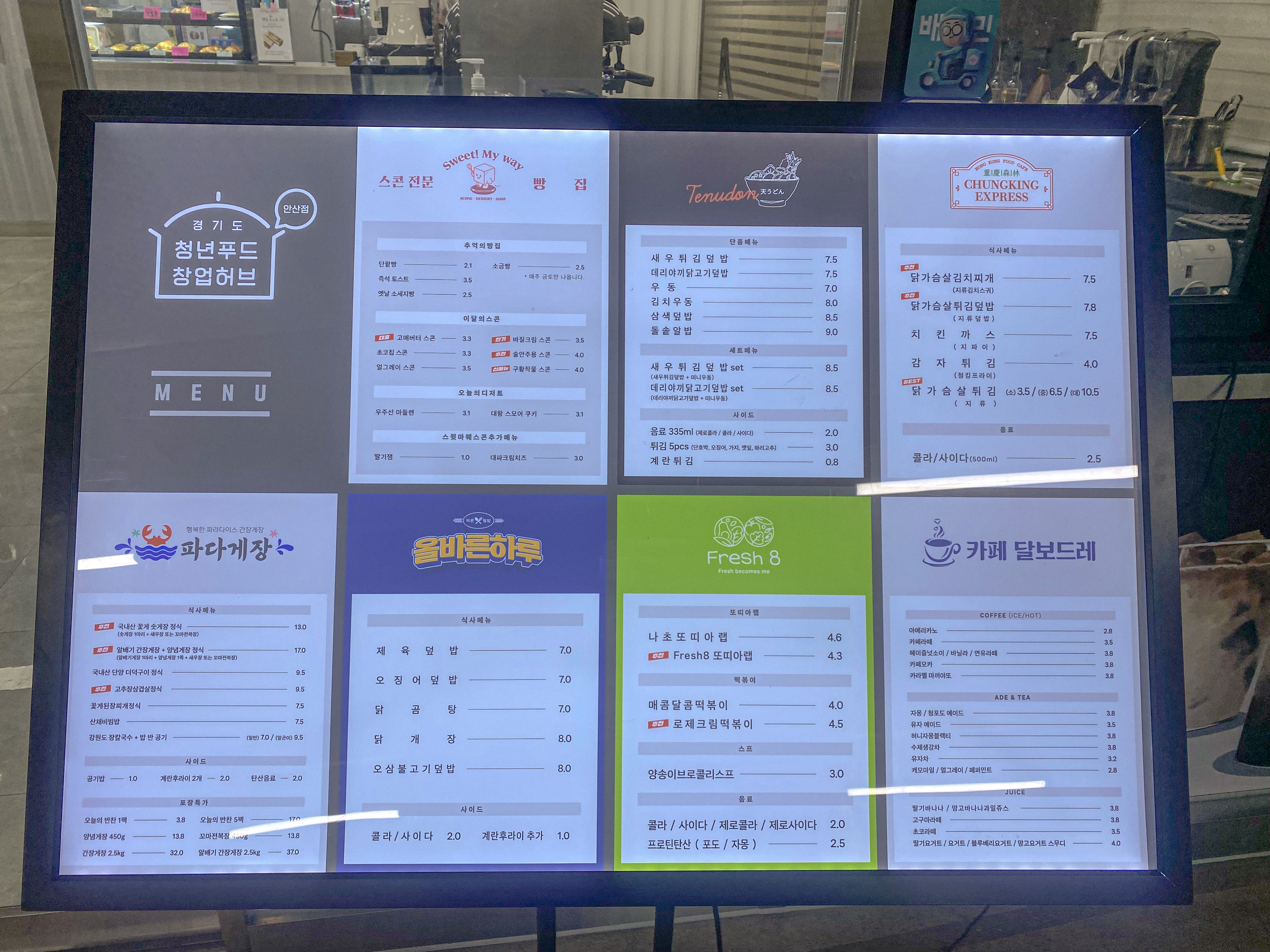 청년들이 본격적으로 사업을 시작하기 전에 경기도의 지원을 받아 청년들의 외식업 창업을 안상 와스타디움에 있는 시설에서 먼저 영업을 해보는 곳입니다.