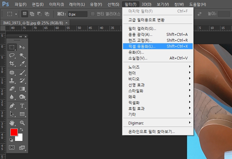 픽셀 유동화 단축키 'Shift + Ctrl + X'
