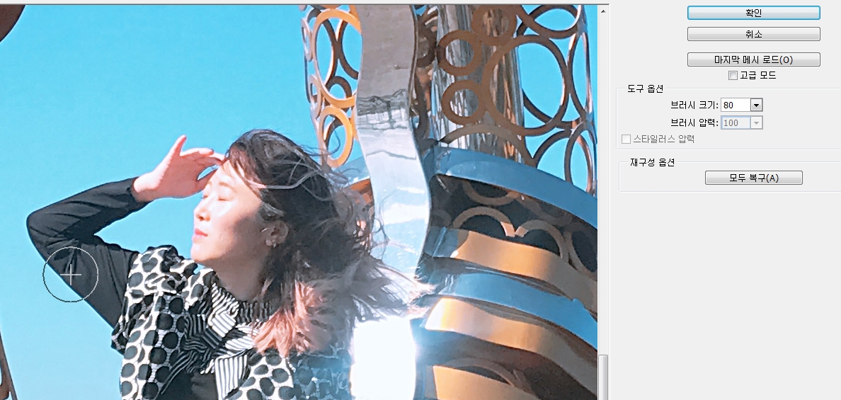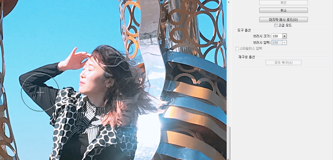 좀 전과 같이 픽셀 유동화를 사용할까 잠시 고민합니다.
