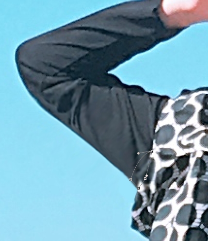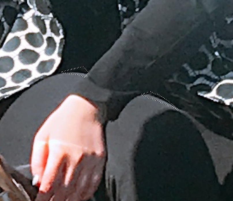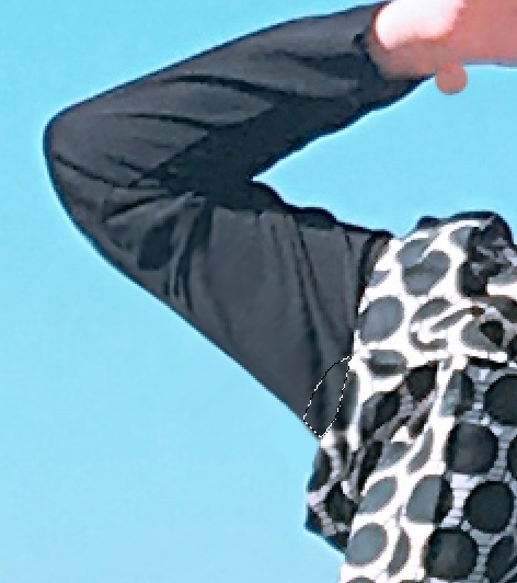 왼쪽의 팔뚝이 줄어들었죠? 그런데 팔뚝을 줄이면서 옷도 같이 밀려 왔습니다.