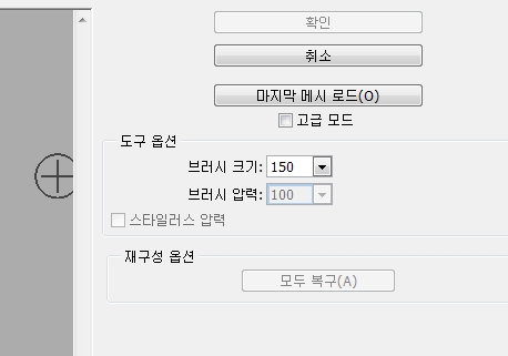 그리고 십자가 모양이 들어 있는 게, 픽셀 유동화에서 쓰는 마우스 커서(?) 입니다. 크기 조정은 오른쪽에 있습니다.